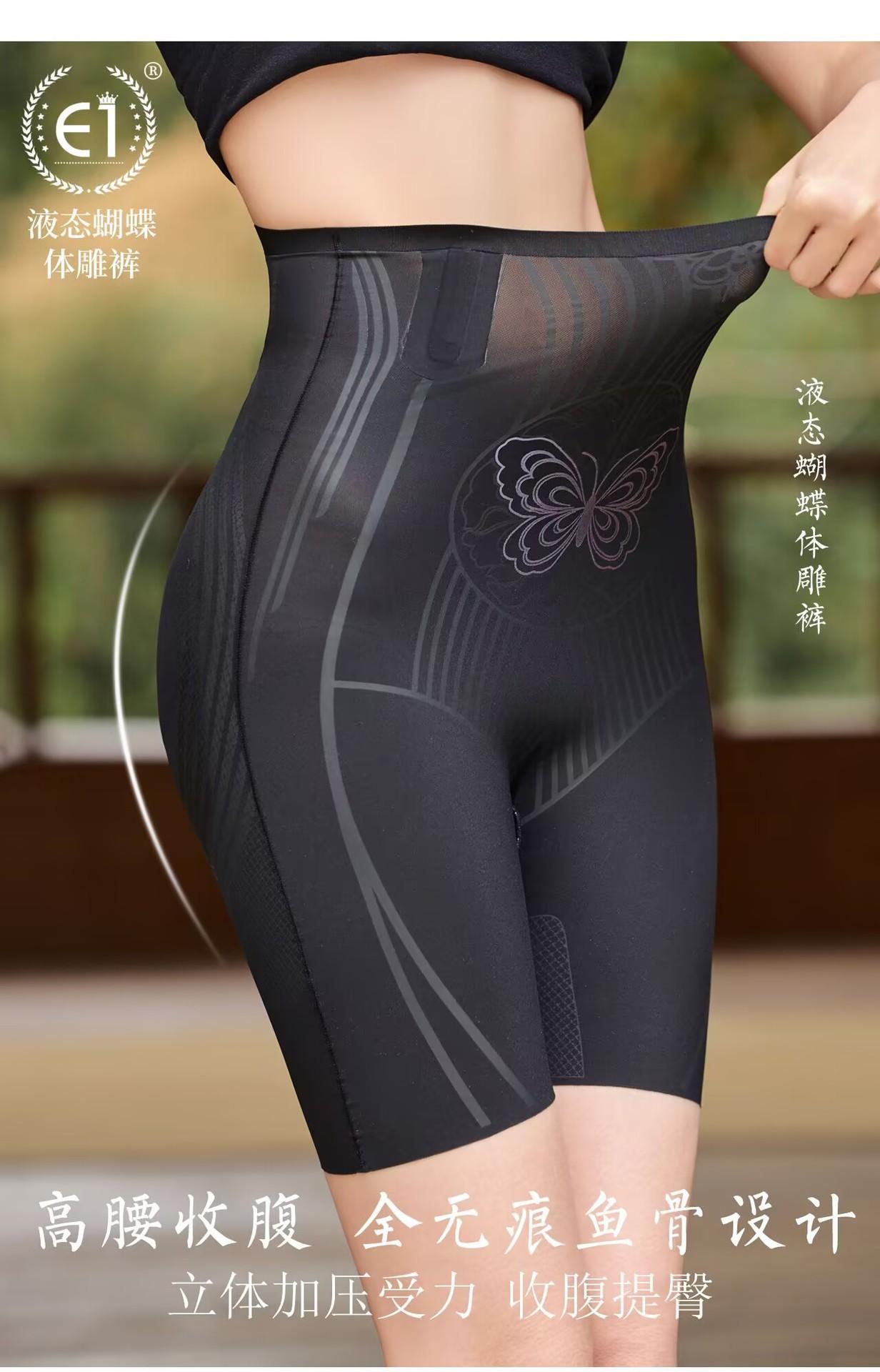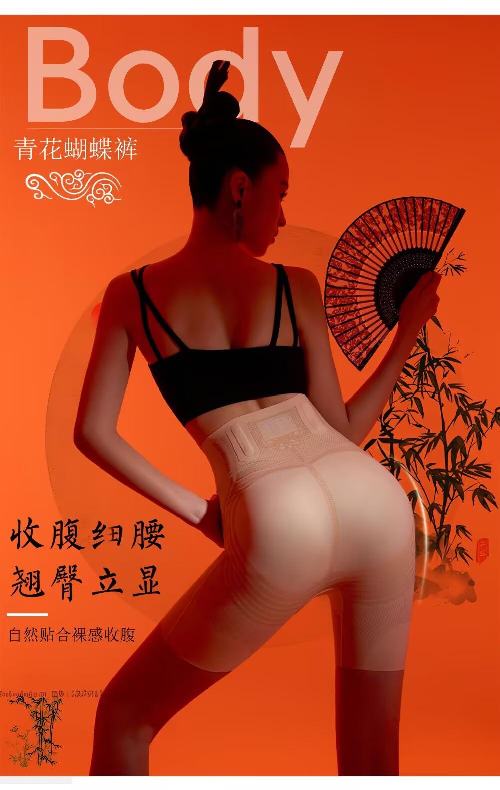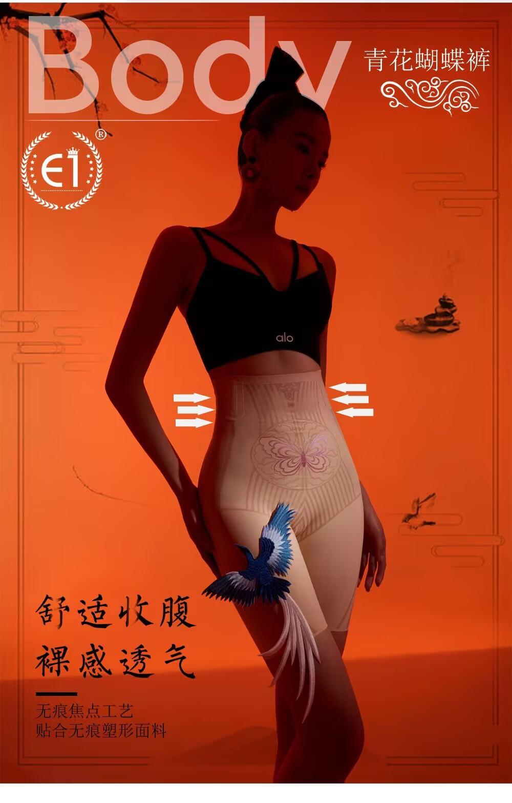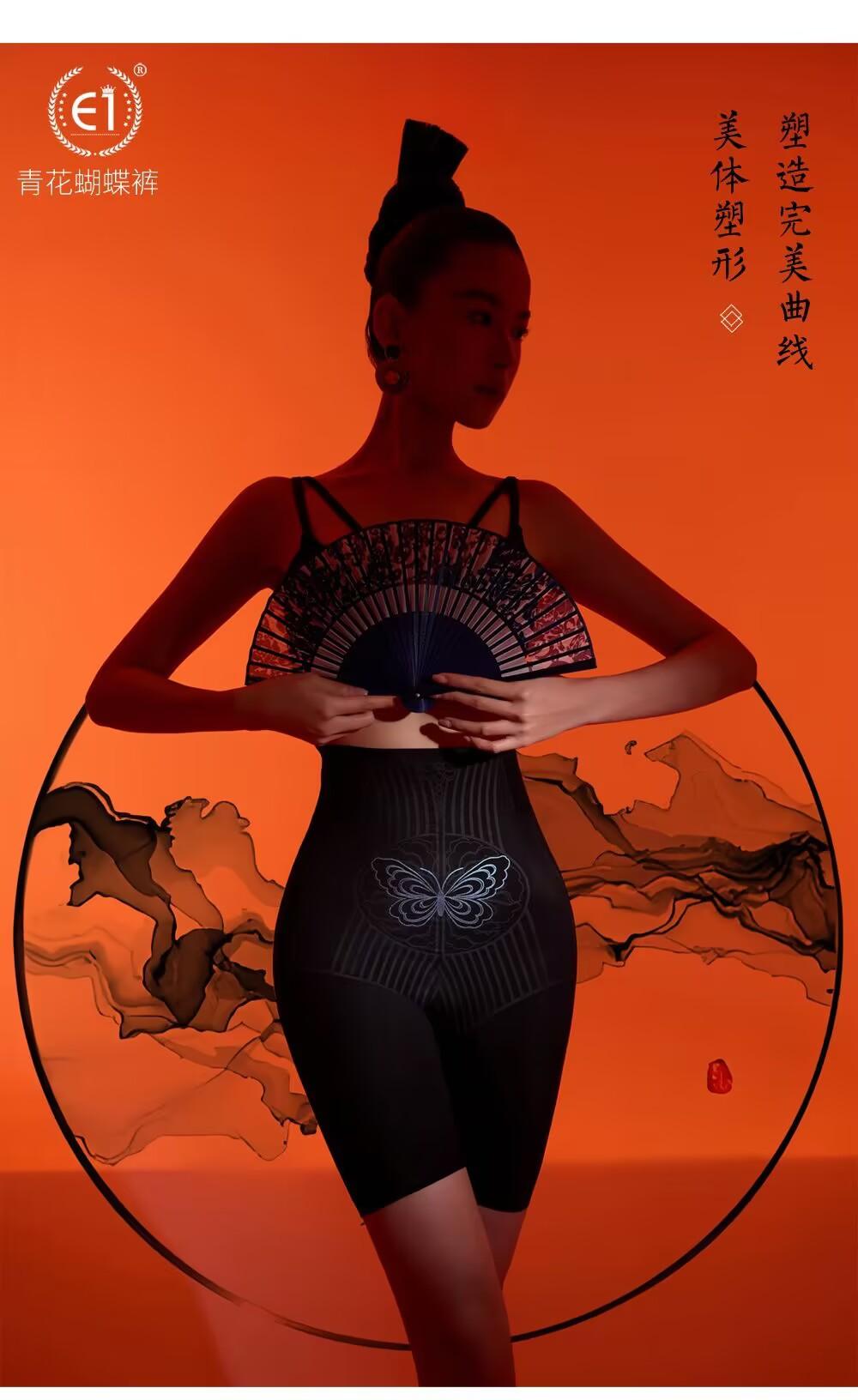 E1 Pantalones Moldeadores de Cuerpo de Mariposa Líquida Azul y Blanco Verano Ultradelgados Control de Abdomen Levantamiento de Glúteos Moldeado de Abdomen Postparto Cintura Alta Moldeado de Caderas