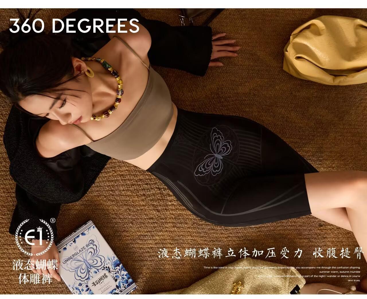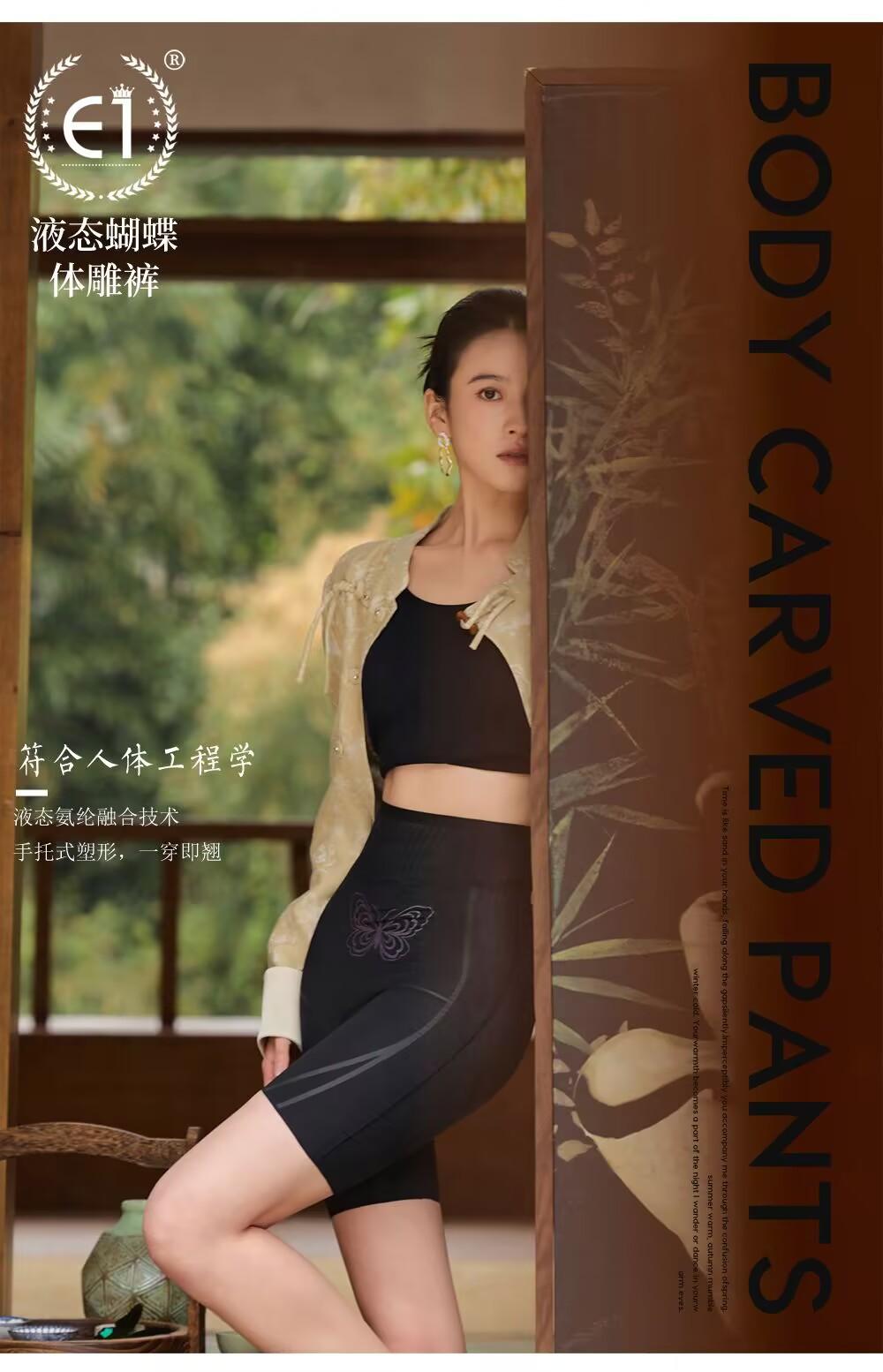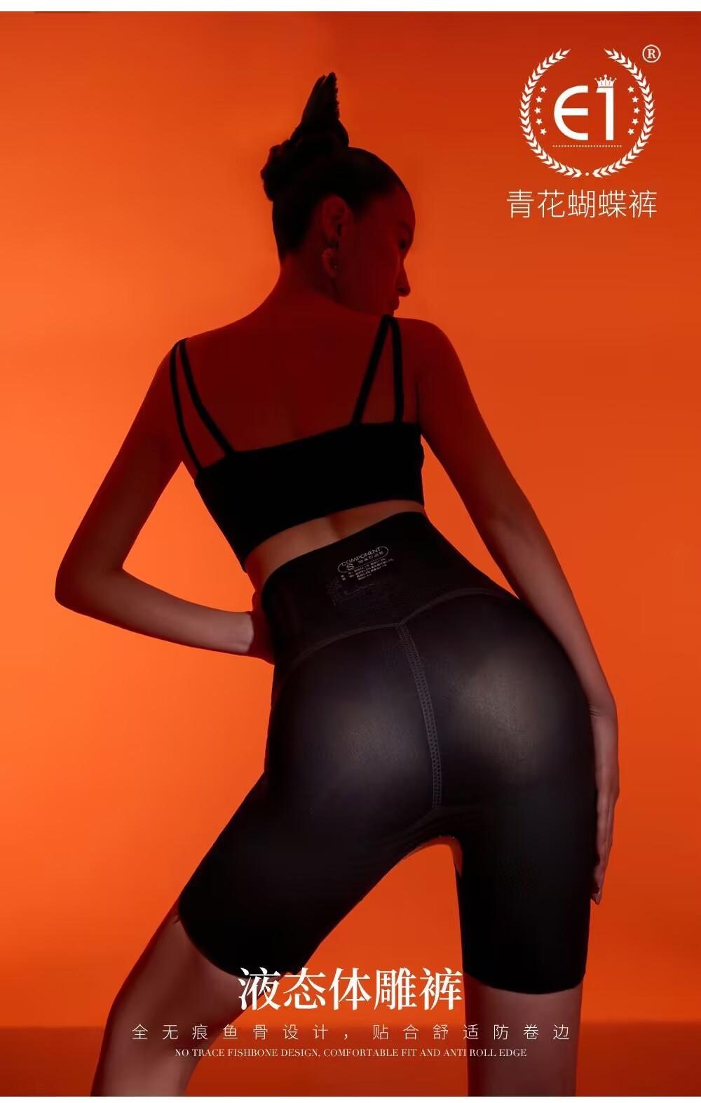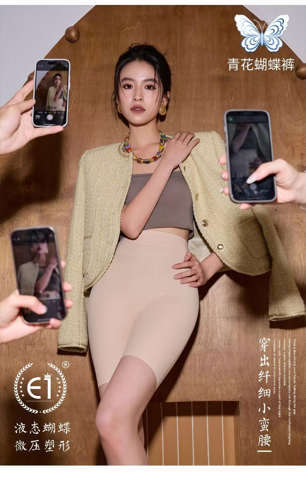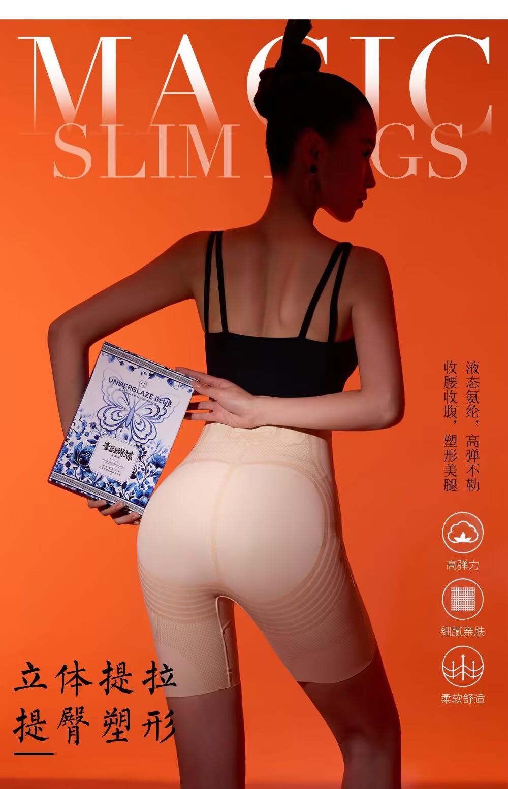 E1 Pantalones Moldeadores de Cuerpo de Mariposa Líquida Azul y Blanco Verano Ultradelgados Control de Abdomen Levantamiento de Glúteos Moldeado de Abdomen Postparto Cintura Alta Moldeado de Caderas