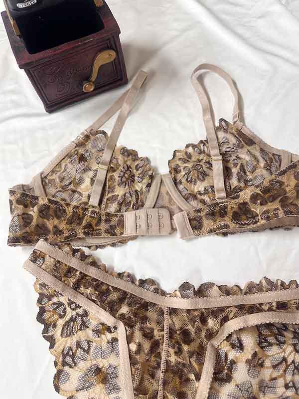 Sujetador de Comercio Exterior Transfronterizo Sexy Ultradelgado Pecho Grande Pequeño Recogido Encaje Francés Ropa Interior Sujetador Estampado Leopardo