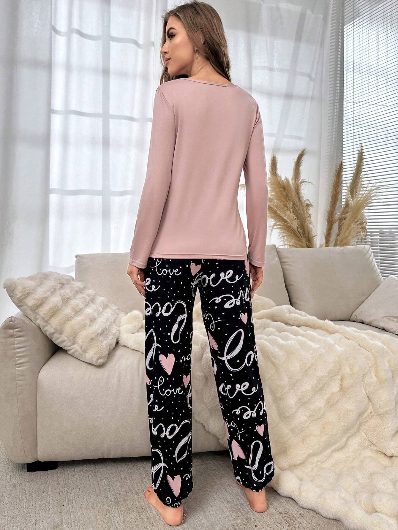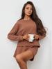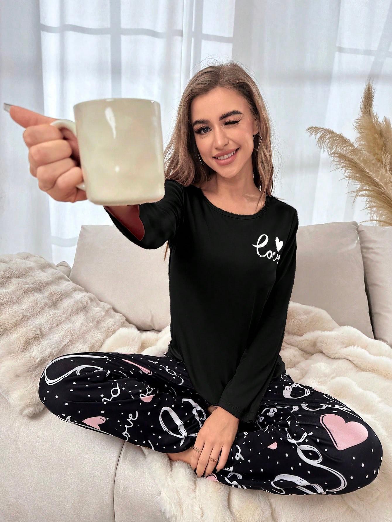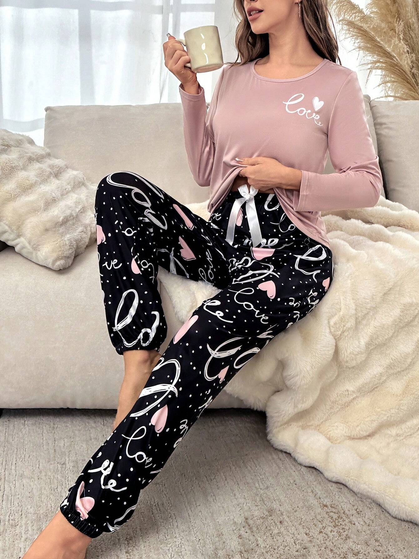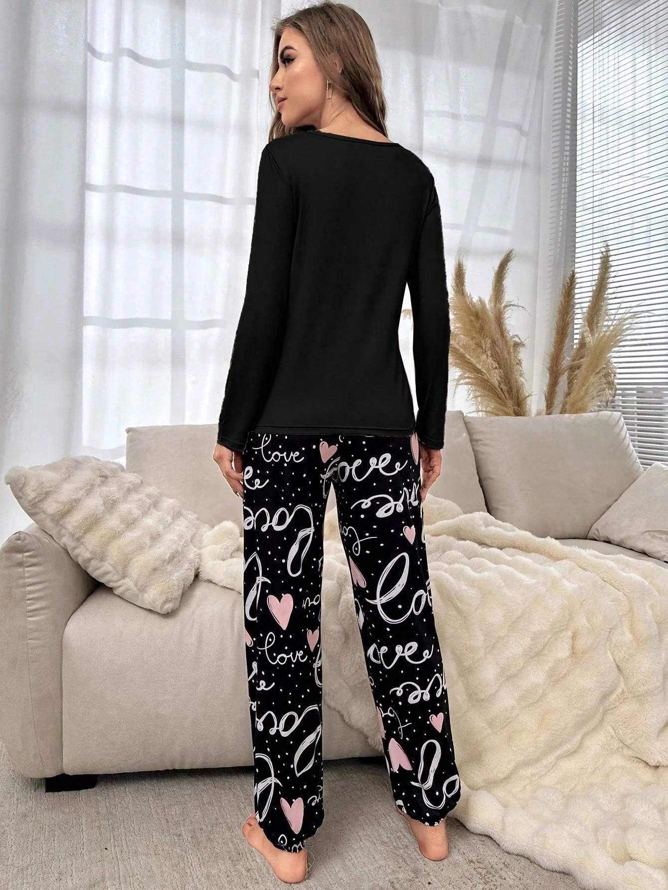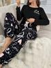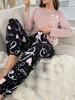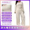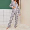 Amazon Transfronterizo Otoño e Invierno Nuevo Pijama de Mujer Cuello Redondo Manga Larga Lazo Pantalón Largo Conjunto Casual para Estar en Casa
