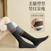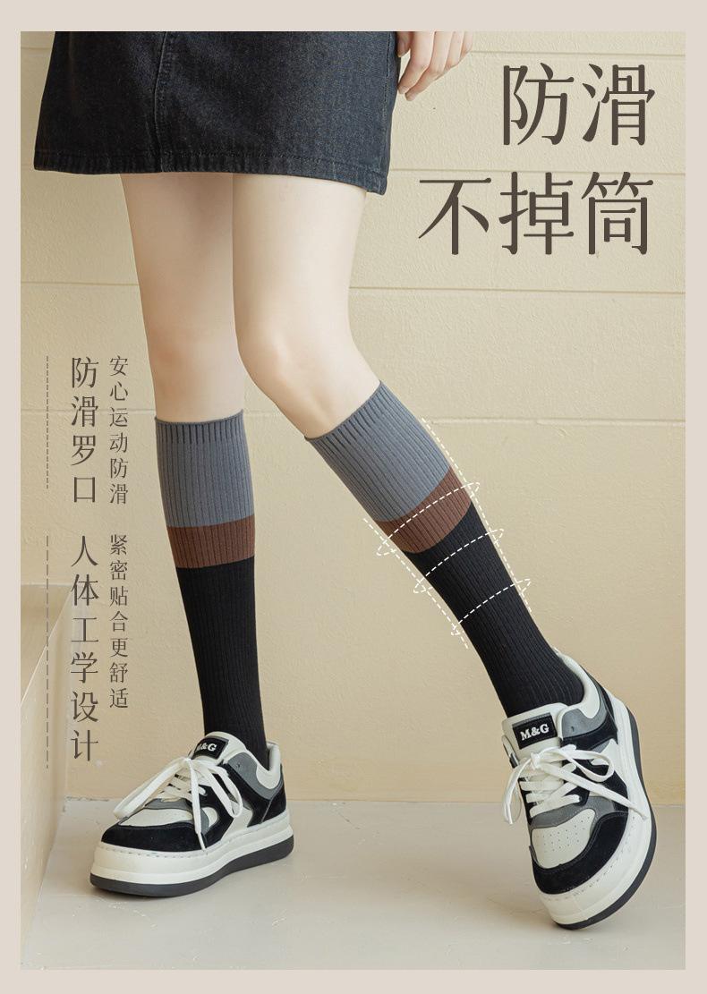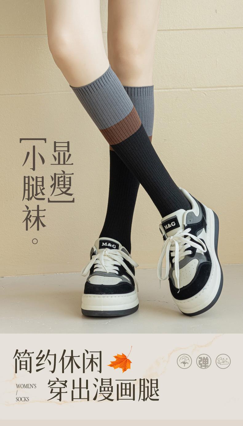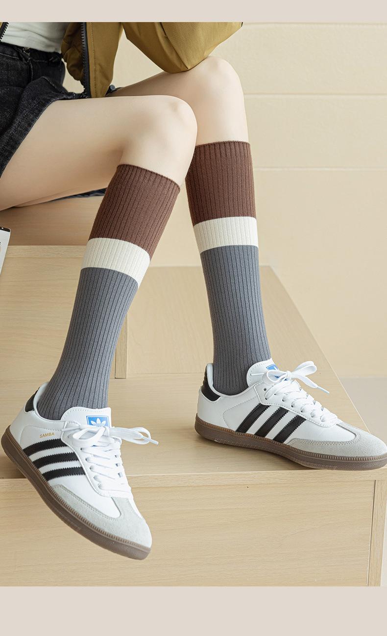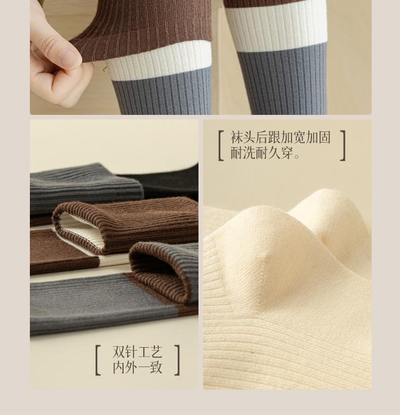 【Double Needle Vertical Stripe/Color Block Calf Socks】One Size