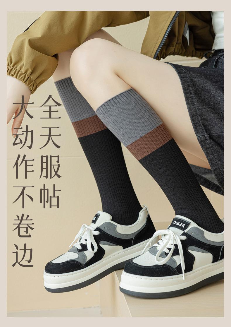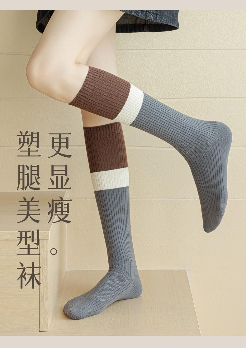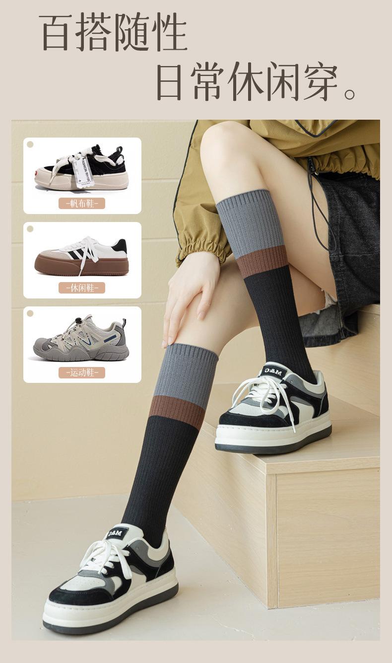 Calcetines de media caña para mujer otoño e invierno calcetines de media caña modeladores de presión calcetines adelgazantes sentido del diseño bloqueo de color calcetines altos grises jk primavera y otoño