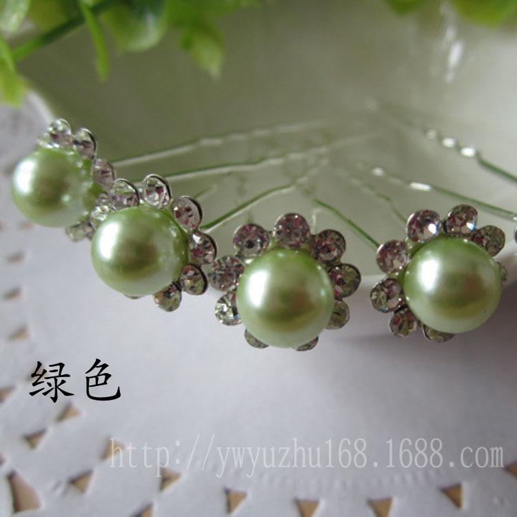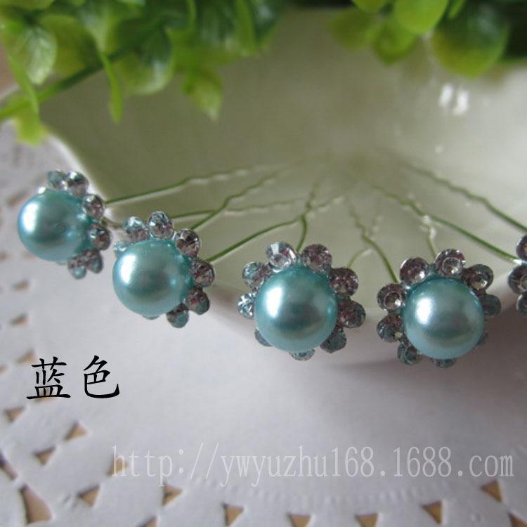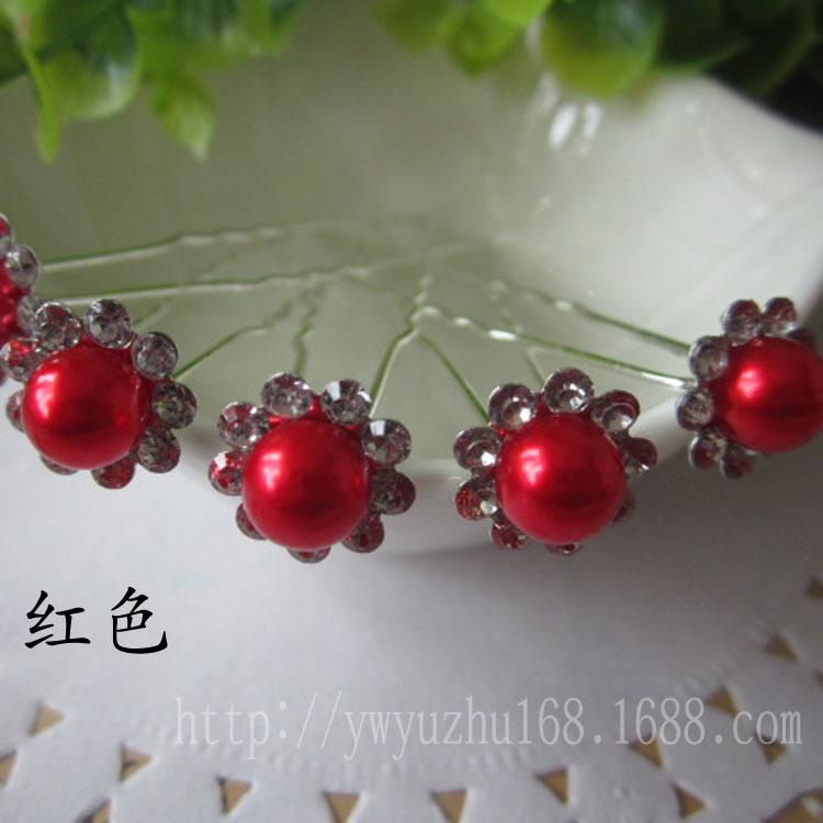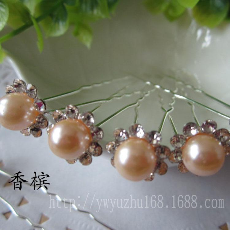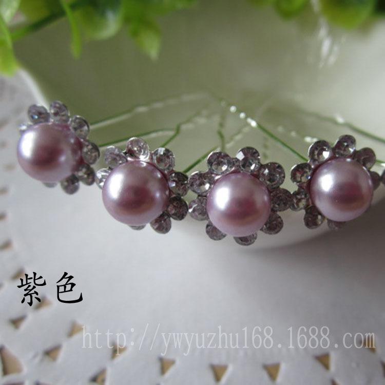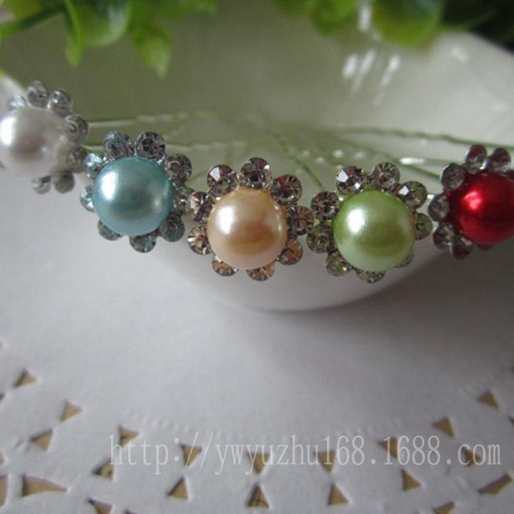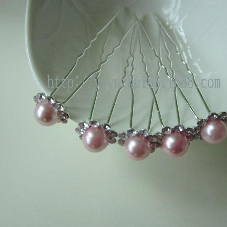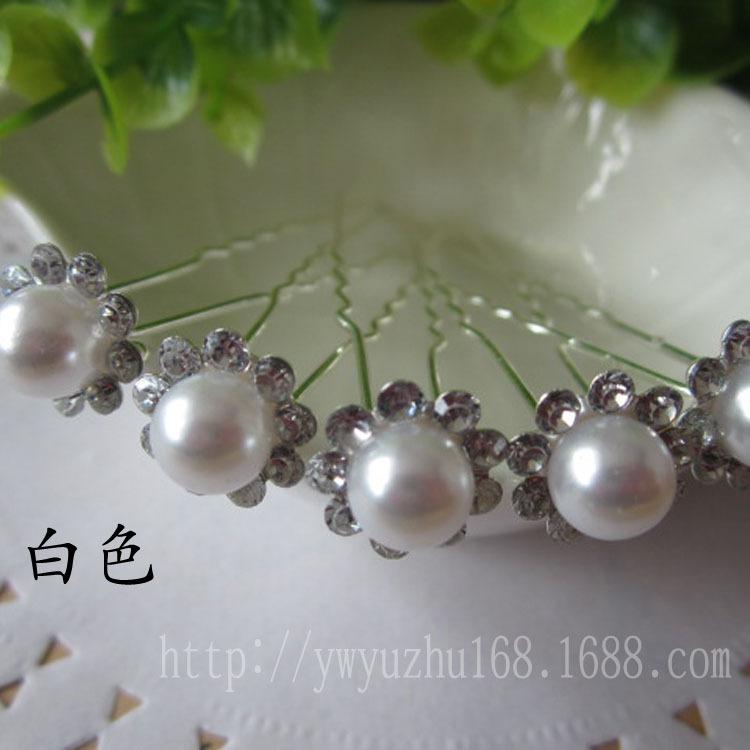 Cabello de novia cabello rizado horquilla Perla Flor Diamante horquilla en forma de U joyería al por mayor