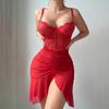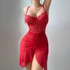 Lencería Sexy Transfronteriza Nueva Europea y Americana Encaje Transparente Tentación Vestido de Malla Tanga Traje de Dos Piezas