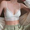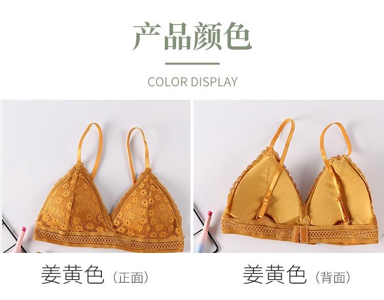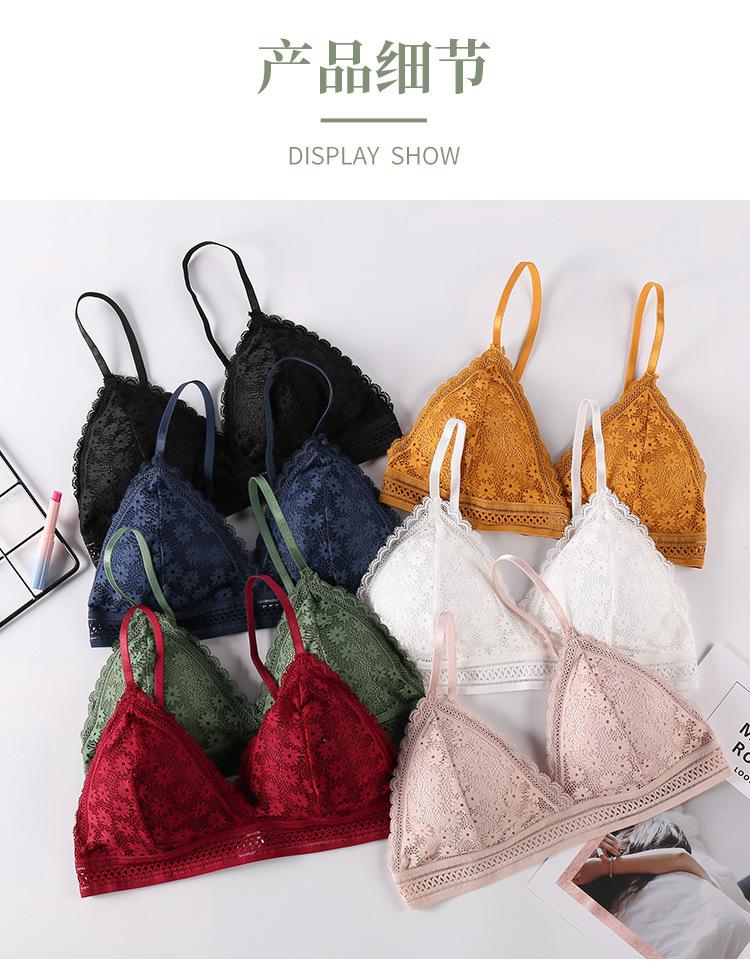 Bralette Sin Aro Ultrafino Pecho Grande Pequeño Encaje Copa Triangular Sujetador Sexy Ropa Interior de Niña Francesa para Mujer