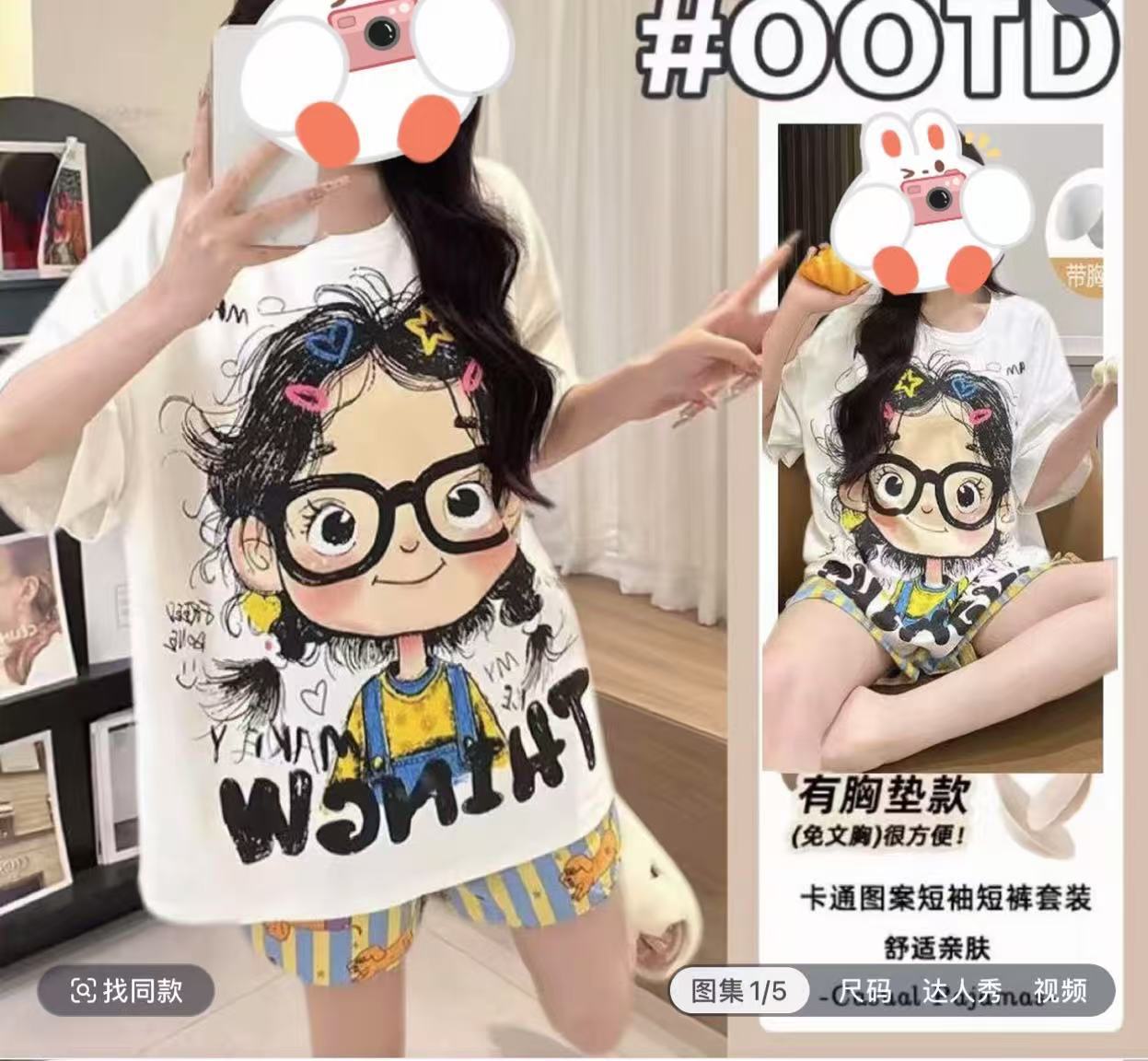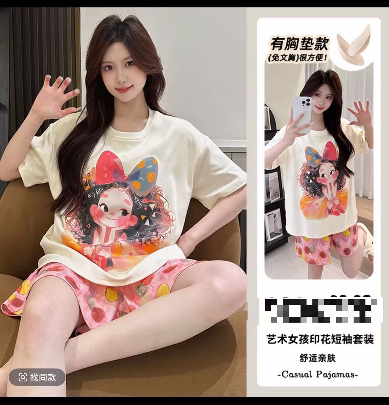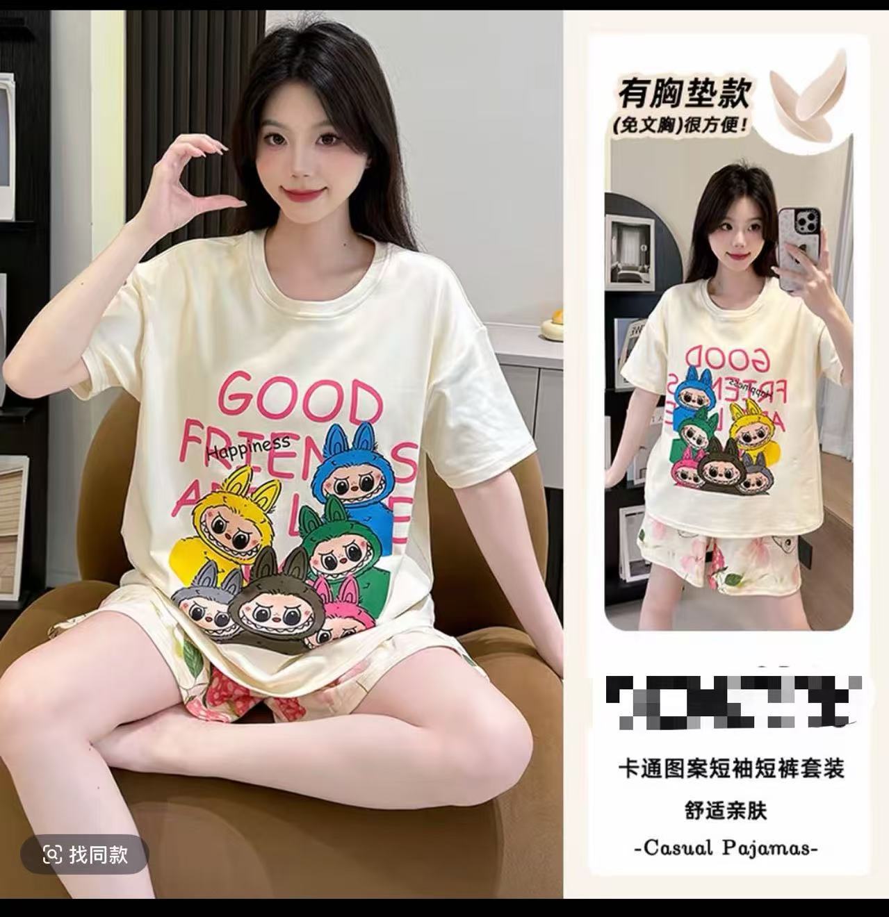 Pijamas con Almohadillas para el Busto para Mujer, Shorts Sencillos de Manga Corta para Mujer, Ropa de Casa de Verano, Trajes de Algodón Nube, Casual para que las Chicas lo Usen Afuera