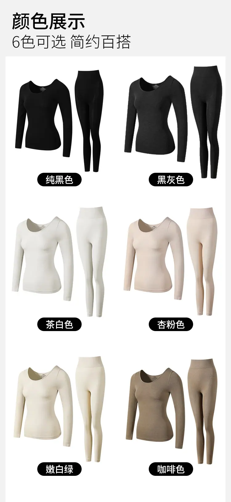 Otoño e invierno cachemira ropa interior cálida mujer color sólido básica versátil adelgazante ligera transpirable cómoda cálida conjunto base