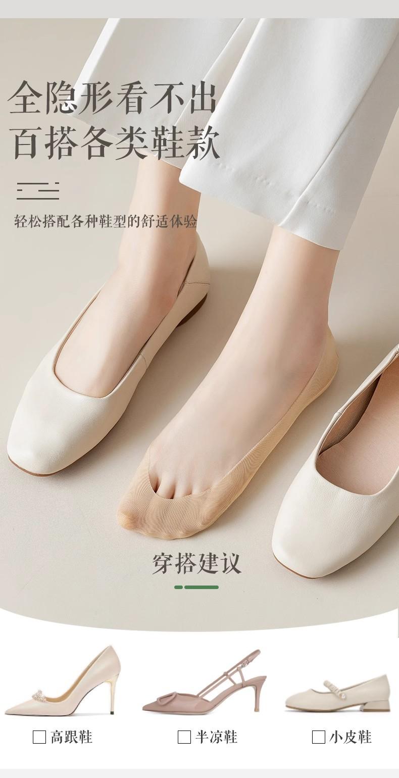 Calcetines de Seda de Hielo, Calcetines Invisibles Finos de Verano para Mujer que No se Caen, Calcetines de Barco Transpirables Antibacterianos, Calcetines Versátiles Antideslizantes de Algodón para Mujer