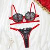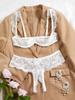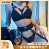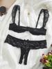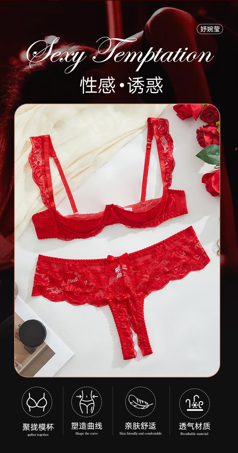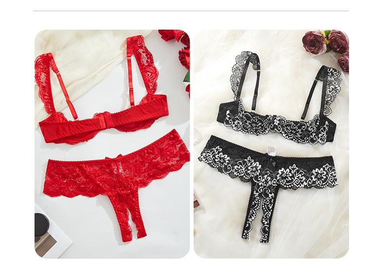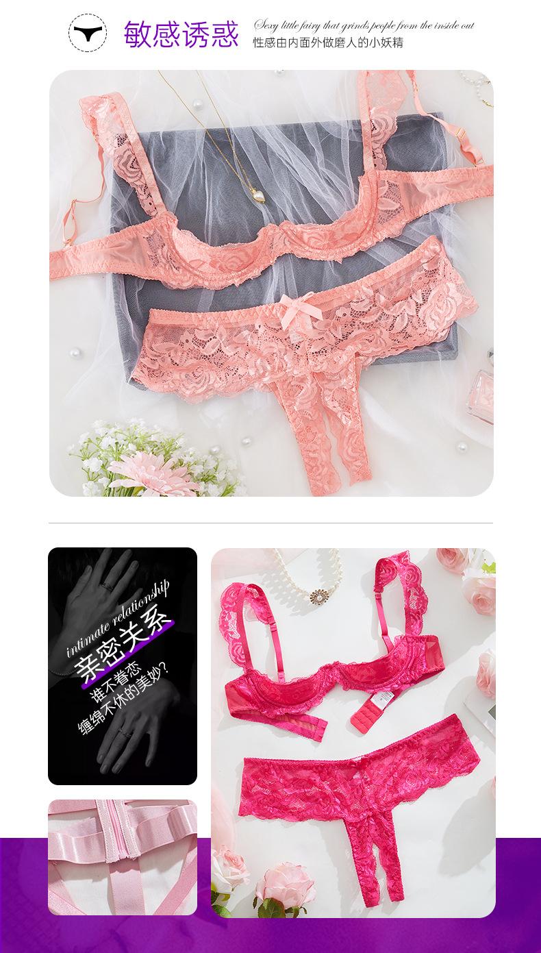 Ropa interior sexy europea y americana de encaje y malla con entrepierna abierta, ropa interior sexy dulce y de deseo puro para niña, sujetador hueco, traje de ropa interior sexy