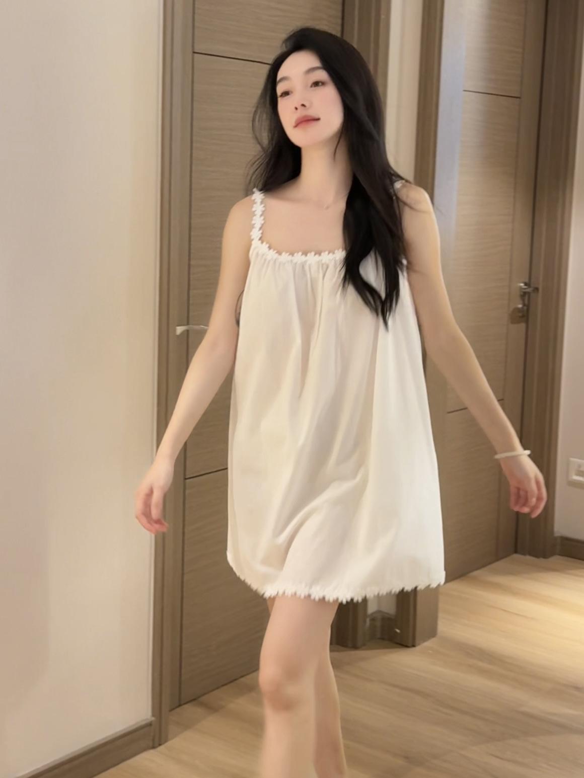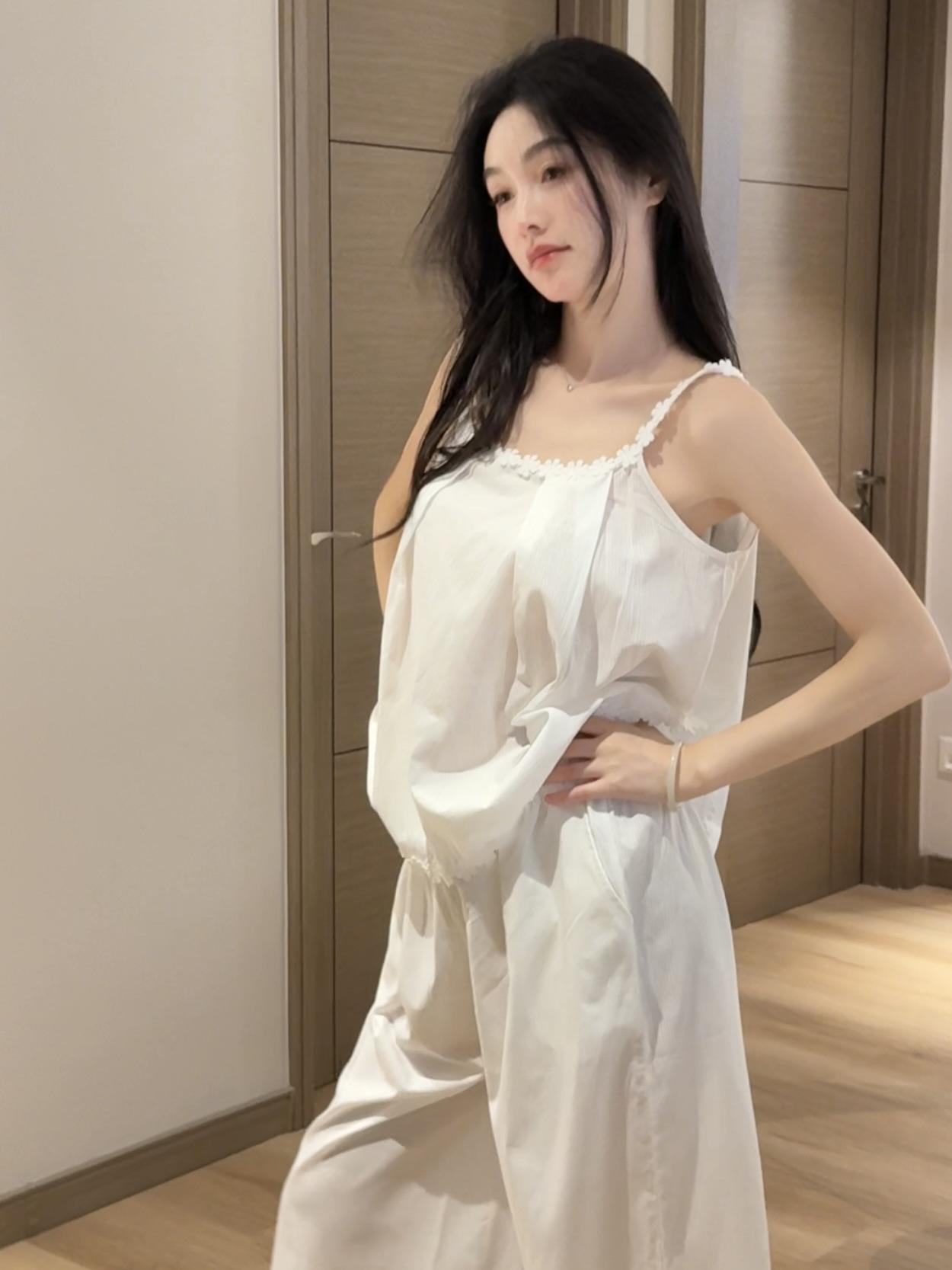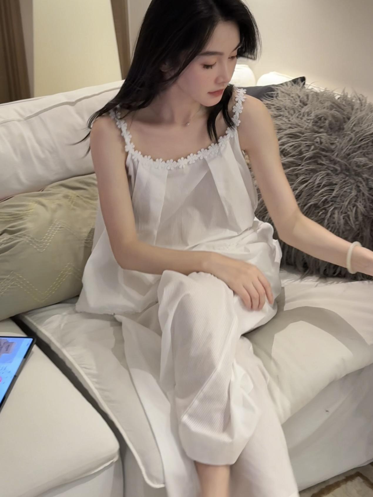 Conjunto de Pijama Holgado Puro y Sexy para Mujer Verano Nuevo Camisola de Encaje Vestido para Dormir Ropa para el Hogar Conjunto de Dos Piezas
