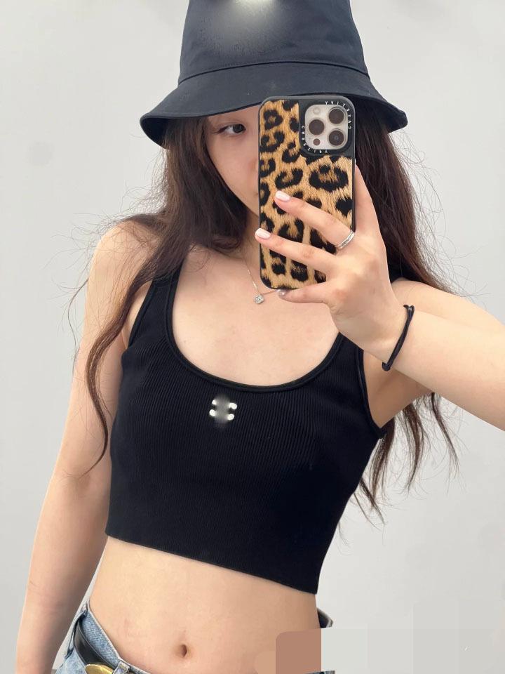 Camisola de Punto sin Mangas Corta de Color Sólido Casual Simple de Verano Nueva Moderna y Elegante de Ajuste Entallado