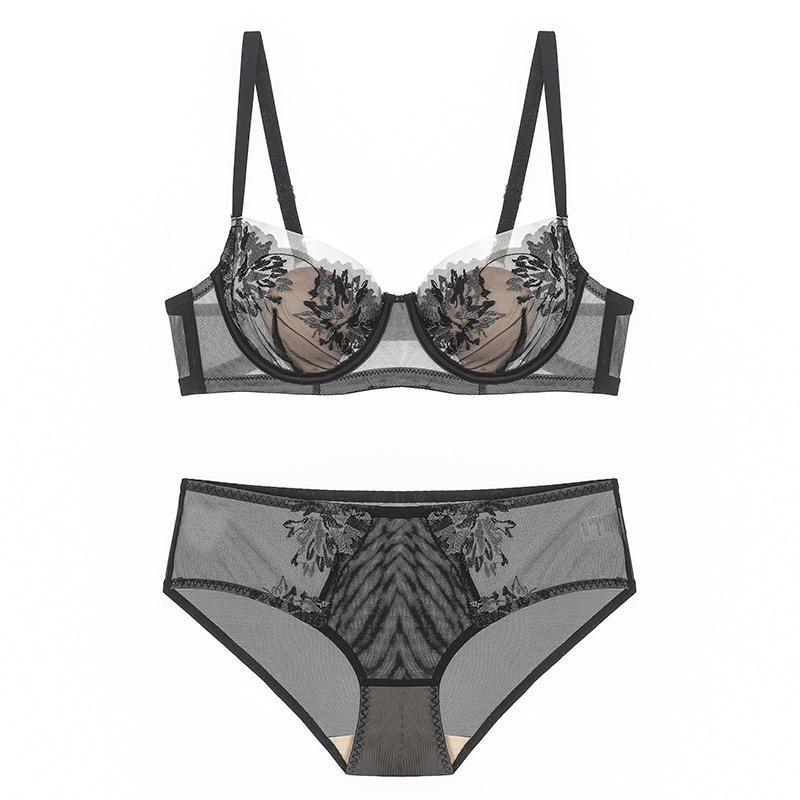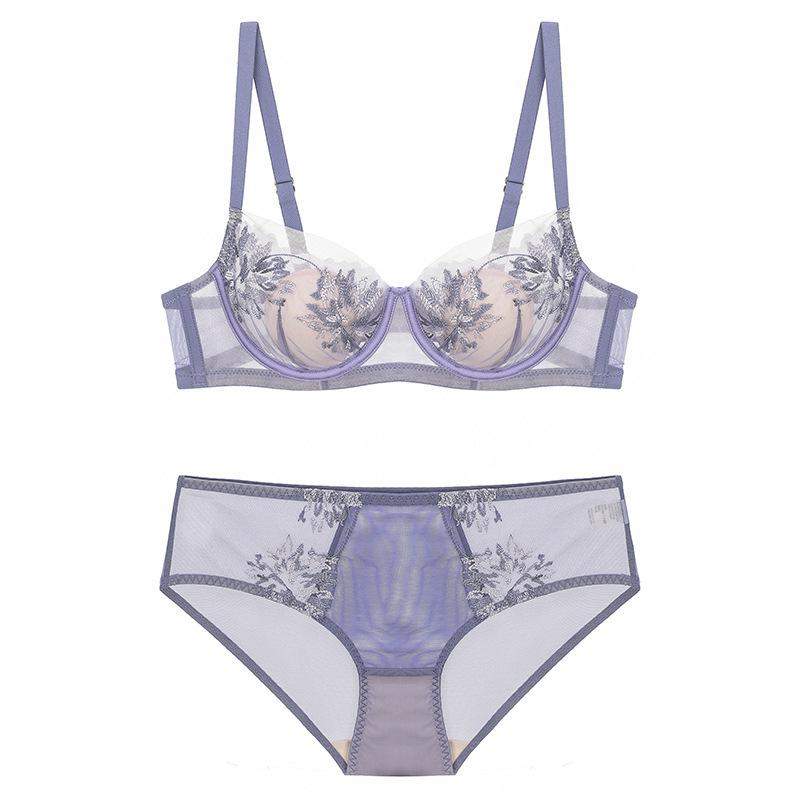 Ropa Interior Estilo Francés Sexy Delgada Encaje Bordado Orejas de Conejo Ropa Interior Malla Pecho Grande Pequeño Anticaída Traje de Brasier