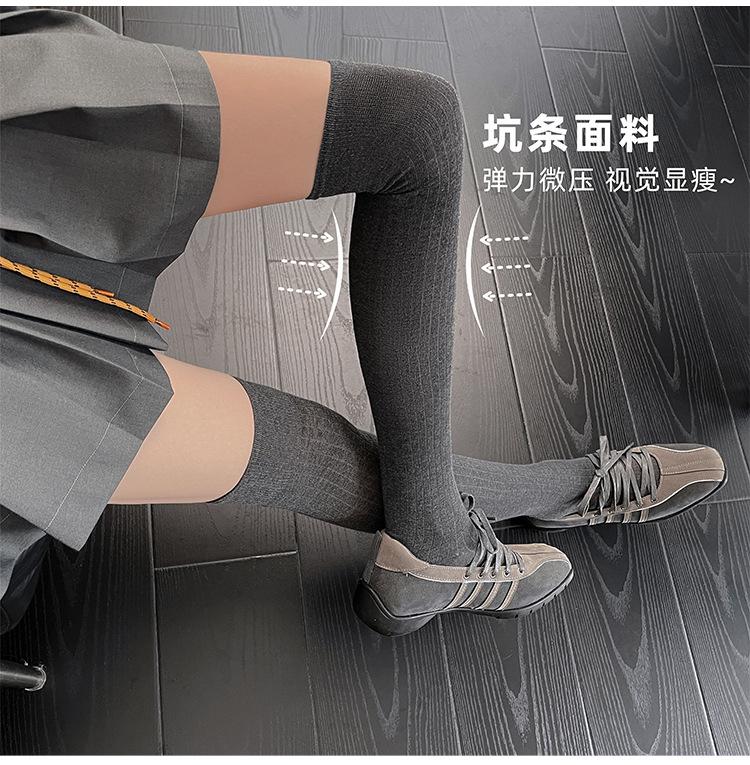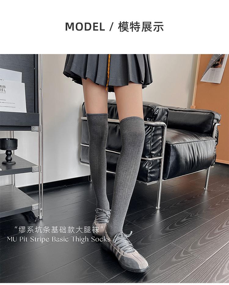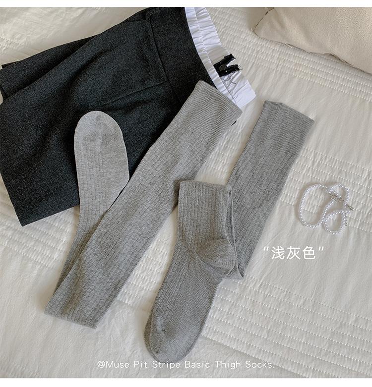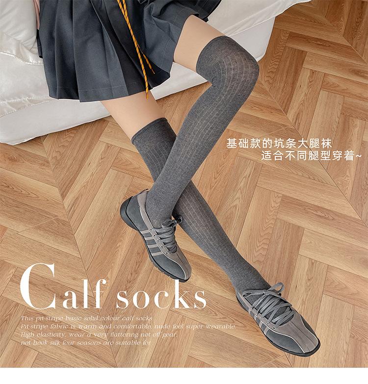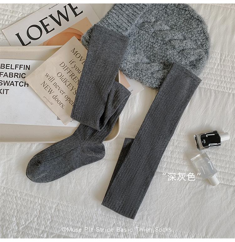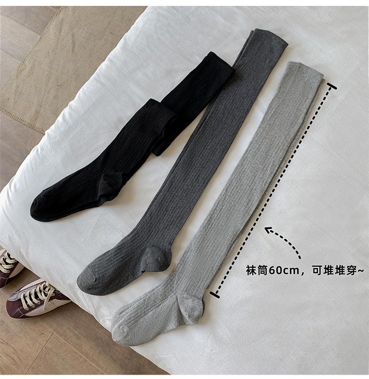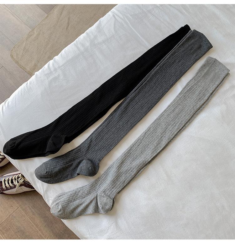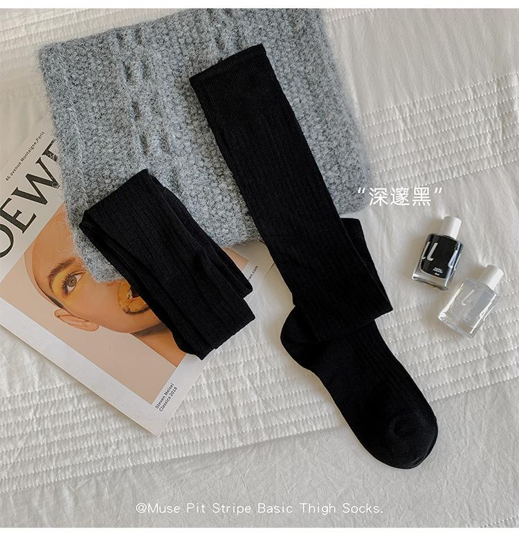 Calcetines Nuevos para Mujer 2025 Otoño Invierno Estilo Miu Algodón Hasta la Rodilla Calcetines de Compresión Acanalados Algodón Peinado Color Sólido Calcetines Hasta el Muslo