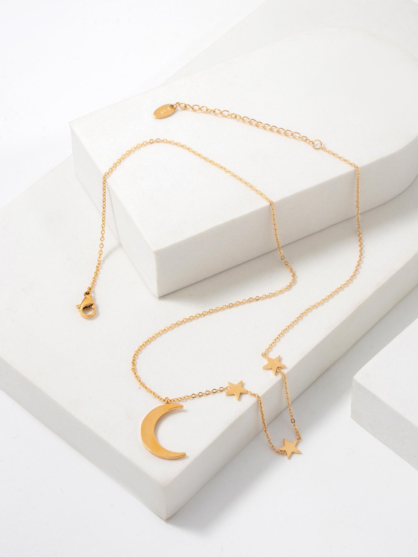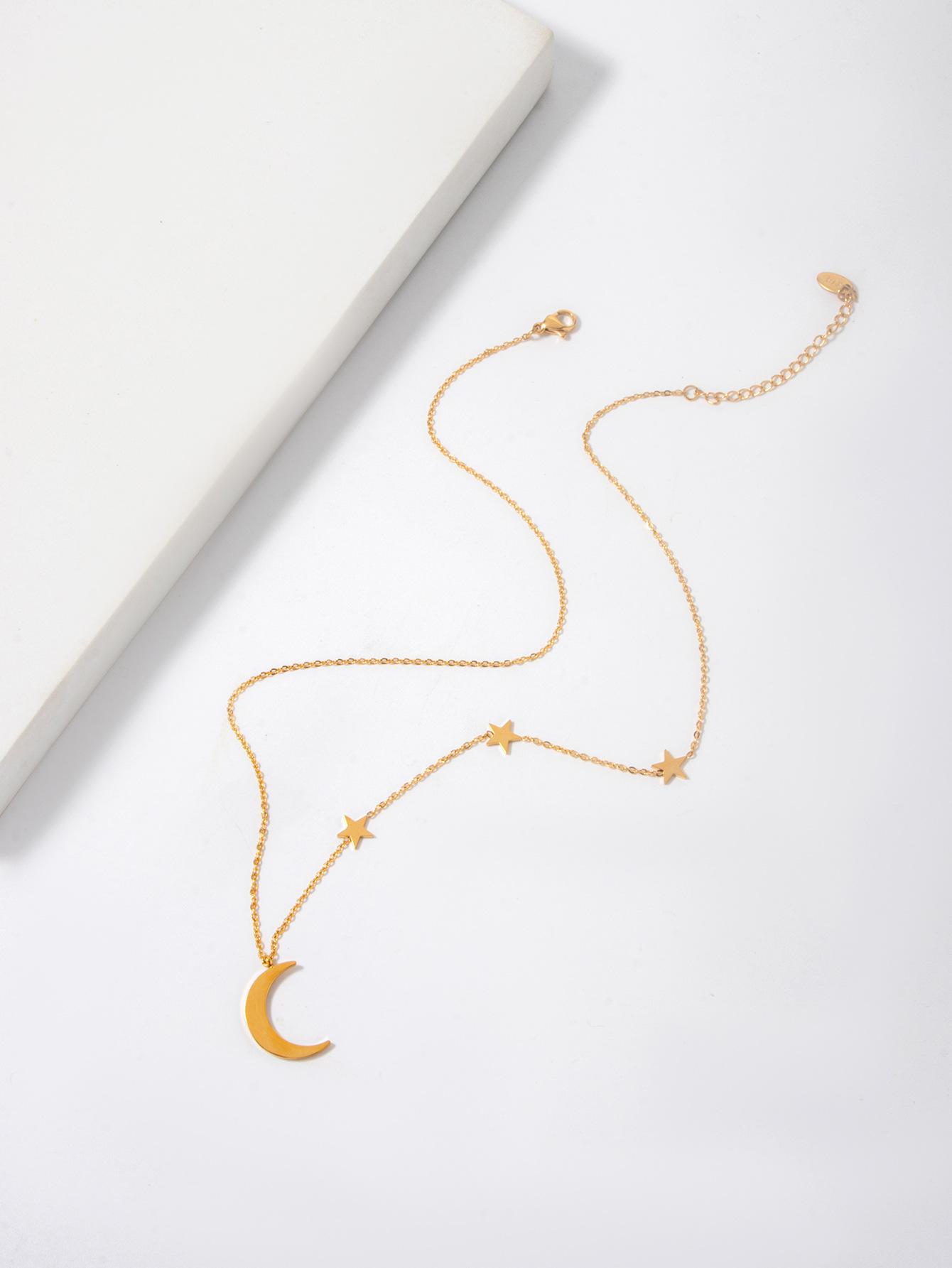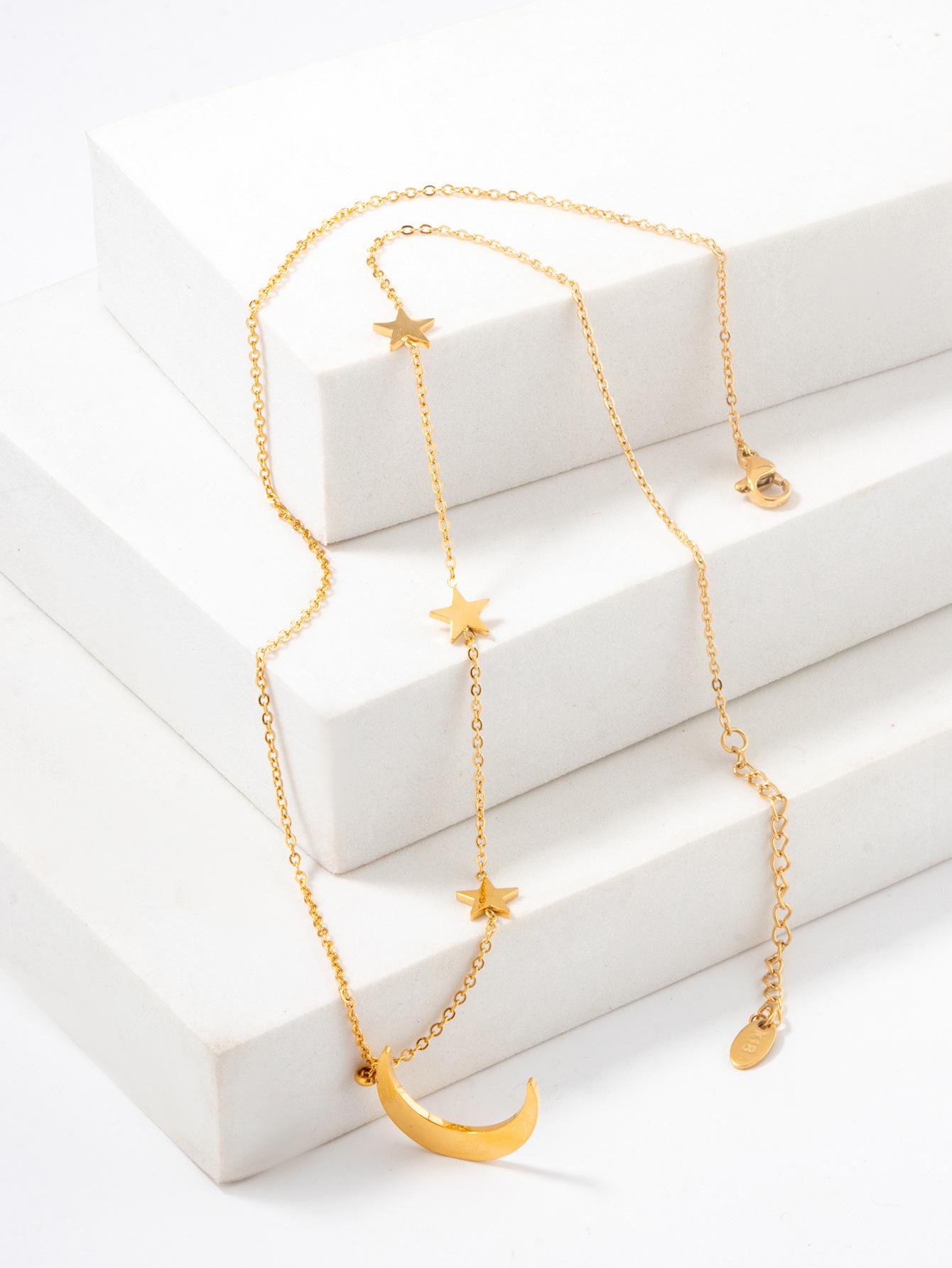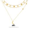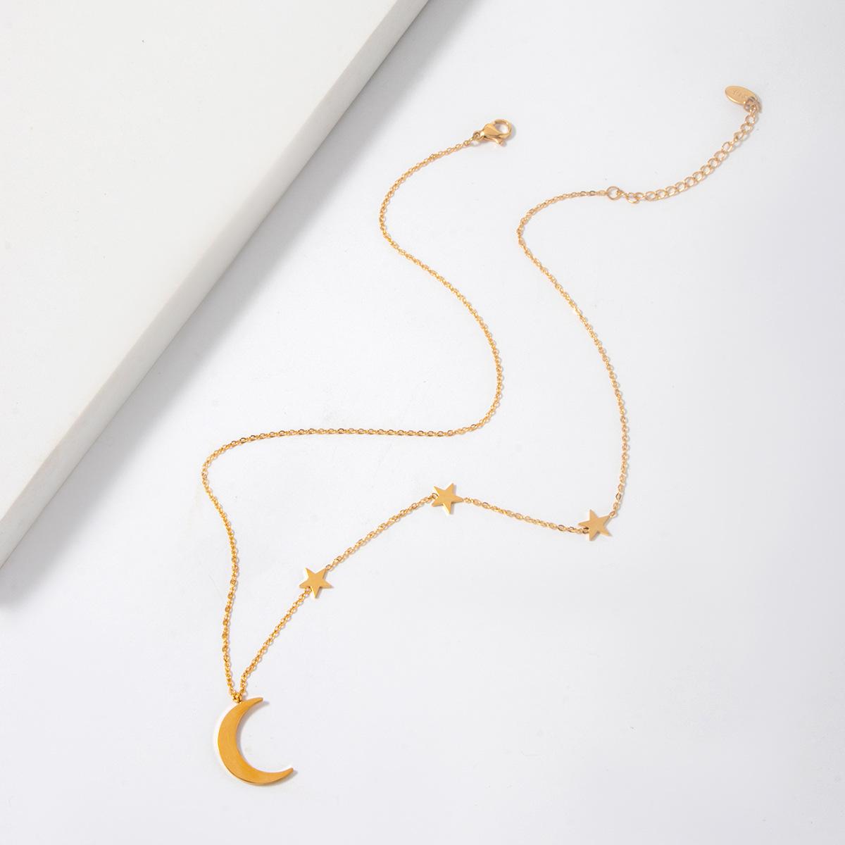 Collar Romántico Europeo y Americano con Colgante de Estrella y Luna de Doble Capa Superpuesta para Mujer, Collar para Clavícula de Acero de Titanio, Juego de Joyería