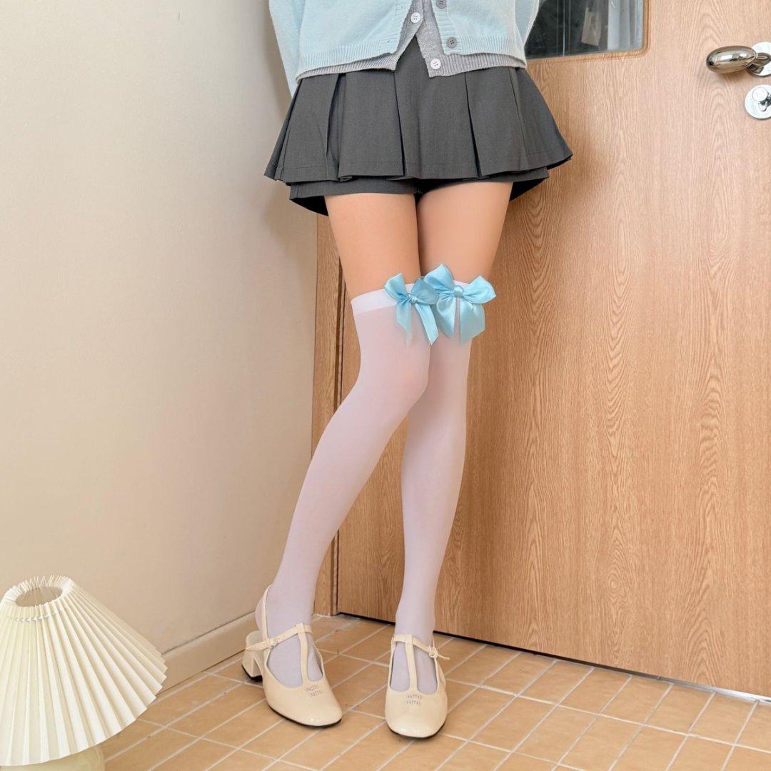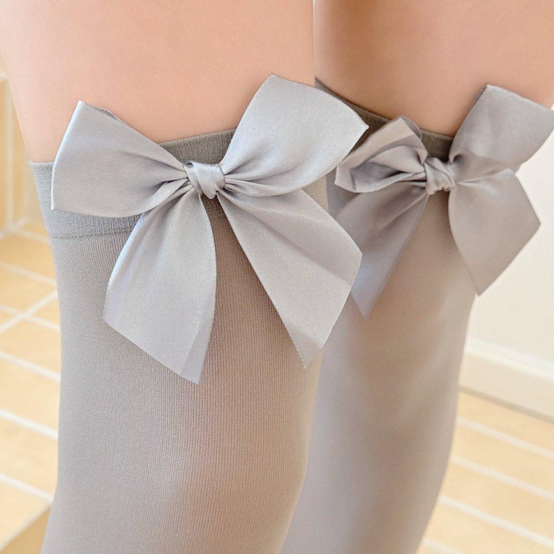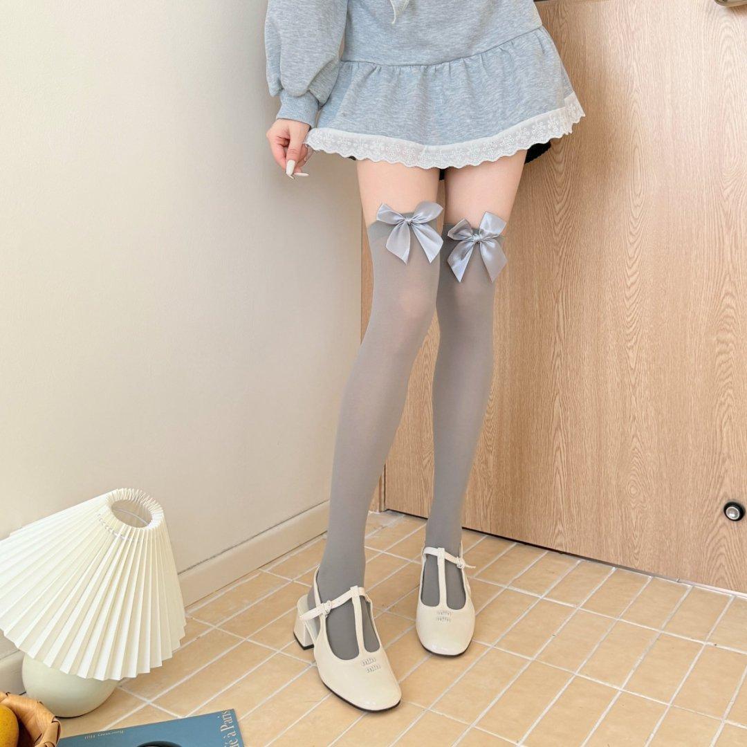 Calcetines Altos hasta la Rodilla Blancos de Seda Simples Estilo Japonés Primavera/Verano Lazo Terciopelo Gris Media Caña Calcetines Altos hasta el Muslo JK Mujer