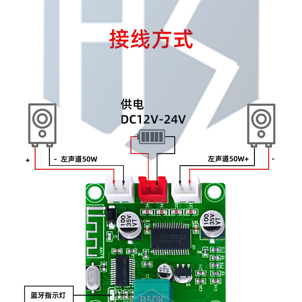 Chip Original Tpa3118D2 Fuente de Alimentación Dc12V-24V Doble Altavoz 50W+50W Tarjeta Amplificadora Digital Bluetooth