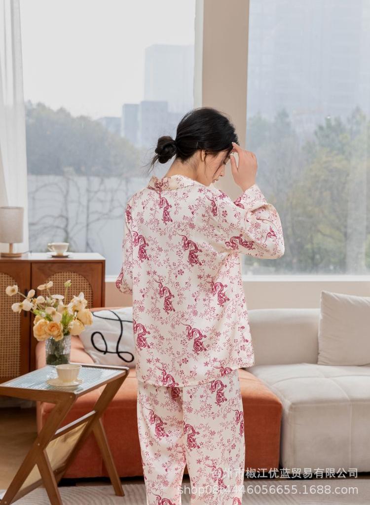 Ropa de Casa de Manga Larga Fina de Alta Gama Jungle Temperamento Adelgazante Red de Moda Se Puede Usar Afuera Pijama de Seda de Hielo para Mujer Verano