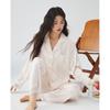 Lujoso Set para el Hogar con Estampado de Mariposas en Oro Blanco, Transpirable y Cómodo para Mujer, Manga Larga, Pantalón Largo, Ropa de Dormir de Alta Gama