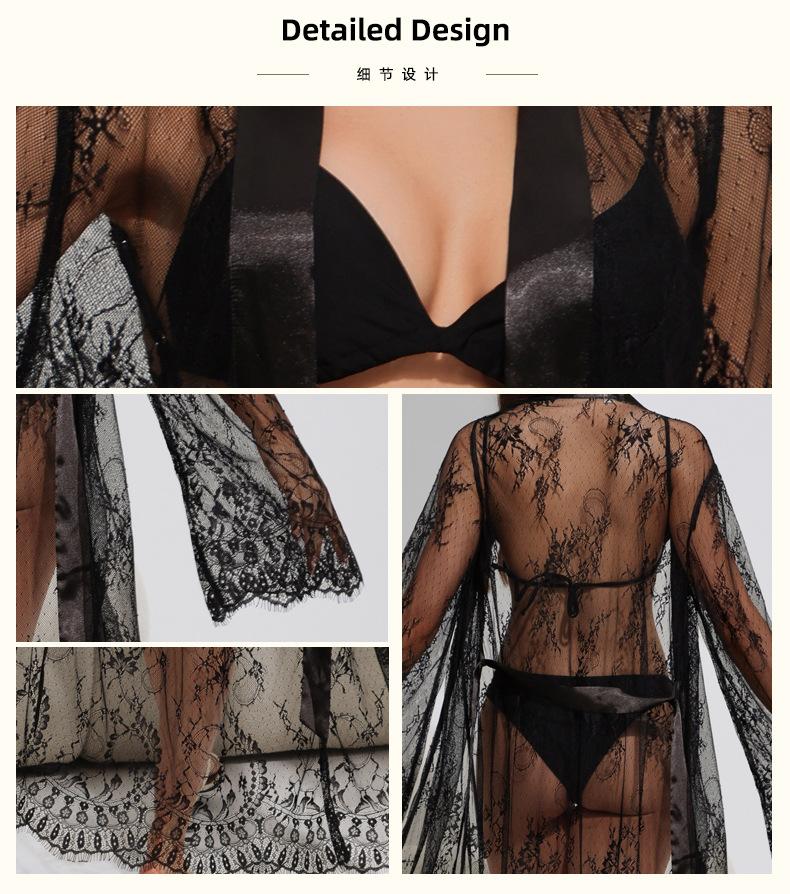 Yaoting Transfronterizo Amazon Nuevo Pijama Sexy Bata de Encaje Bata Ropa de Casa Camisón Largo 3577