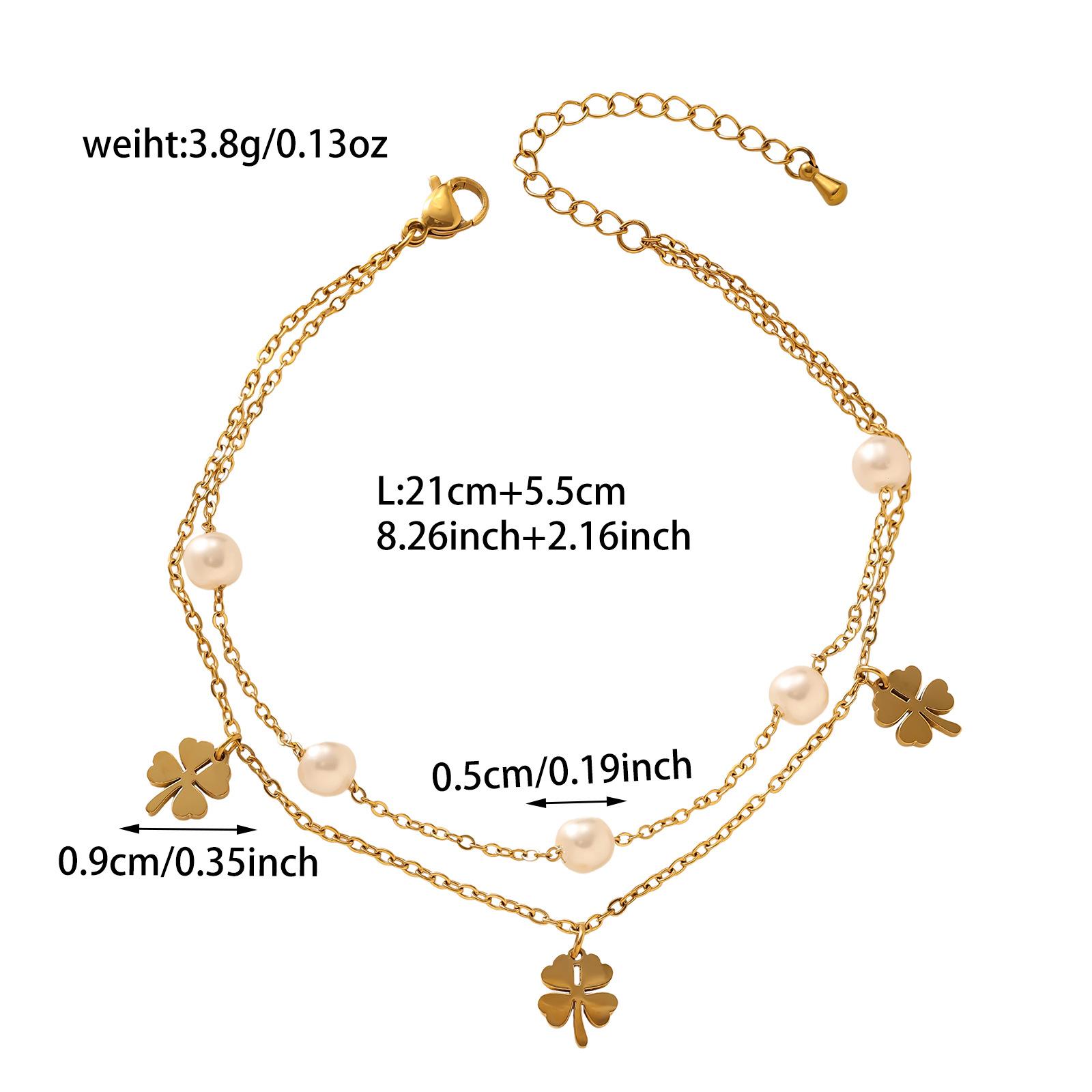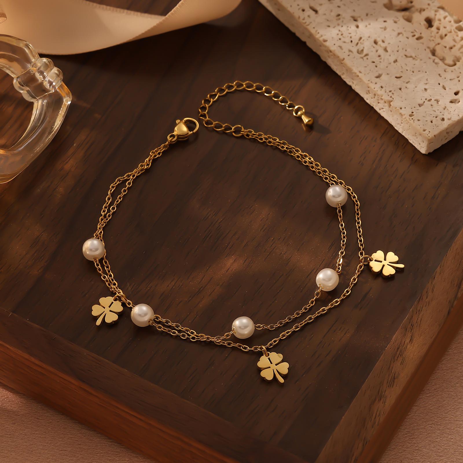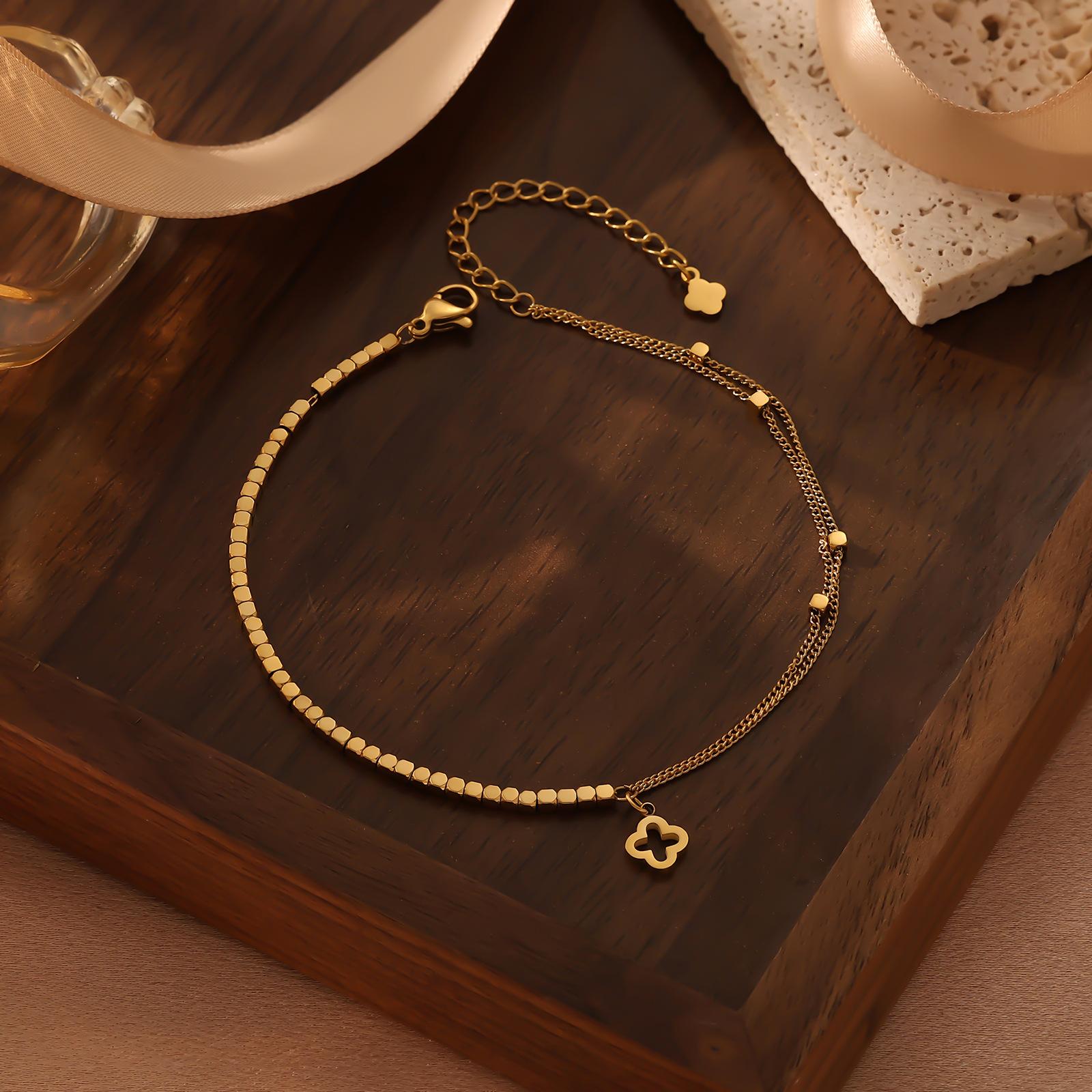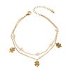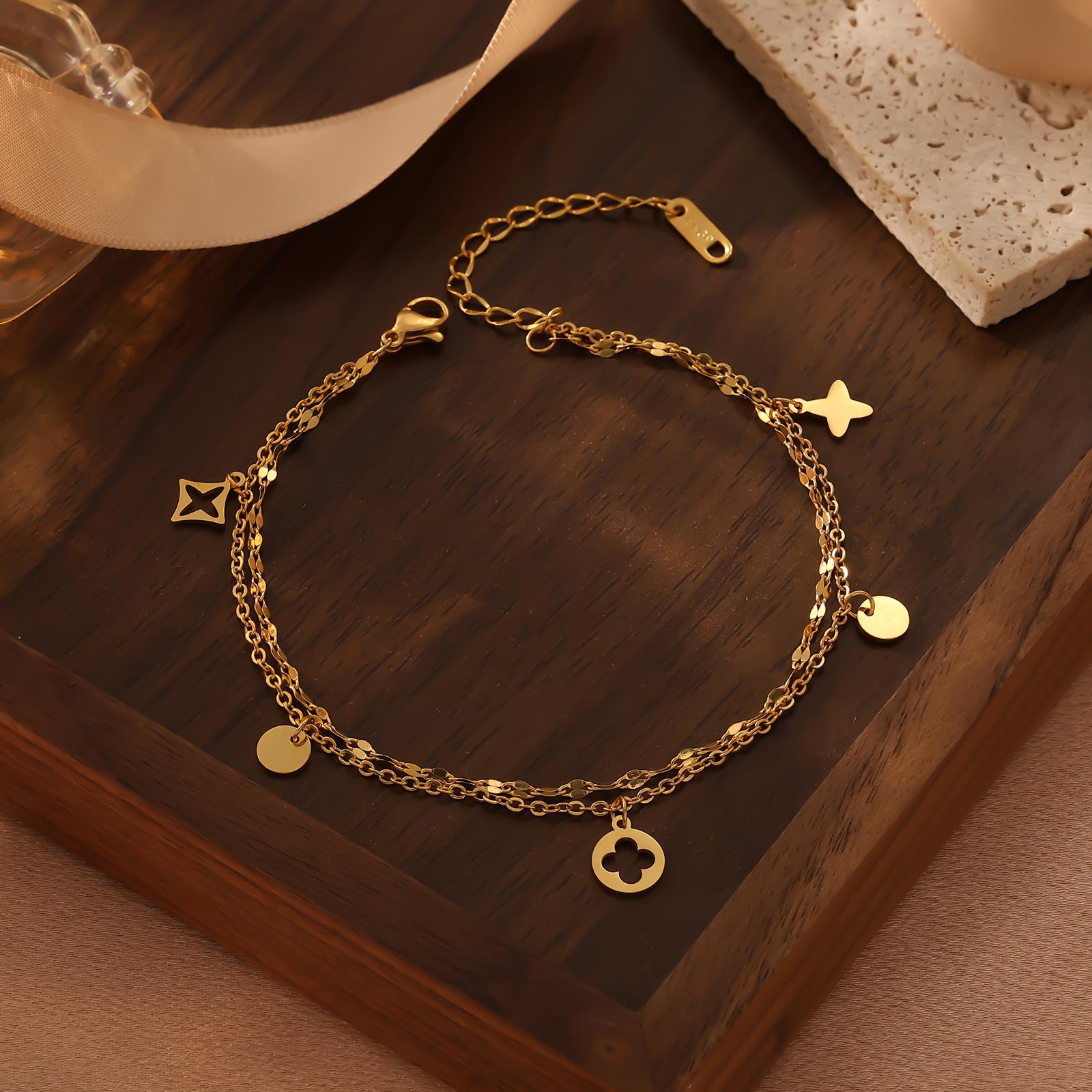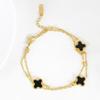 Moda Estilo Coreano de Alta Gama Simple Trébol de Cuatro Hojas Dorado Números Romanos Pulsera de Doble Capa Acero Titanio Chapado Oro Real Ins Lujo Ligero