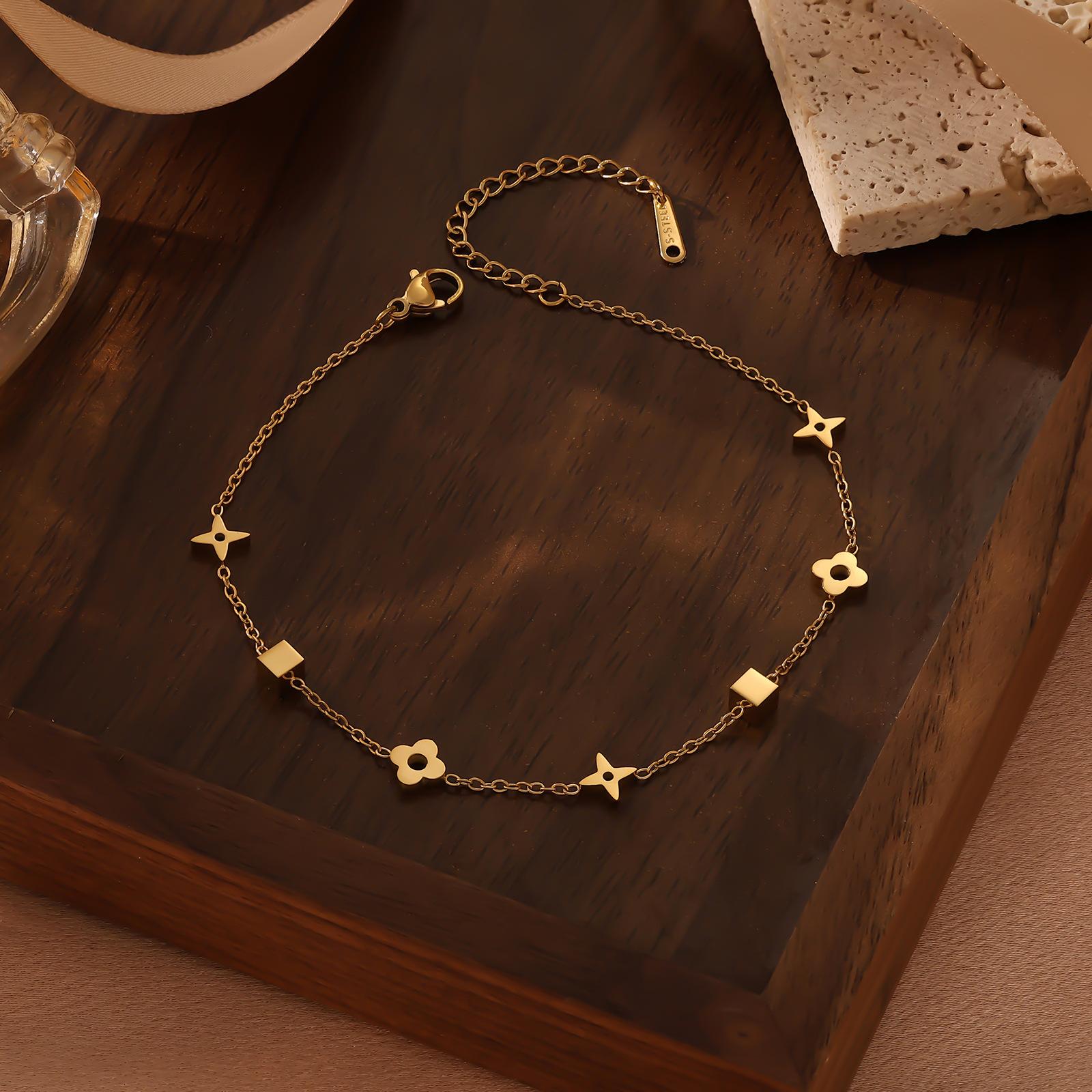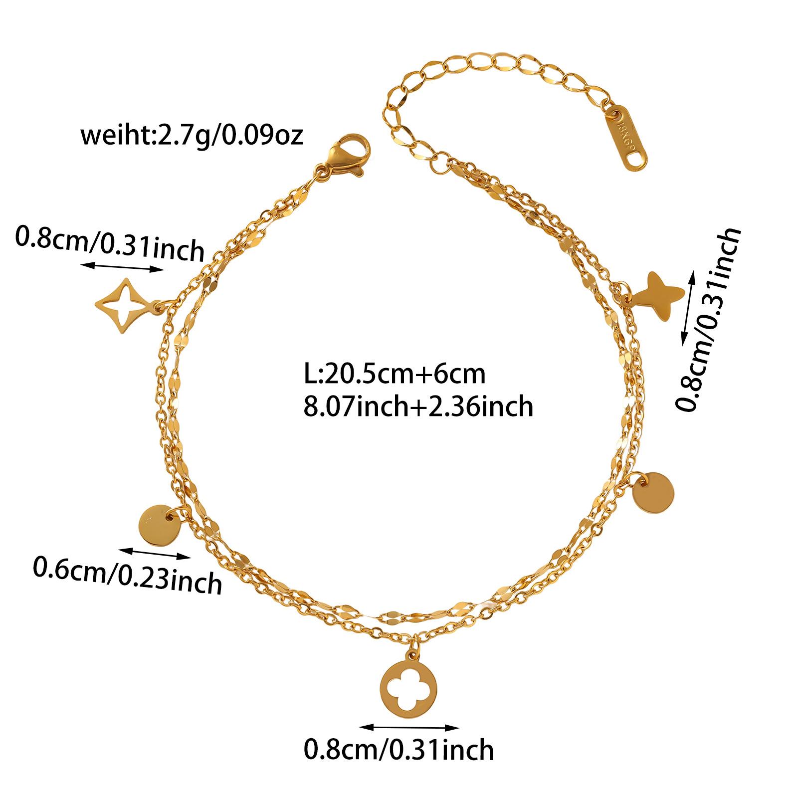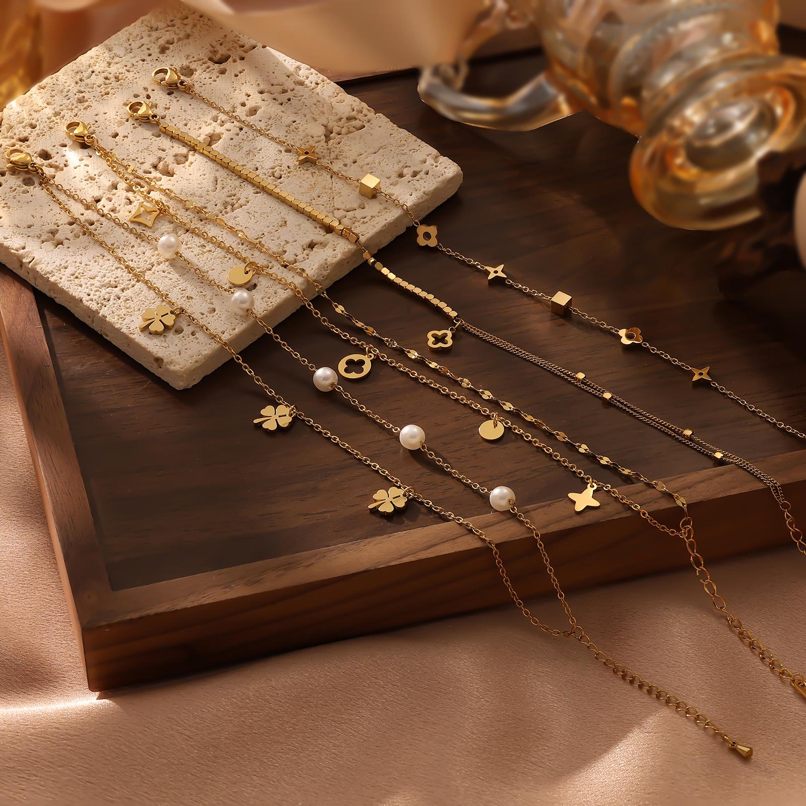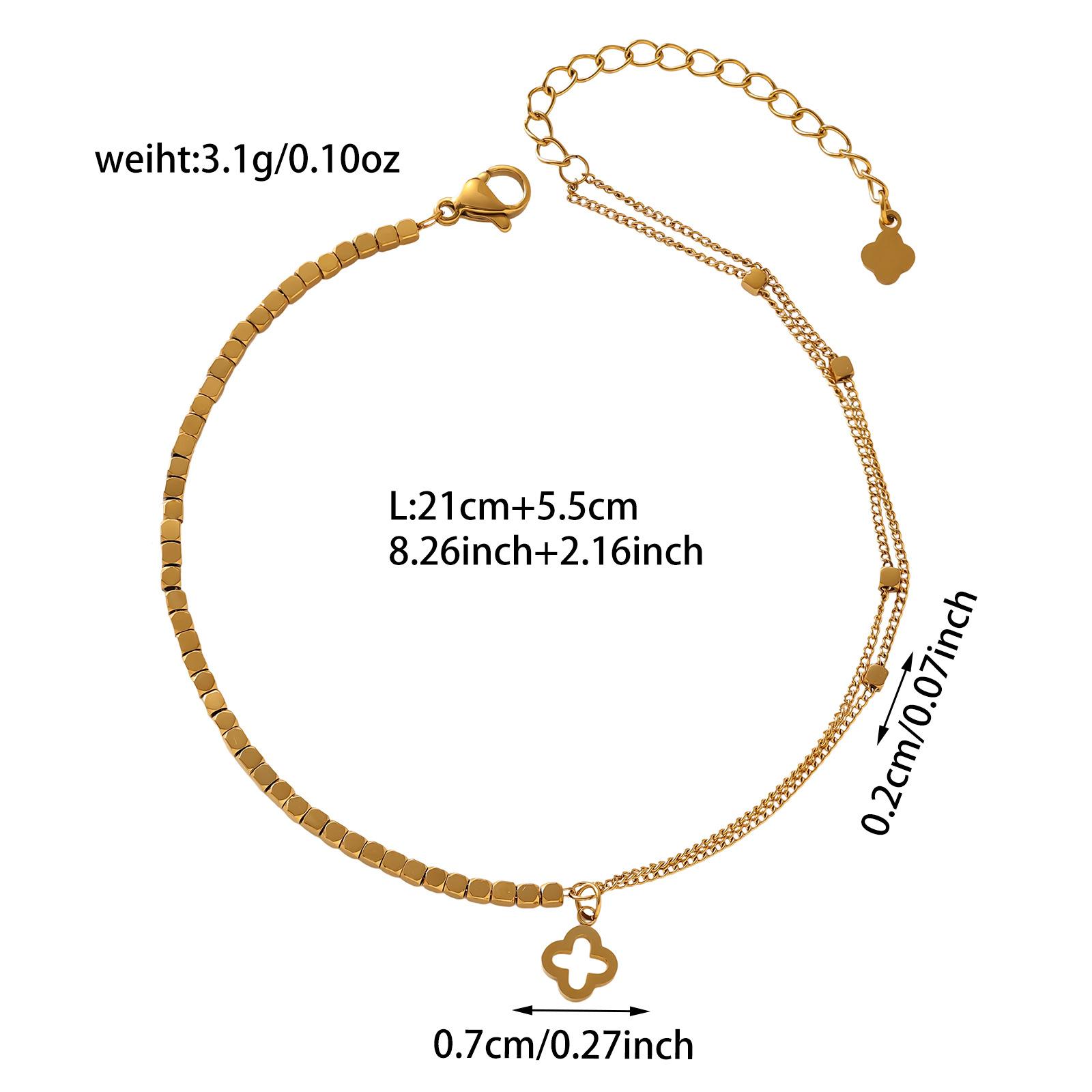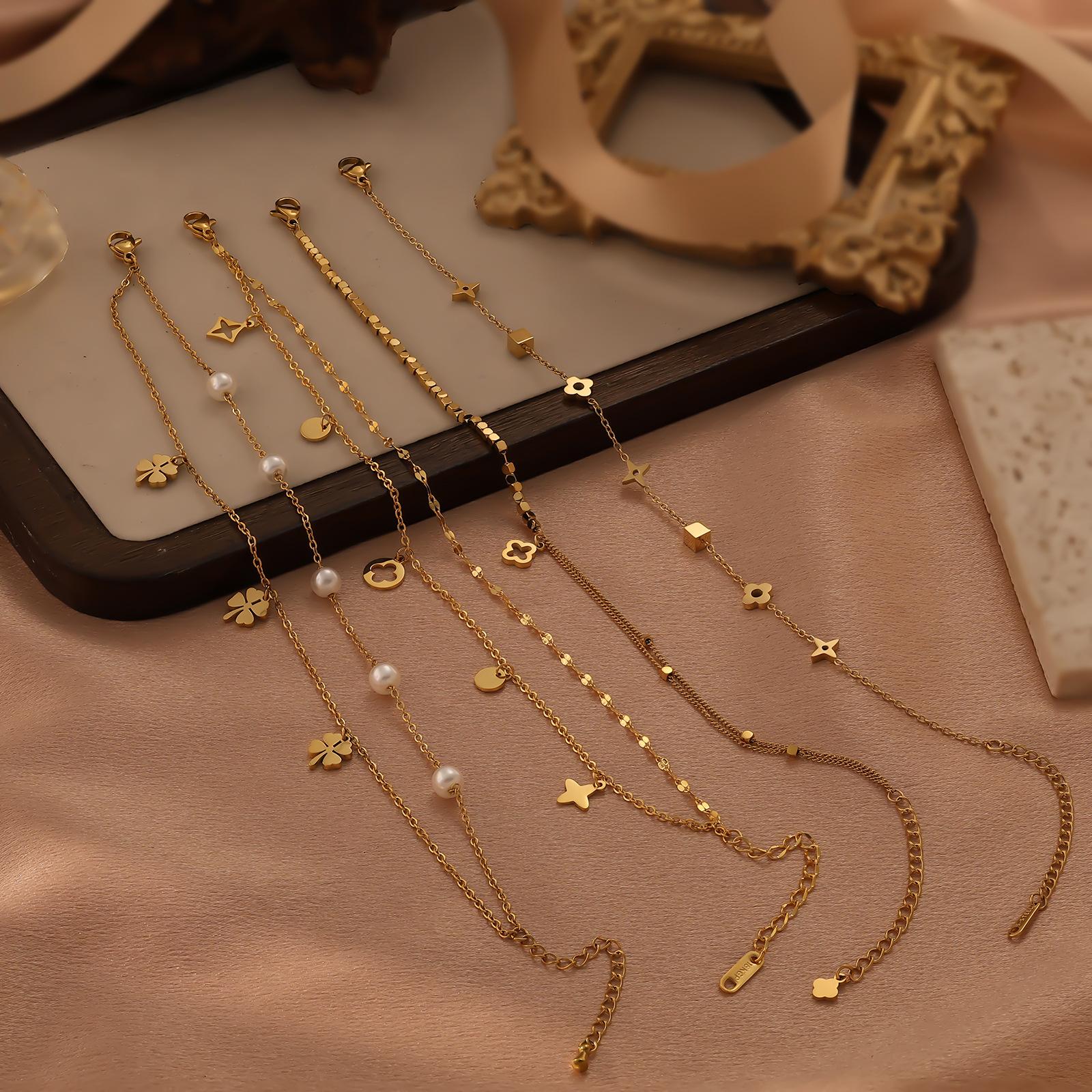 Moda Estilo Coreano de Alta Gama Simple Trébol de Cuatro Hojas Dorado Números Romanos Pulsera de Doble Capa Acero Titanio Chapado Oro Real Ins Lujo Ligero
