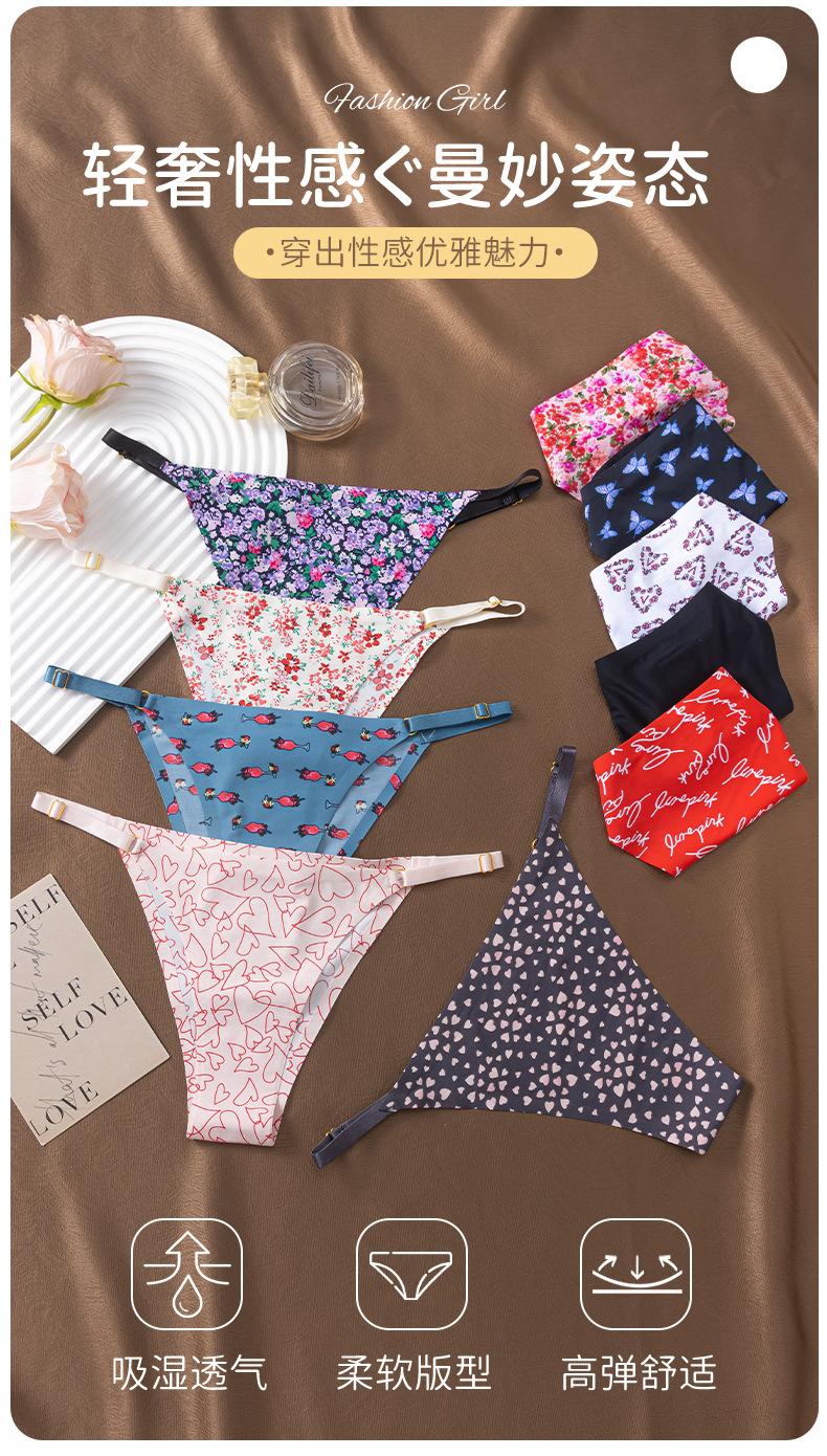 Nuevo tanga sin costuras de seda de hielo para mujer, estampado, cintura baja, sexy, tipo T, tentación ardiente, deseo puro, viento, ropa interior de yoga para mujer