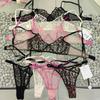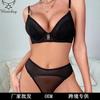 Lencería Sexy Transfronteriza Sujetador Francés Delgado Transparente de Encaje Bordado Minimizador de Busto Grande Talla Grande Set de Lencería