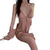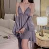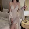 Pijama Sexy Verano Seda de Hielo de Alta Gama con Almohadillas para el Busto Talla Grande Tirantes Camisón Encaje Calado Traje Nuevo Verano