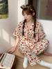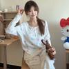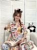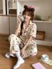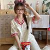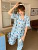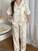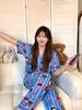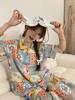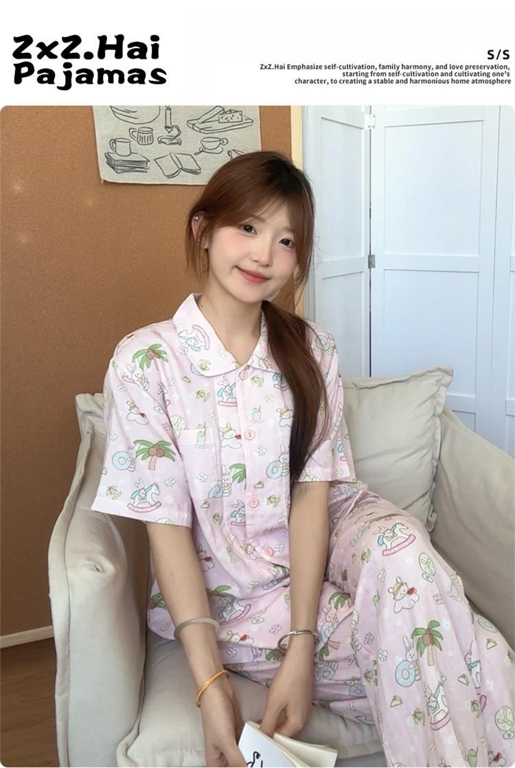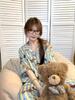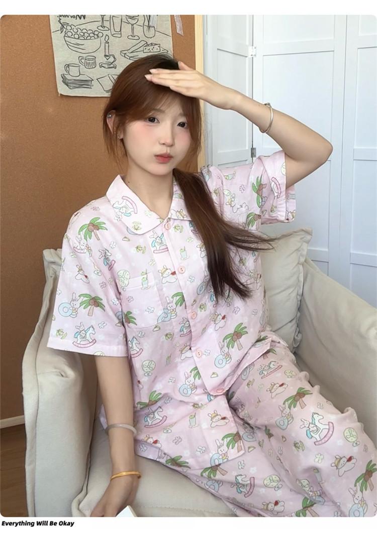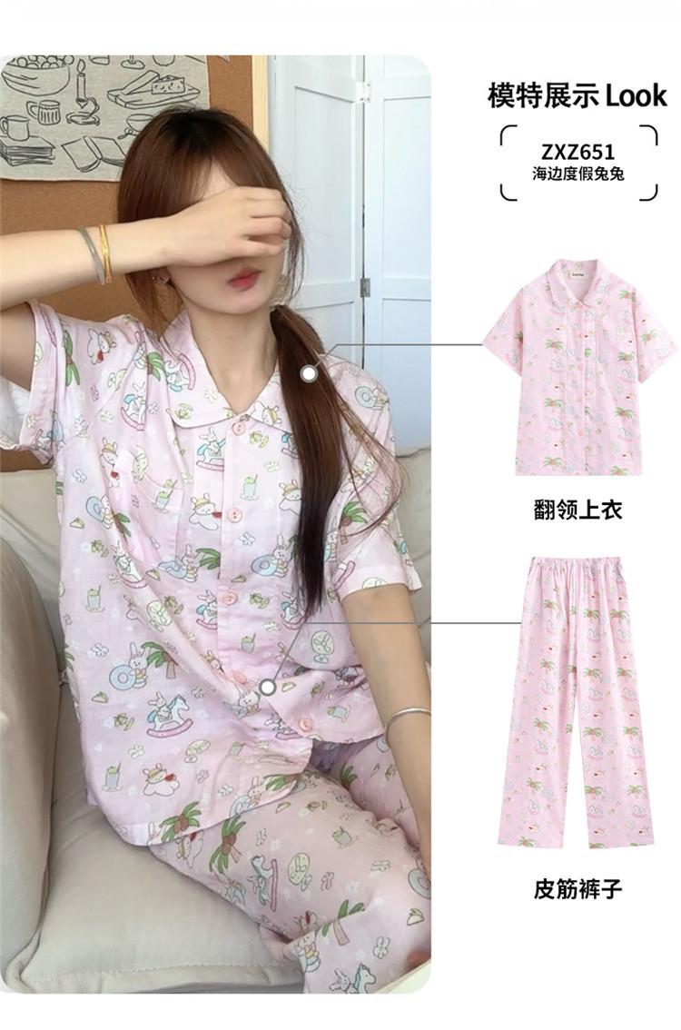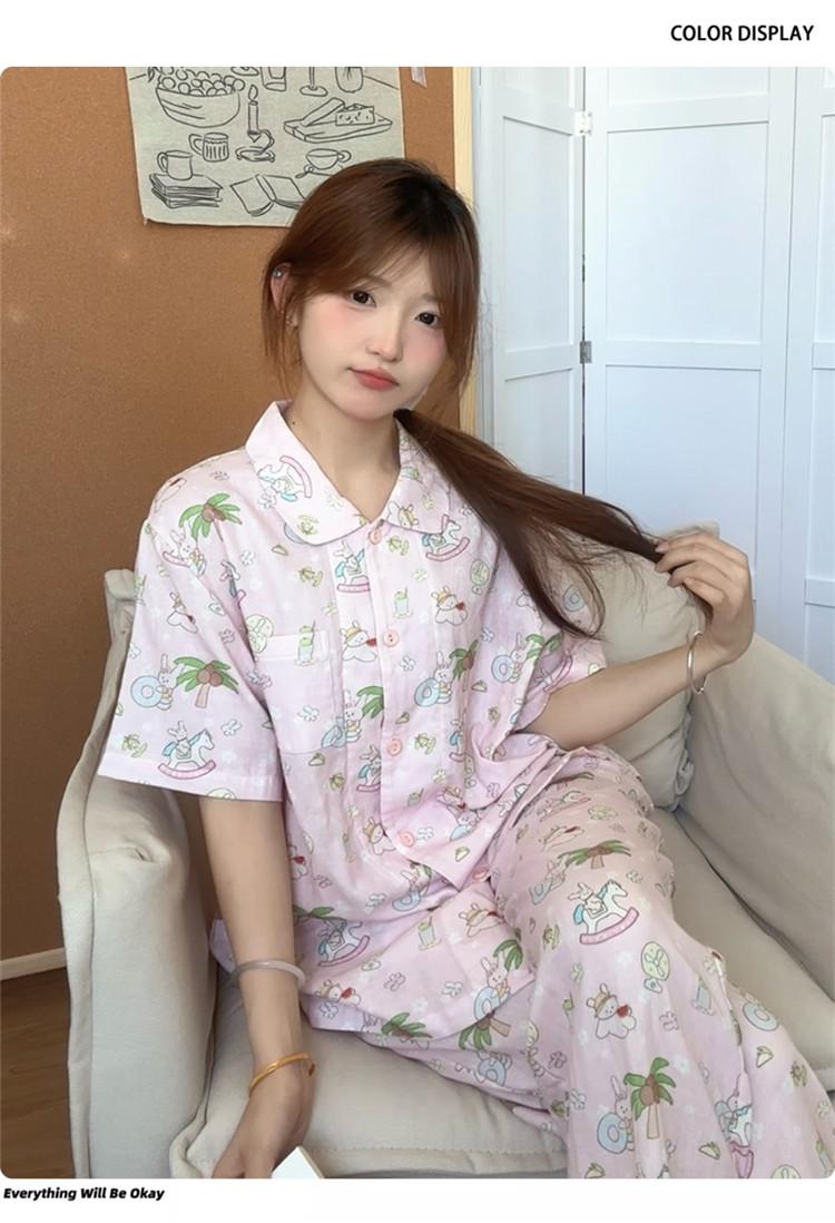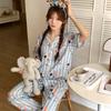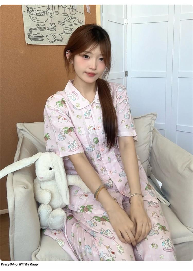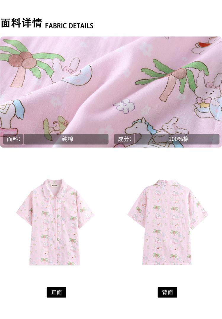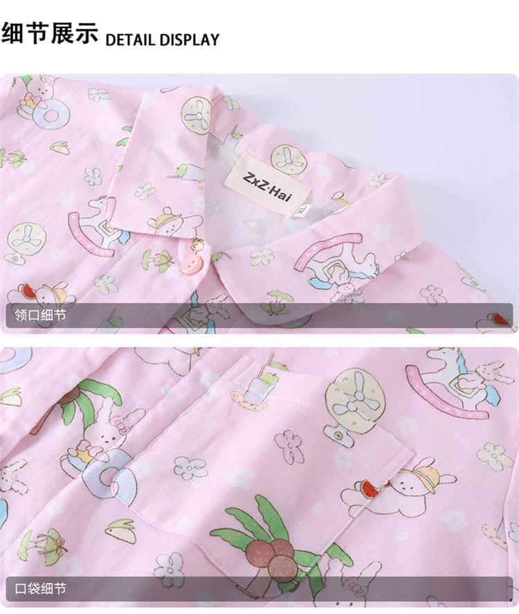 Traje de pijama de algodón puro de conejo para vacaciones de primavera y verano junto al mar Nuevo cárdigan con solapa clavo ropa de exterior ropa para el hogar
