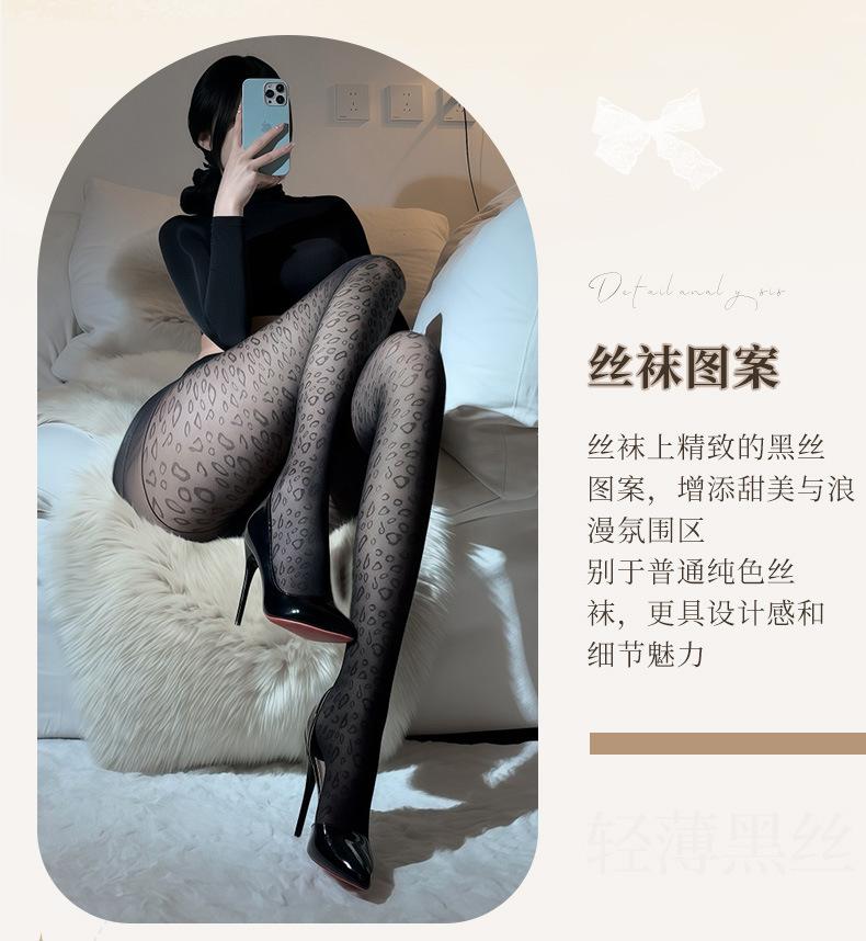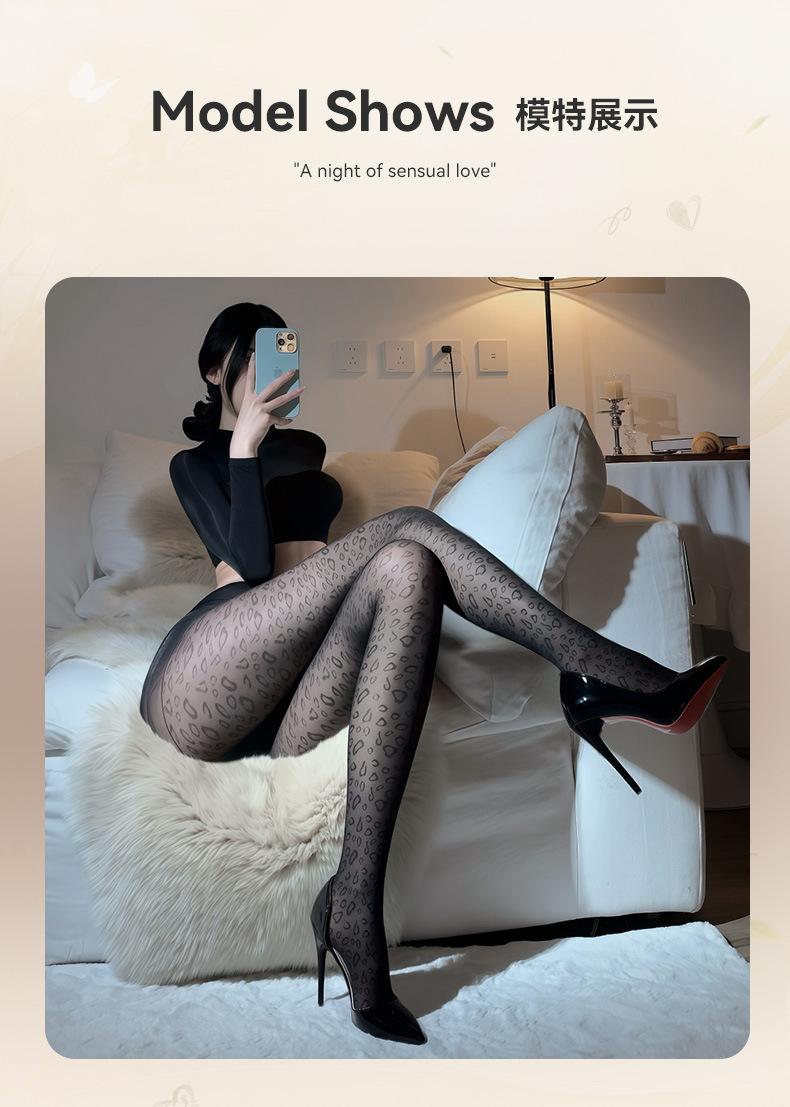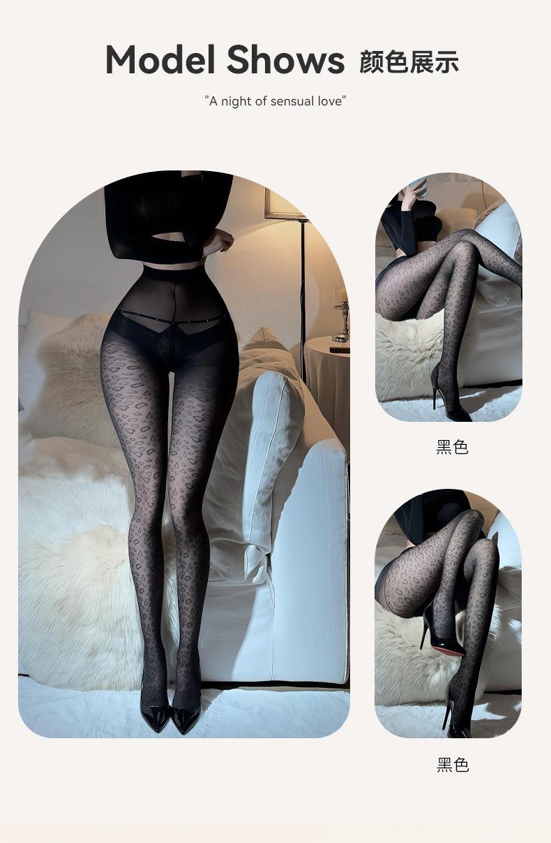 Medias Sexy con Estampado de Leopardo Ultra-Delgadas Transparentes de Cintura Alta Artefacto Pierna Desnuda Verano 5183
