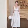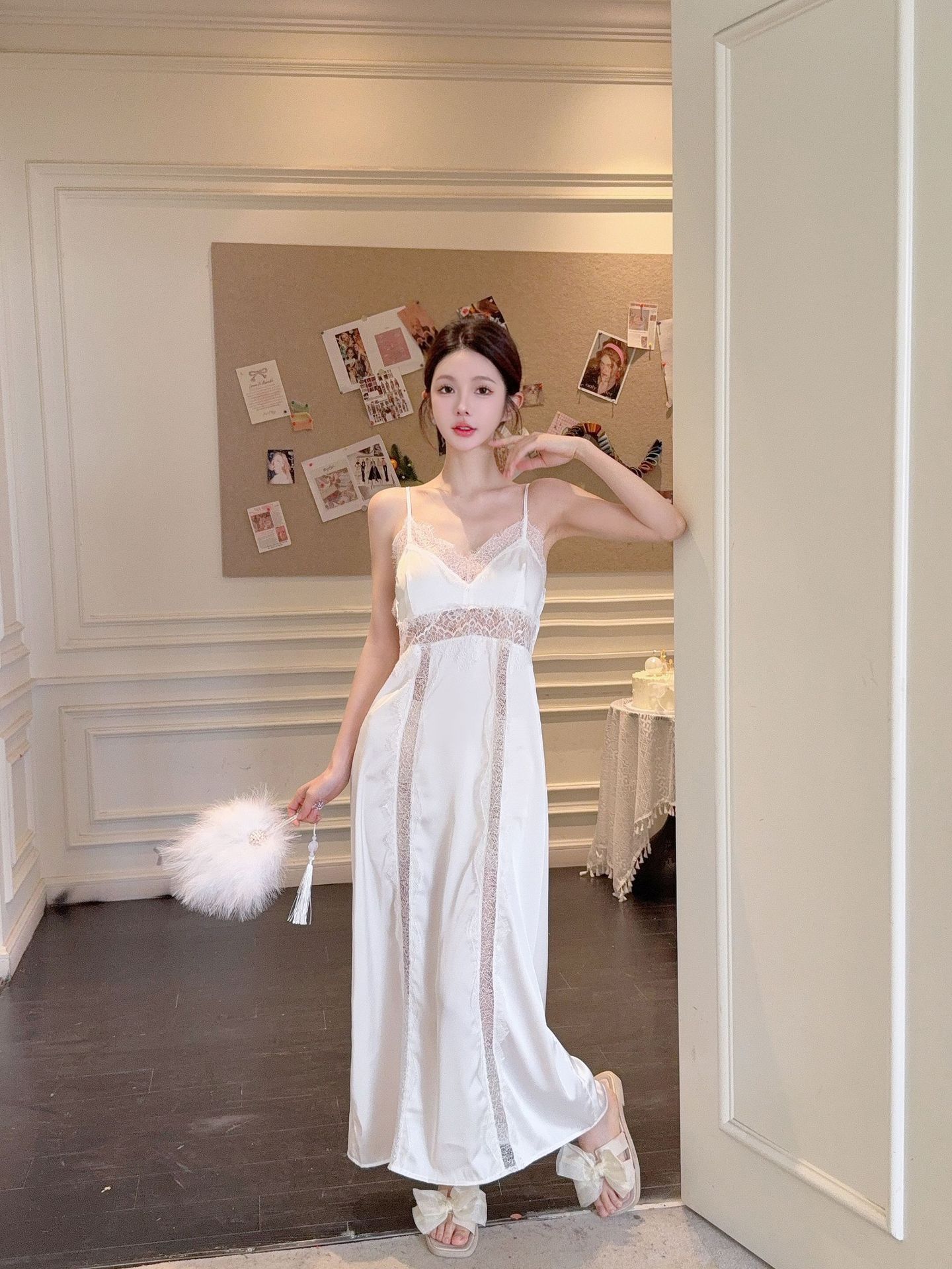 Estilo Princesa Encaje Luz de Luna Blanco Sexy Pijama para Mujer Cinta de Hielo Almohadilla para el Pecho Estilo Corte Francés Camisón con Tirantes Conjunto de Camisón
