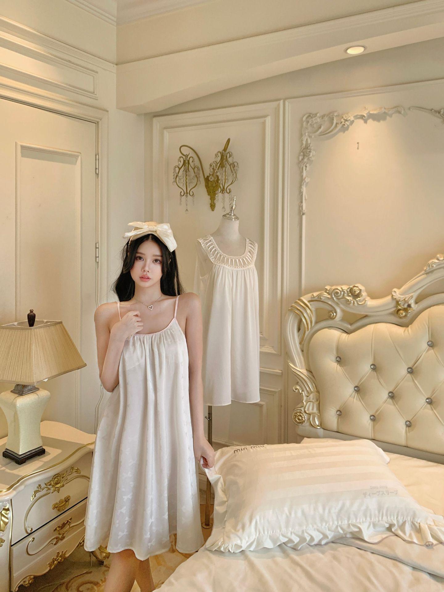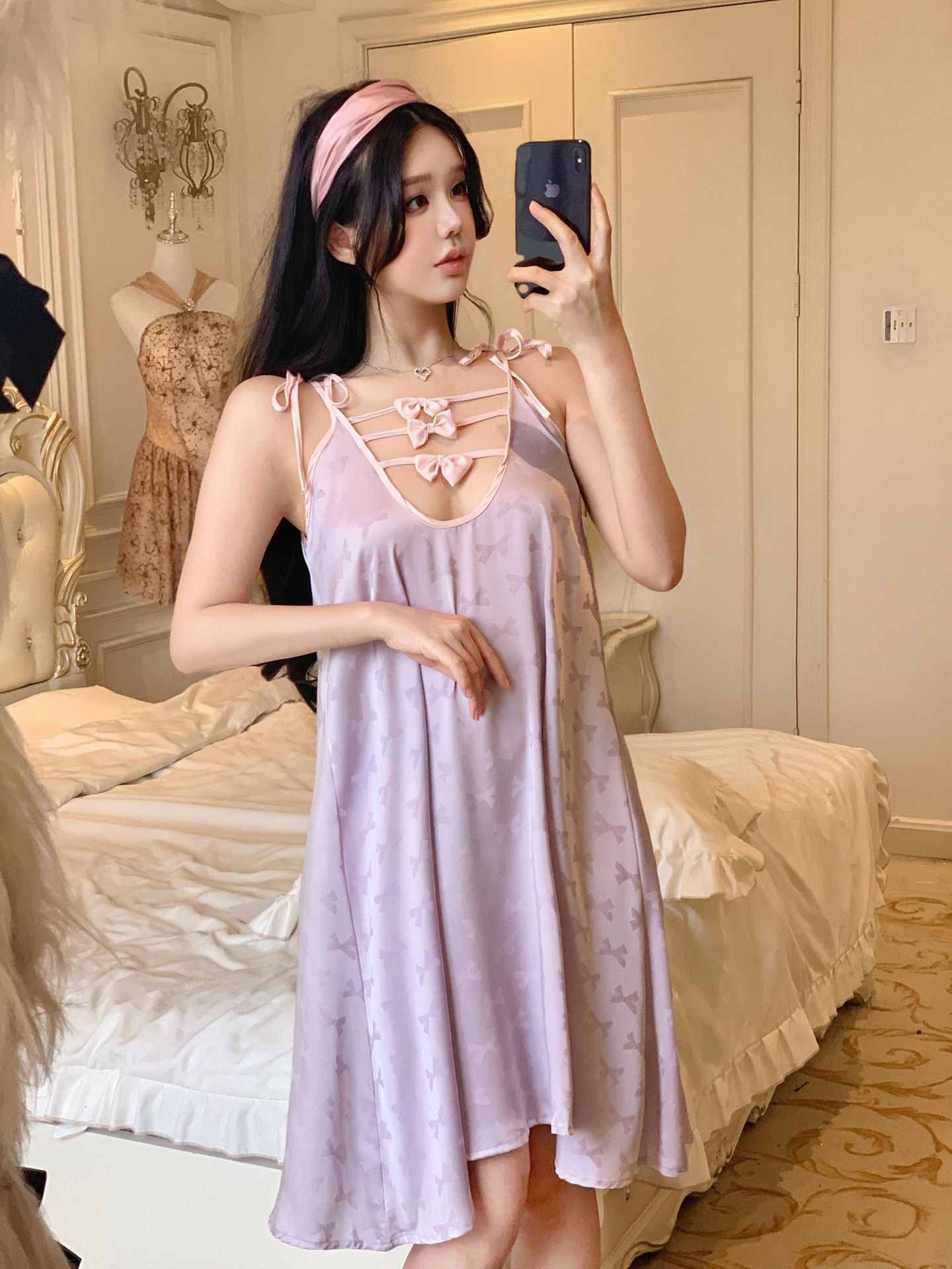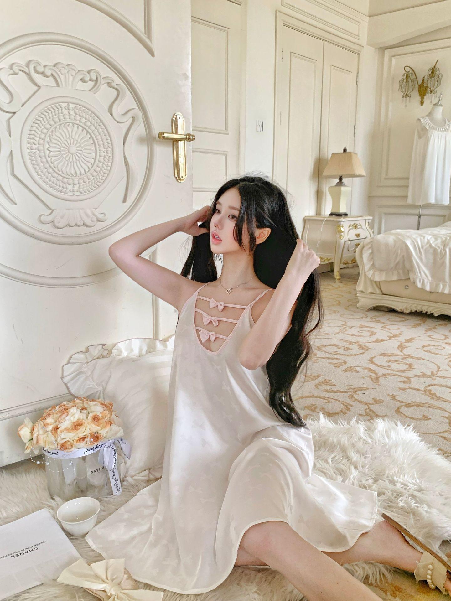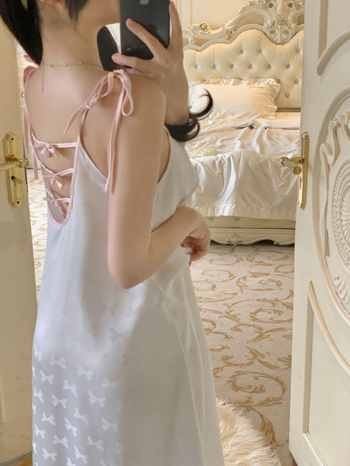 Pijamas Sexy Mujer Verano Camisón 2025 Nuevo Estilo Deseo Puro Seda de Hielo Camisola Vestido para Dormir con Almohadillas para el Busto Ropa de Casa
