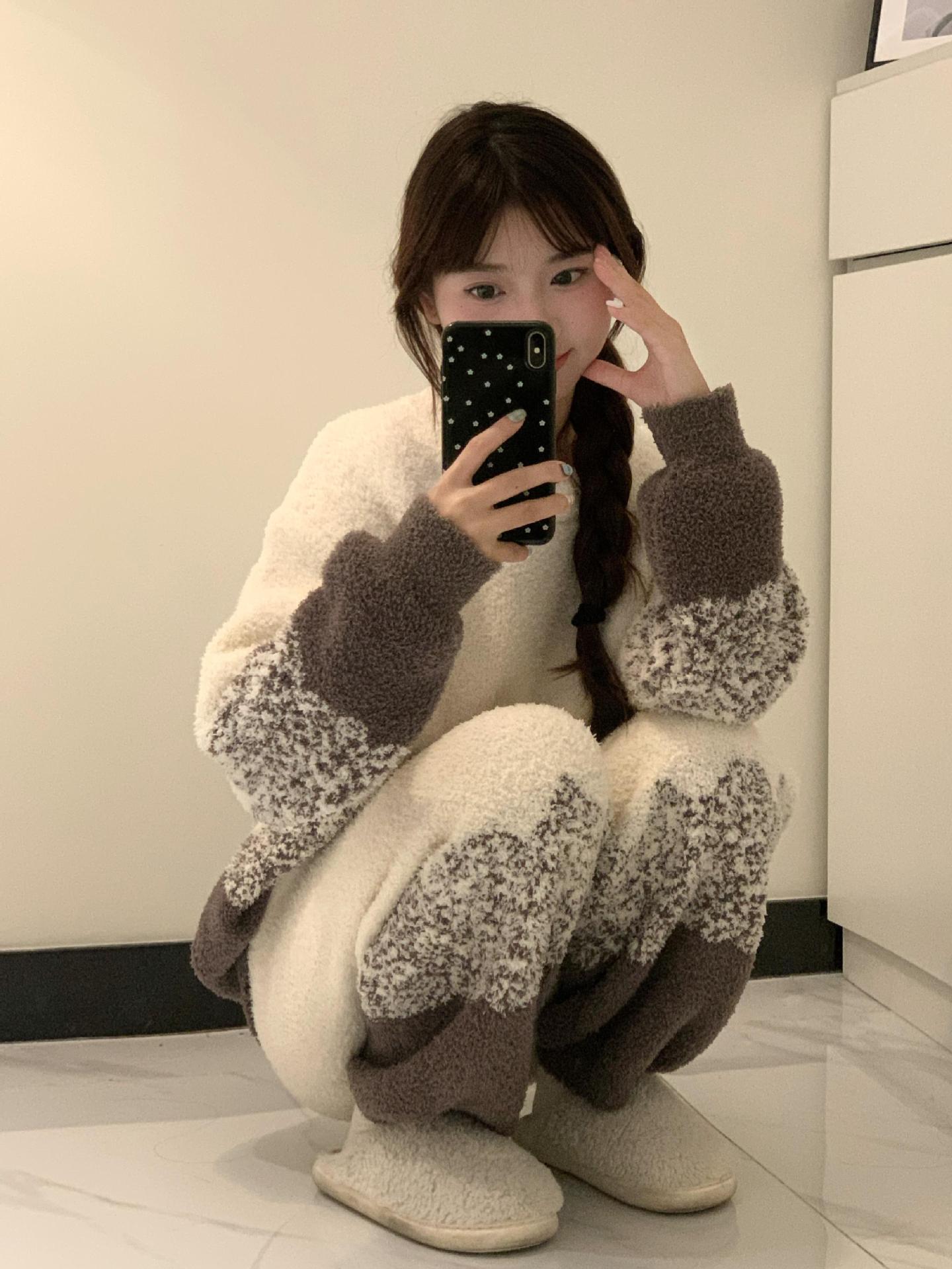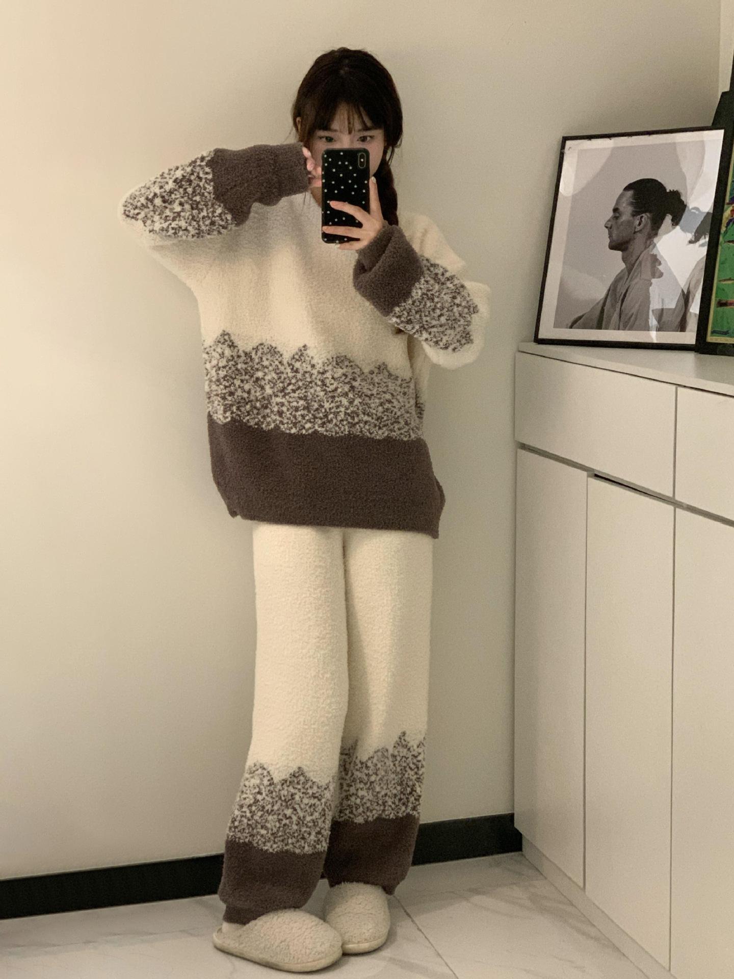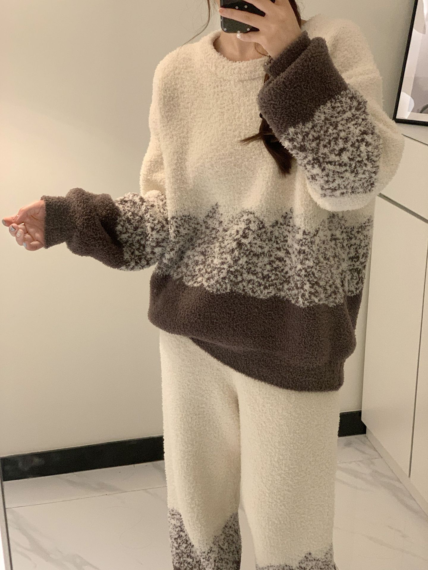 Pijama de punto degradado estilo coreano para niña, de media felpa, para mujer, invierno, nuevo, cálido, de felpa, ropa de casa, traje para exterior