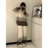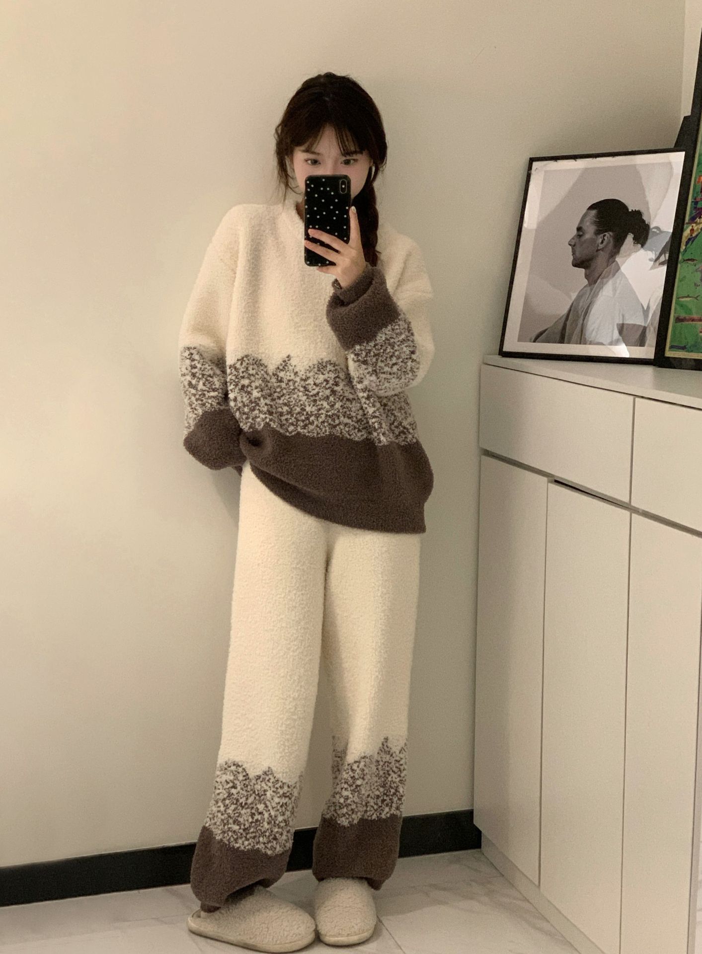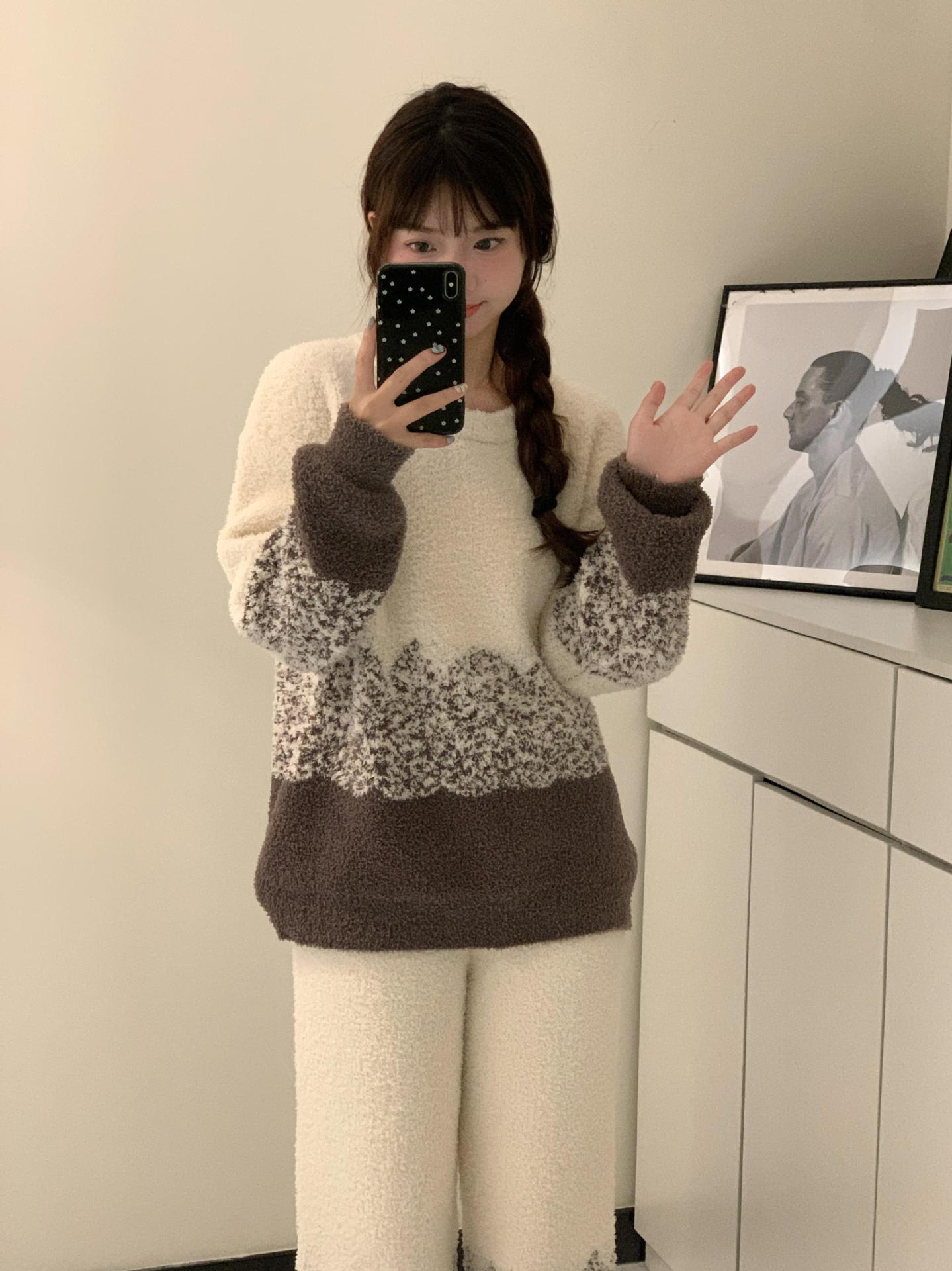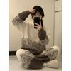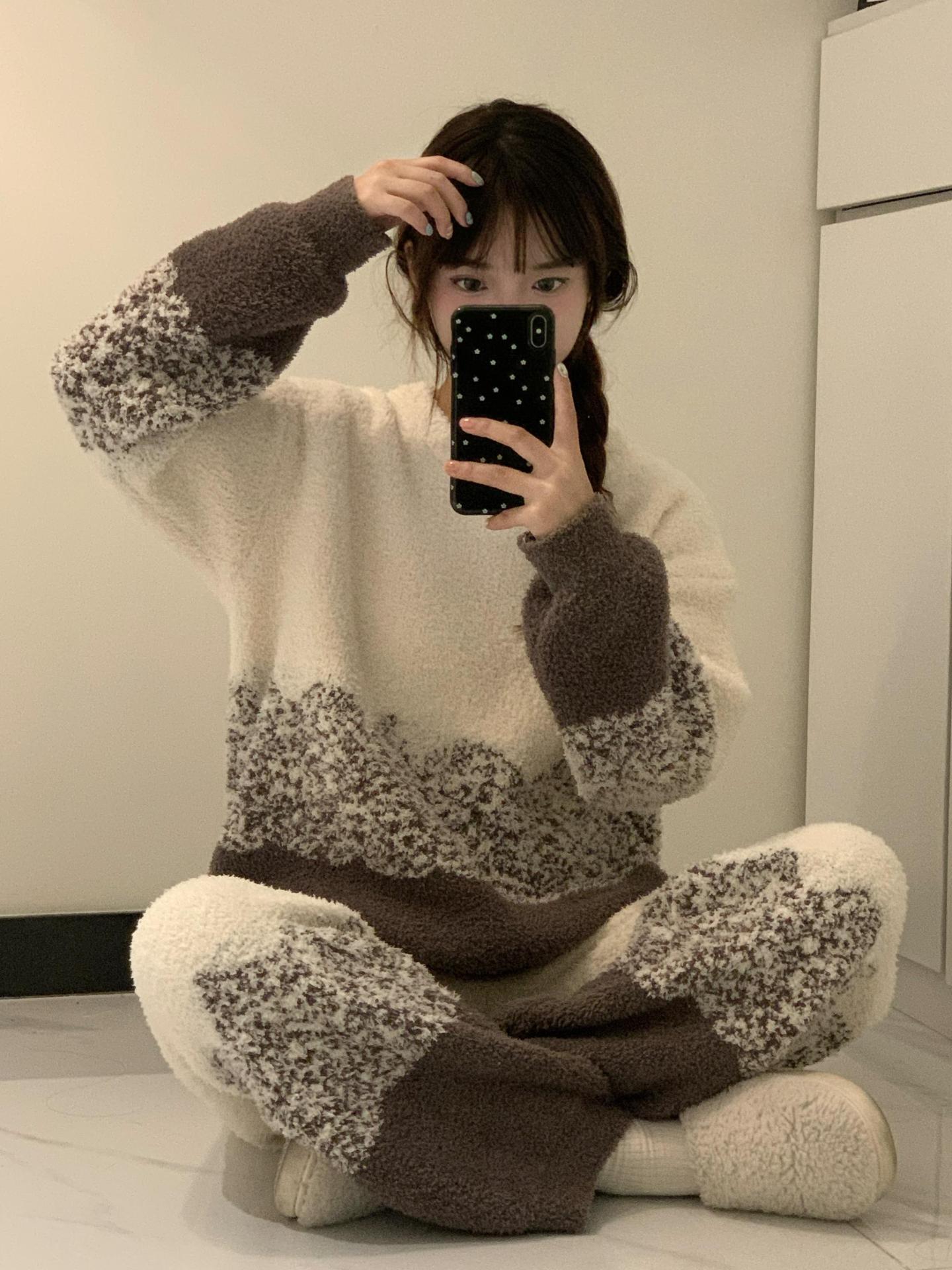 Pijama de punto degradado estilo coreano para niña, de media felpa, para mujer, invierno, nuevo, cálido, de felpa, ropa de casa, traje para exterior