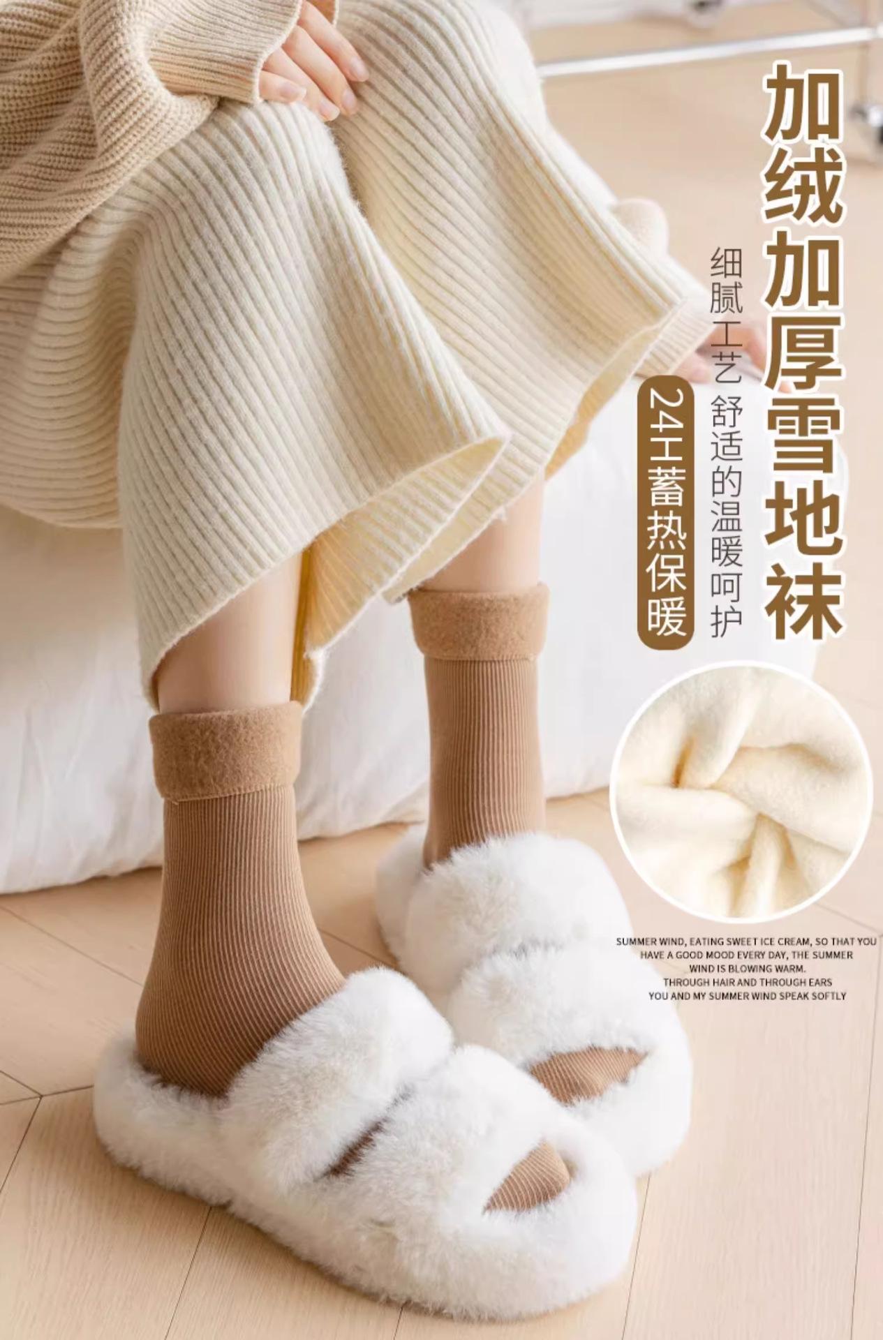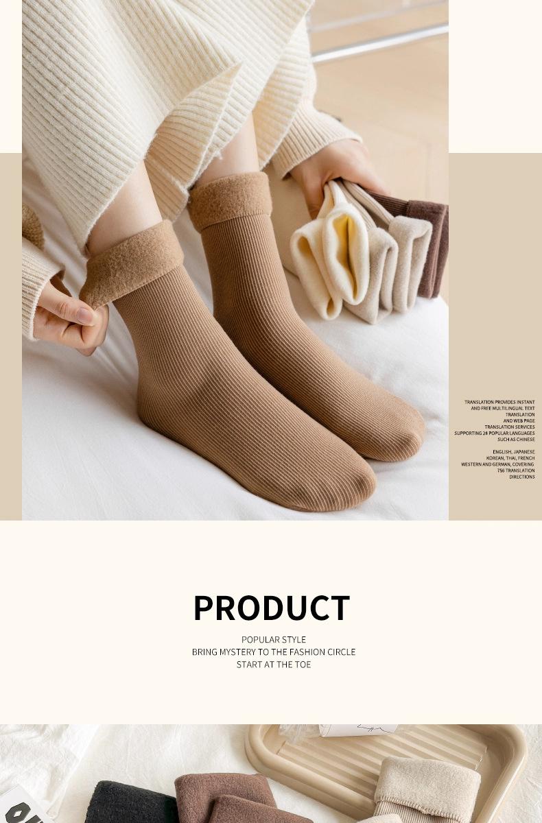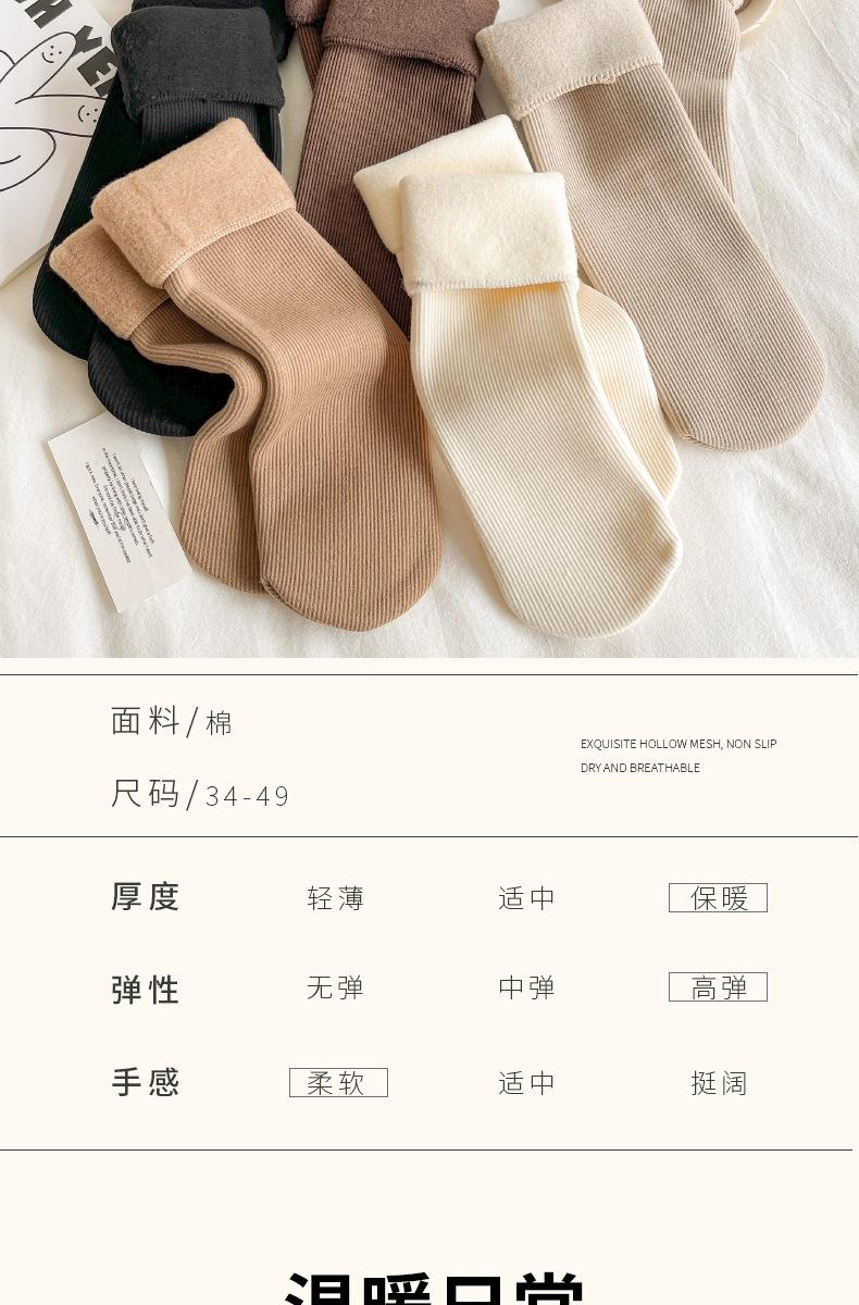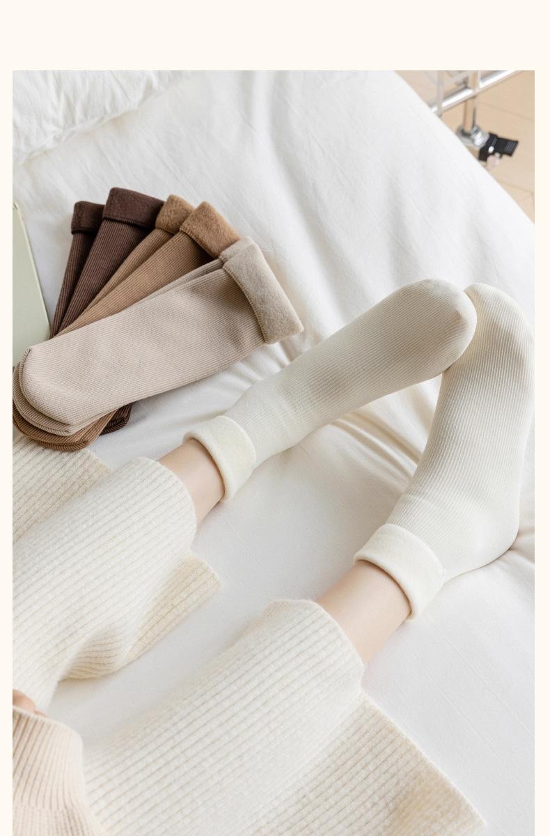 Calcetines de nieve de otoño e invierno más terciopelo más calcetines gruesos calcetines para mujer a prueba de frío calcetines cálidos de media caña calcetines para dormir de color sólido al por mayor