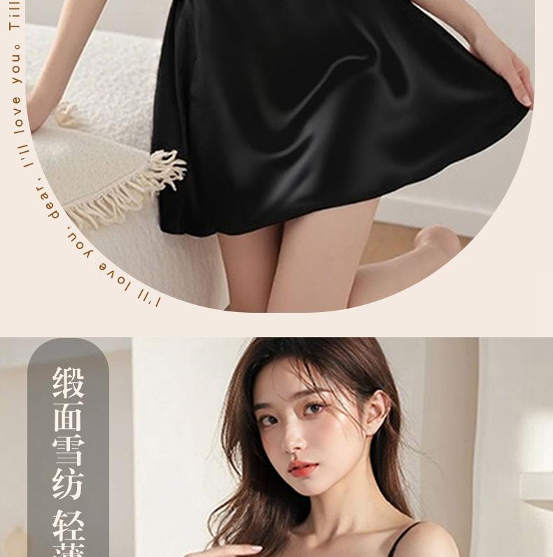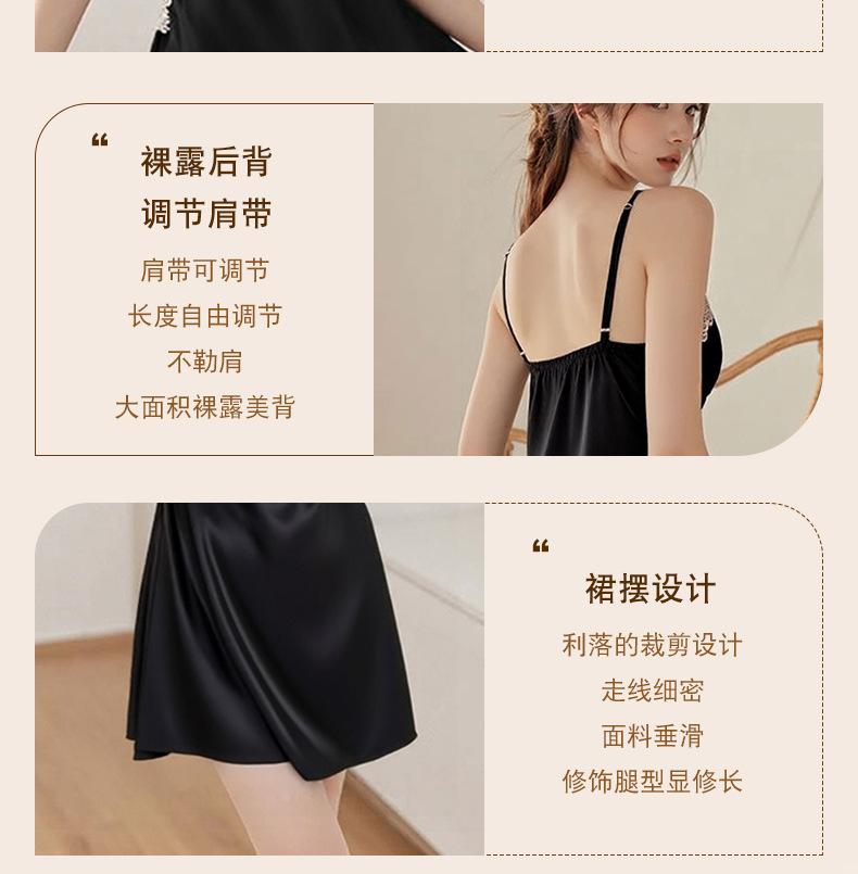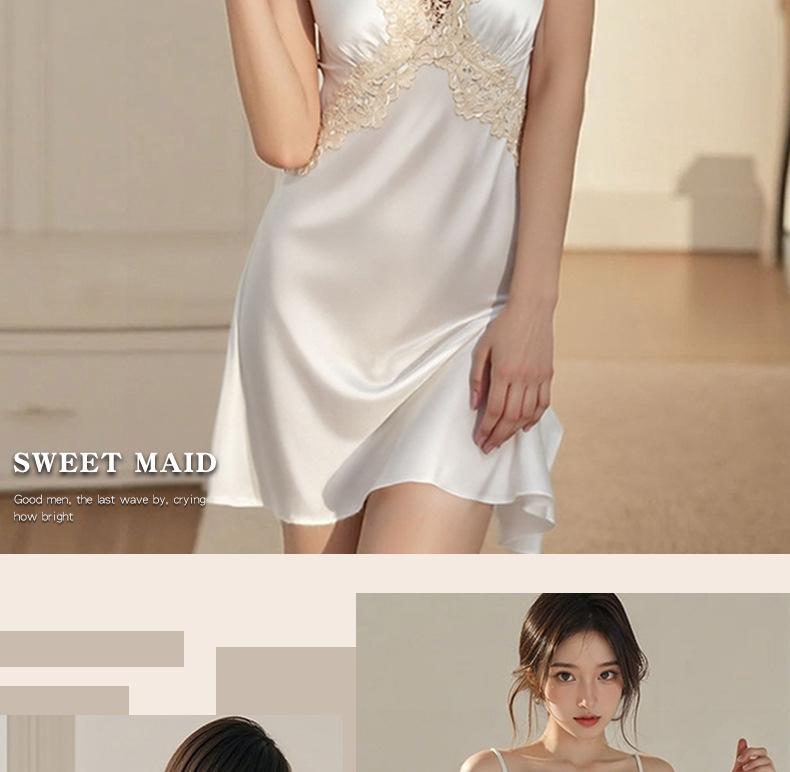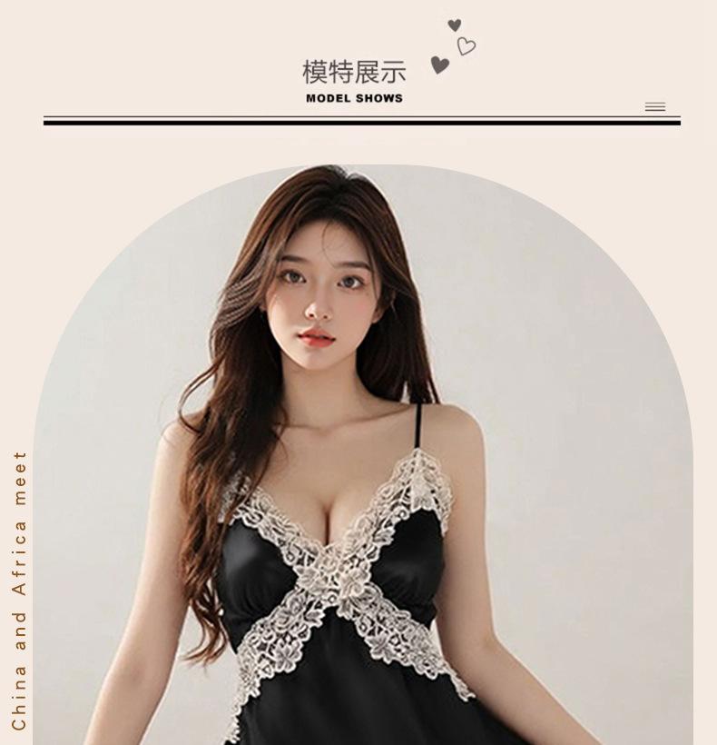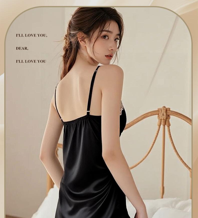 Black nightgown + T pants, White nightdress + T pants, Burgundy nightgown + T-back, Purple nightgown + thong
