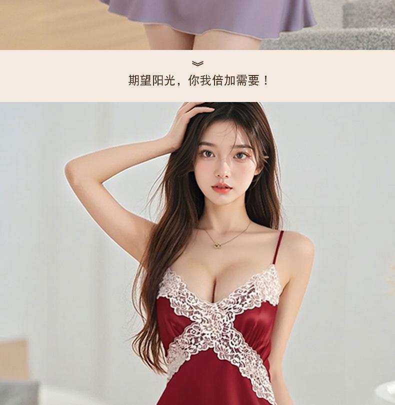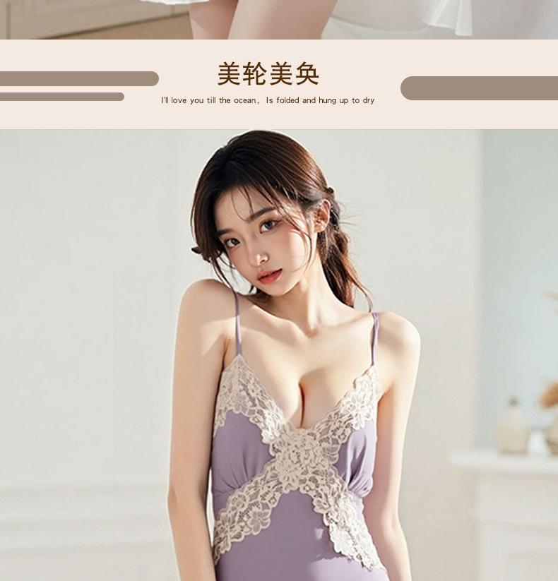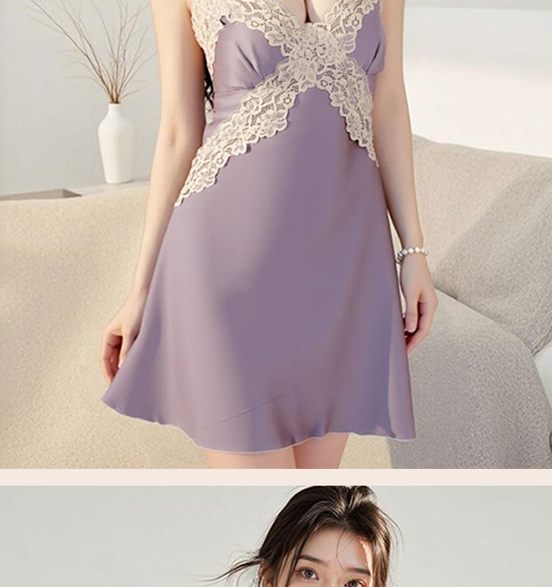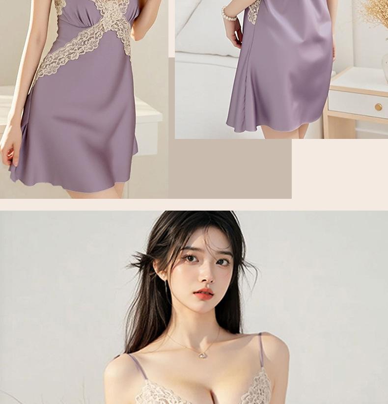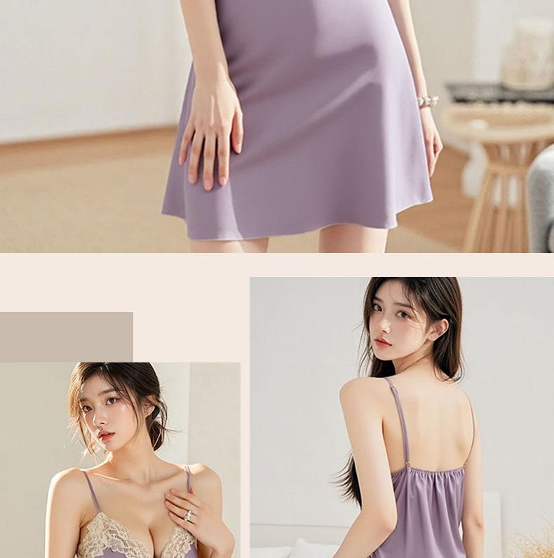 Camisón Sexy de Tirantes Tejido Amigable con la Piel Satén Plus Almohadillas en el Pecho Espalda en V Nude Set de Ropa para el Hogar para Mujer Morado de Alta Gama