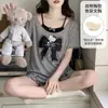 Pijamas para Mujer Verano Modal con Shorts de Manga Corta Acolchados Estilo Coreano Lindo Dibujo Animado Casual Ropa Exterior Conjunto para el Hogar