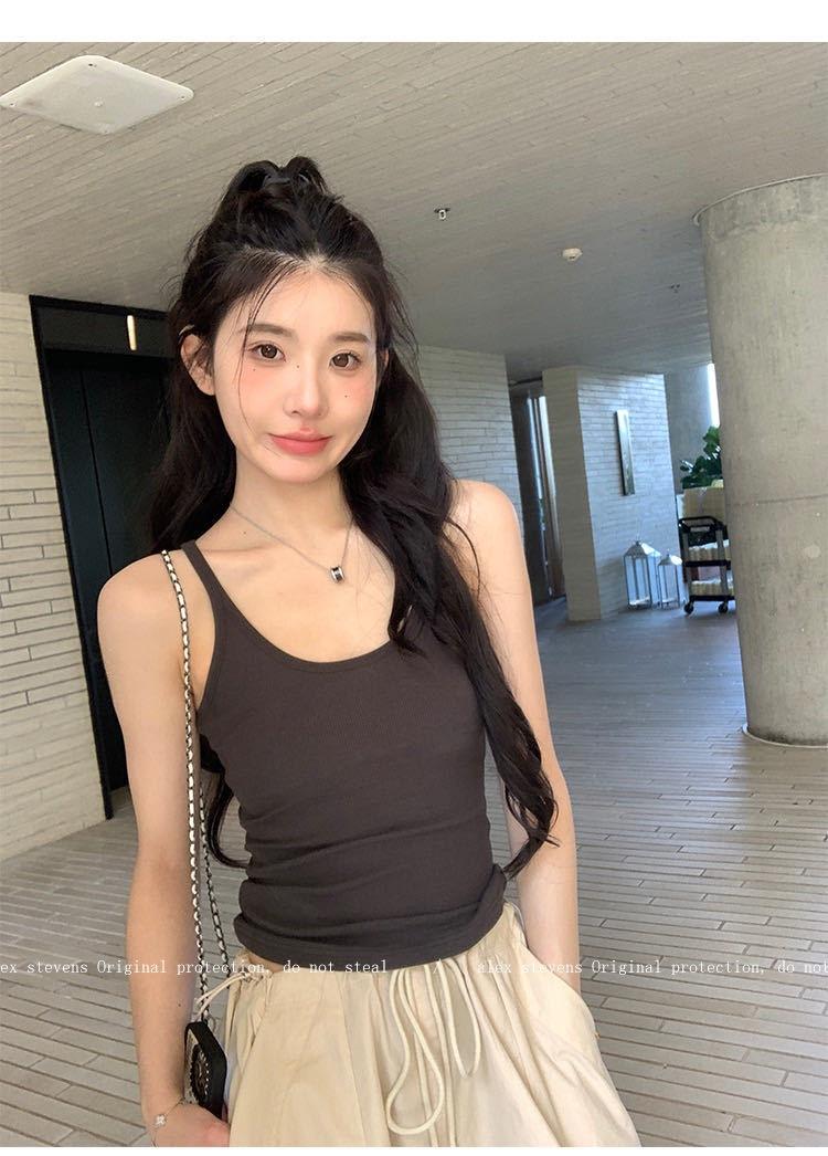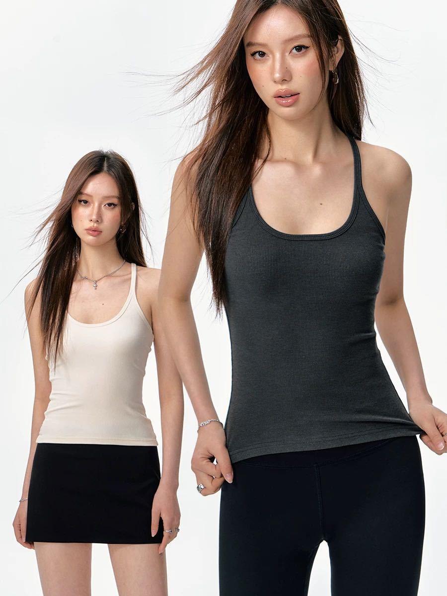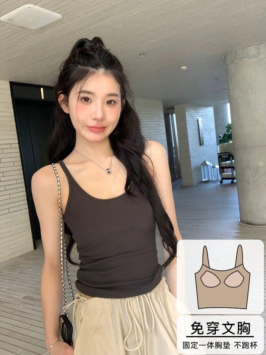 Top sin mangas versátil dulce y picante para ir al trabajo con almohadilla pectoral integrada, camisola ajustada para ropa exterior y capa base