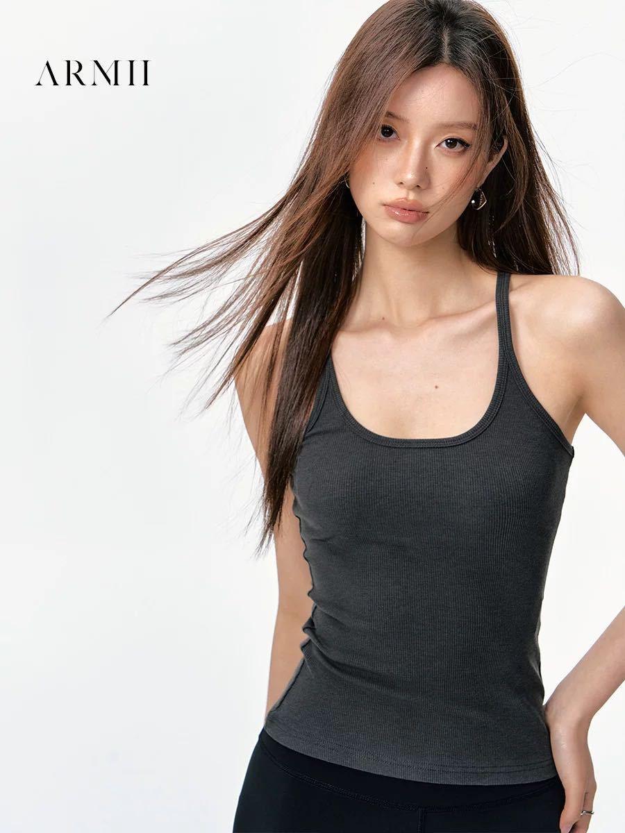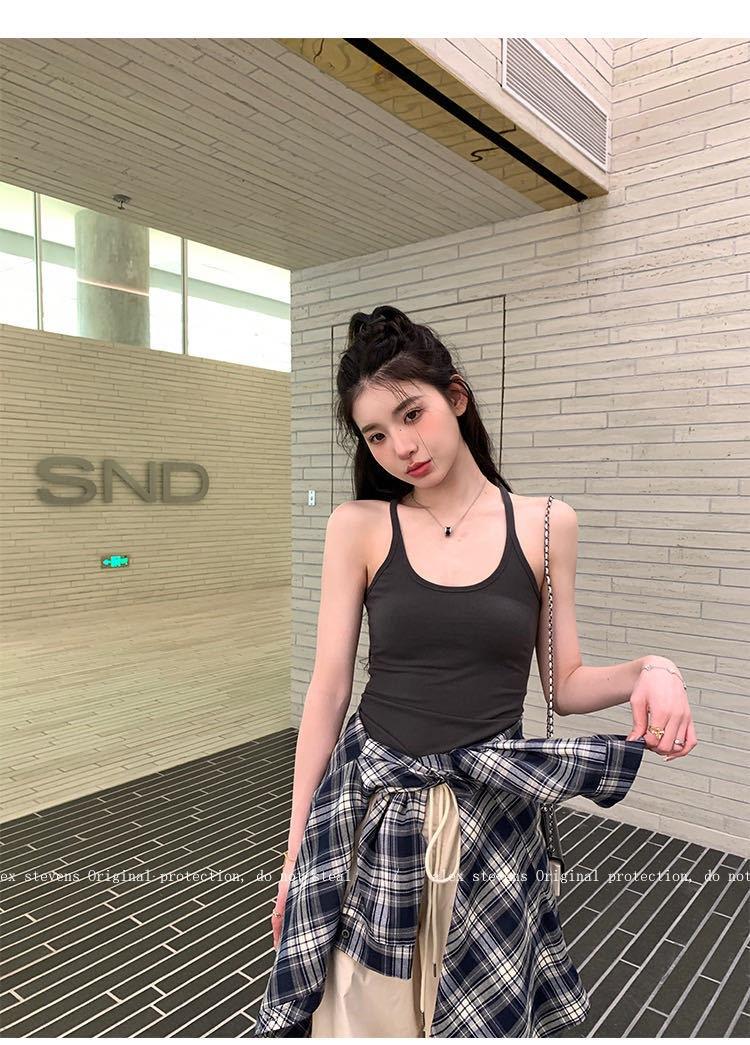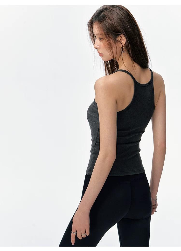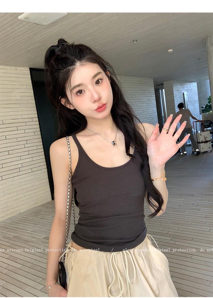 Top sin mangas versátil dulce y picante para ir al trabajo con almohadilla pectoral integrada, camisola ajustada para ropa exterior y capa base