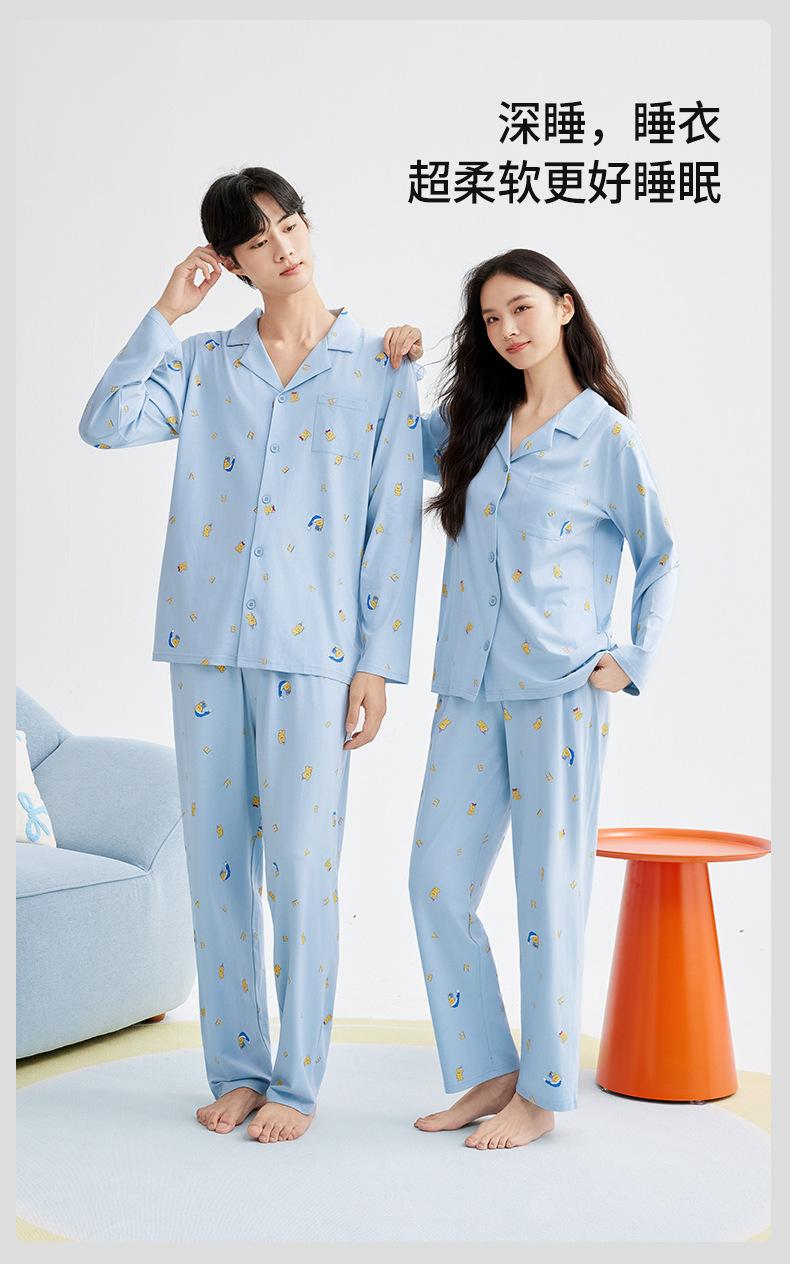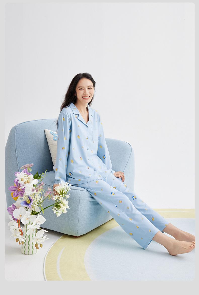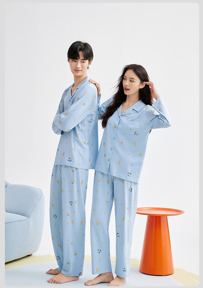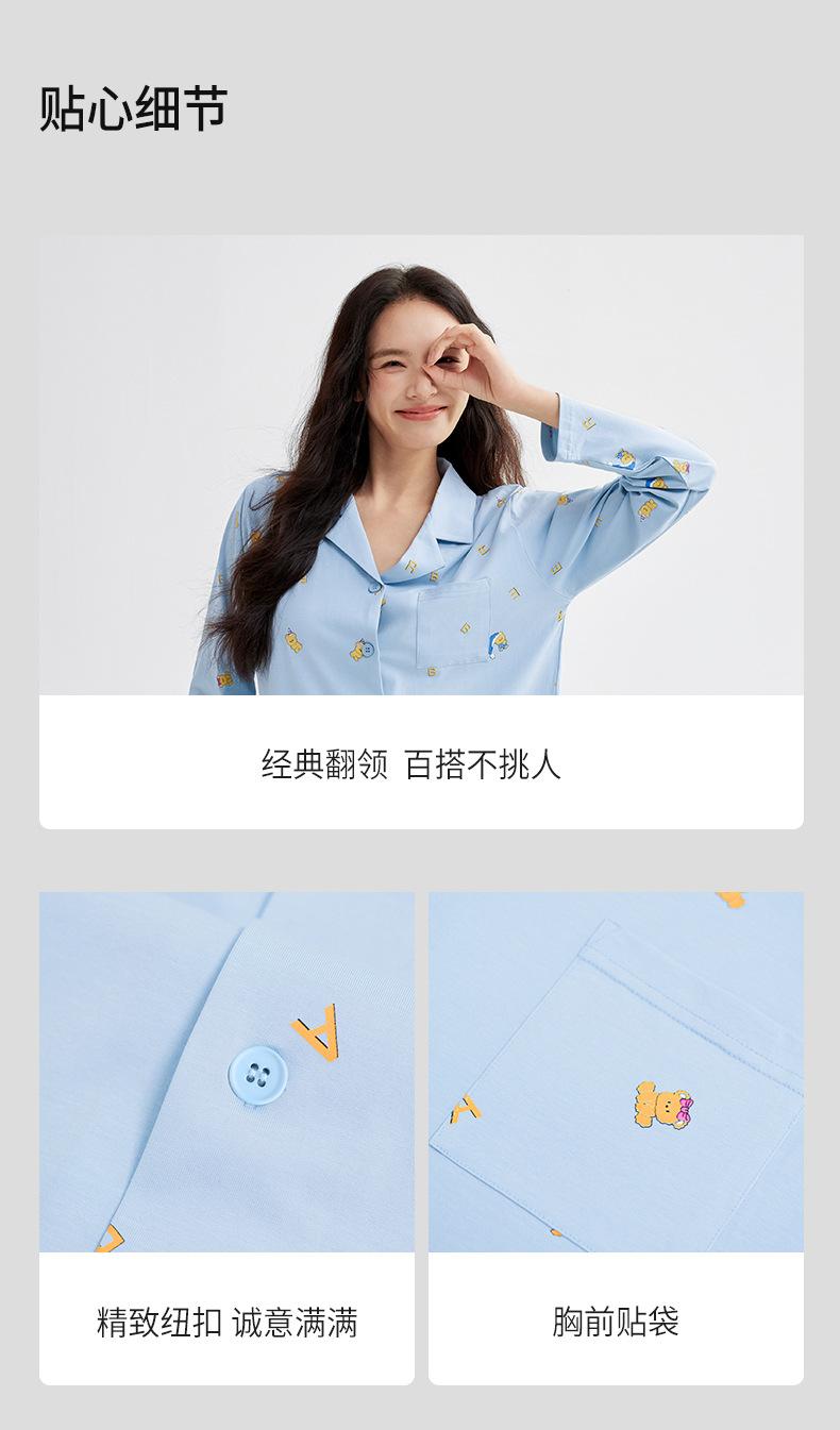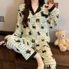 Pijama de Algodón Modal con Estampado de Osito de Peluche para Mujer Conjunto de Manga Larga para Otoño Pijama para Pareja Estilo Primavera y Otoño Se Puede Usar Fuera Ropa de Casa