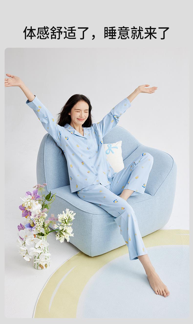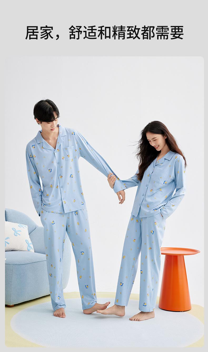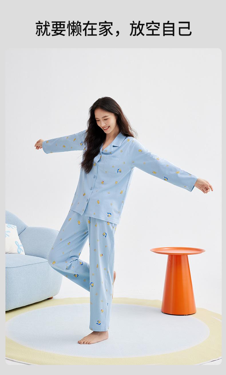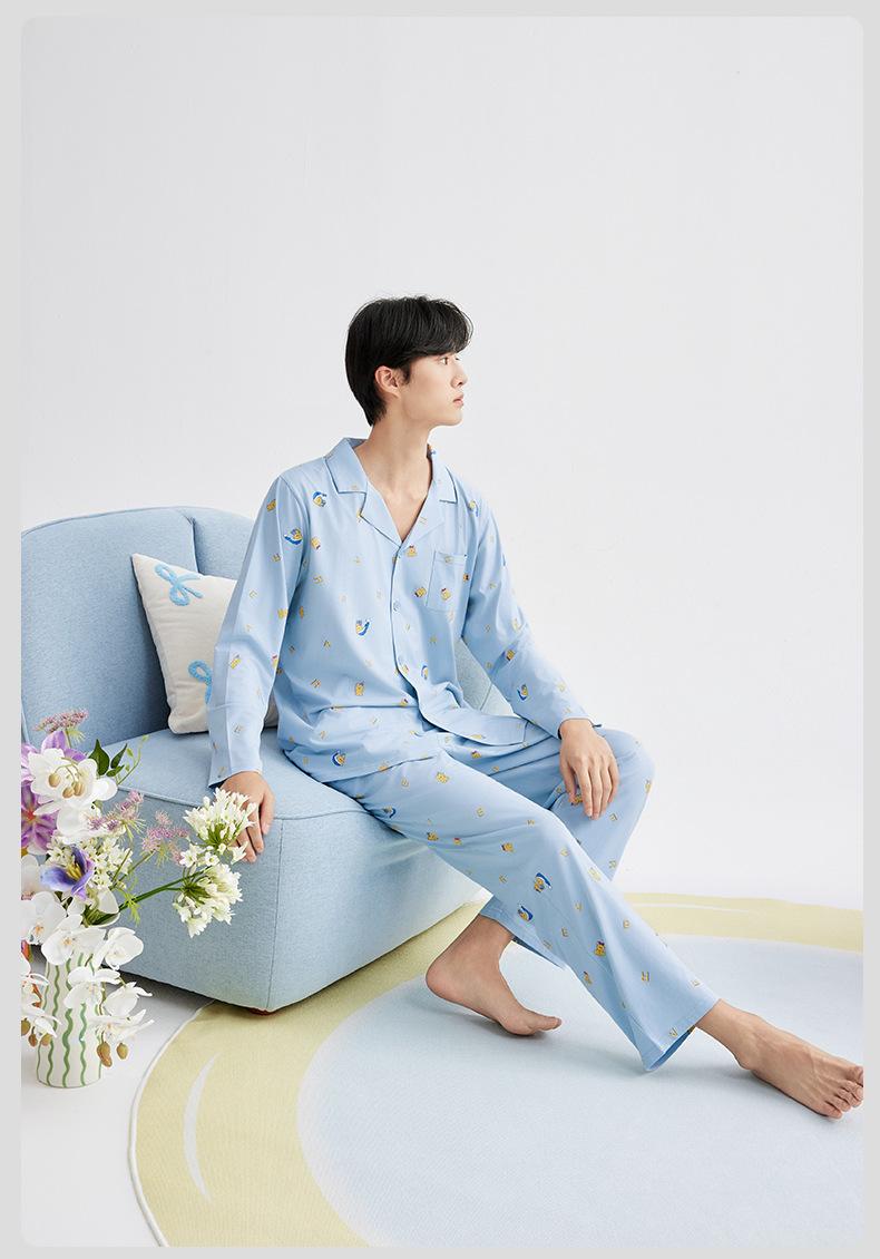 Pijama de Algodón Modal con Estampado de Osito de Peluche para Mujer Conjunto de Manga Larga para Otoño Pijama para Pareja Estilo Primavera y Otoño Se Puede Usar Fuera Ropa de Casa