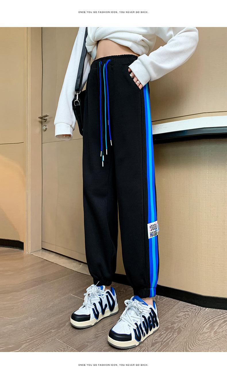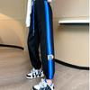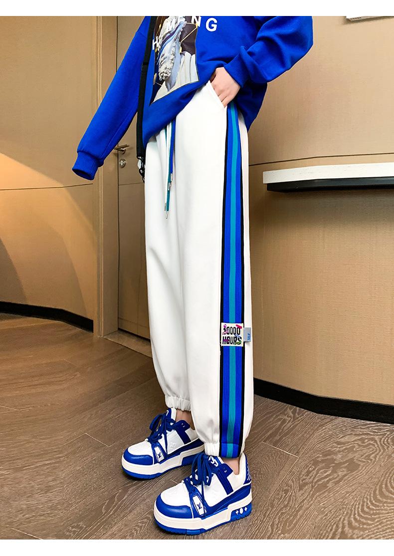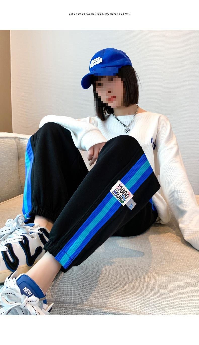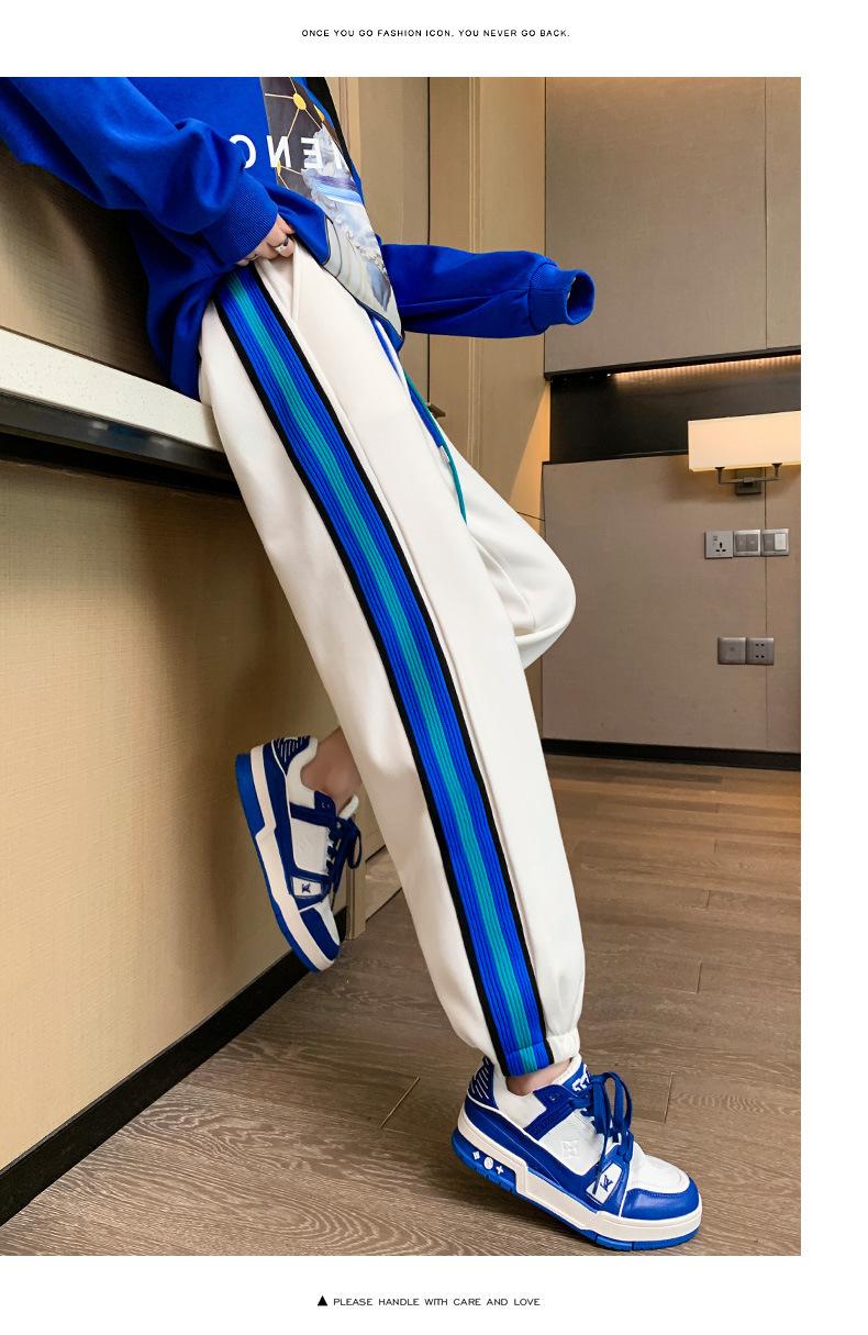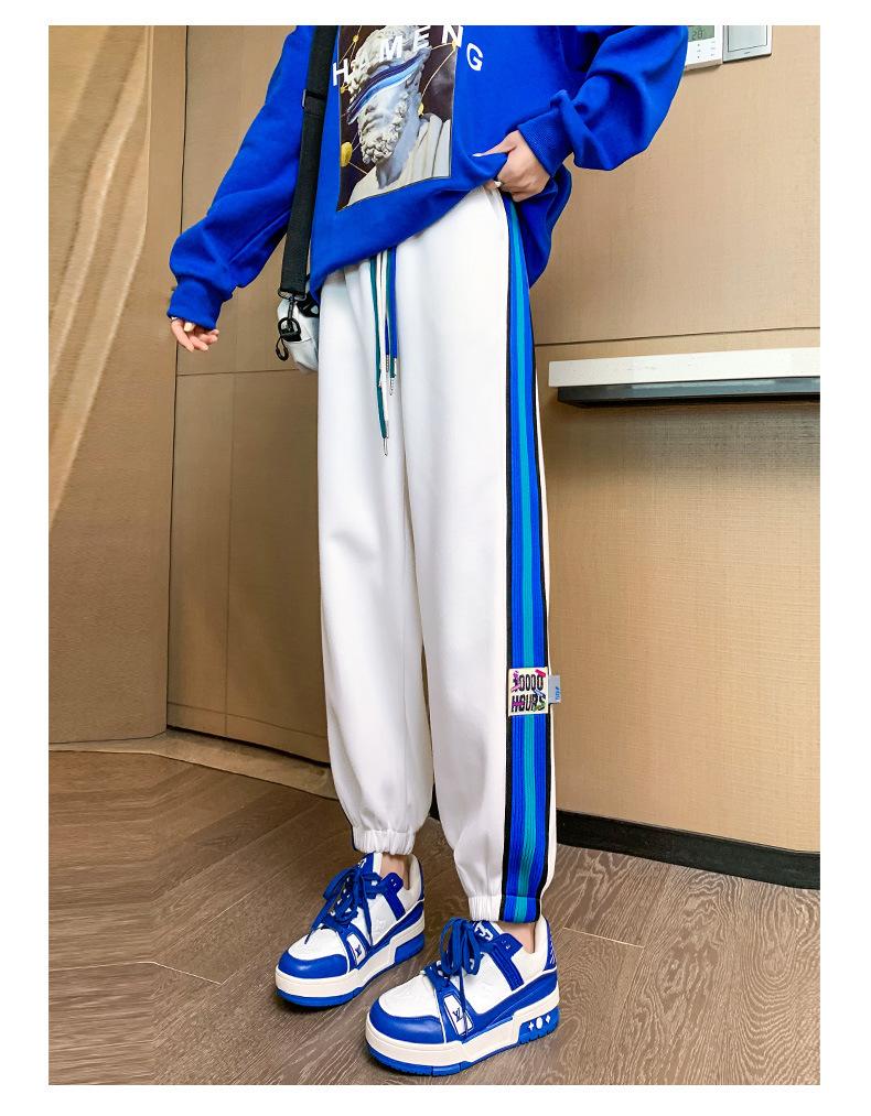 Pantalones Nuevos de Primavera y Verano Moda Pantalones Deportivos Casuales Azul Patchwork Pantalones Harlan Edición Moderna Pantalones de Pie Atado para Mujer