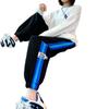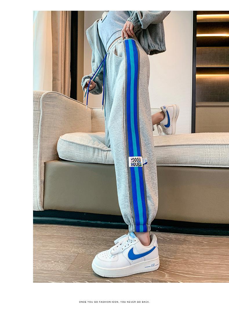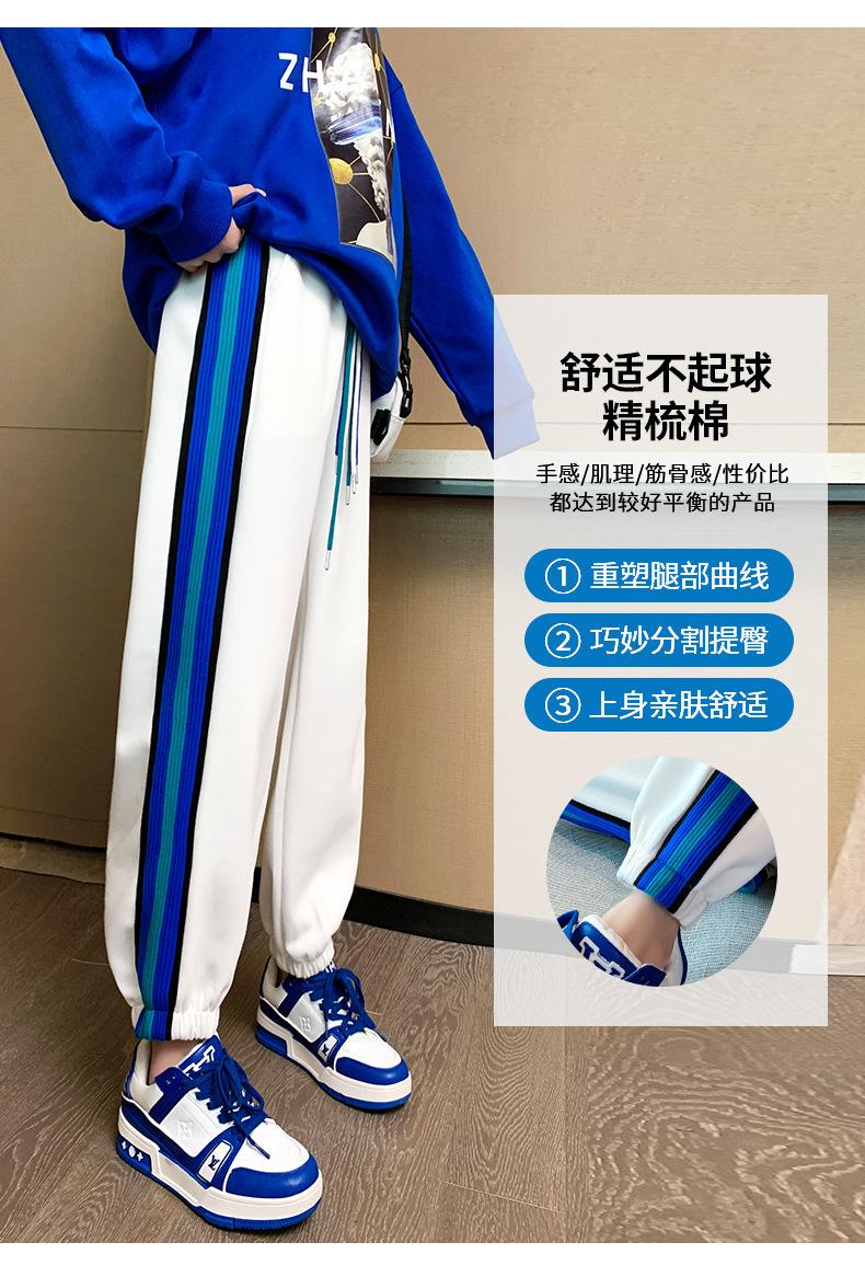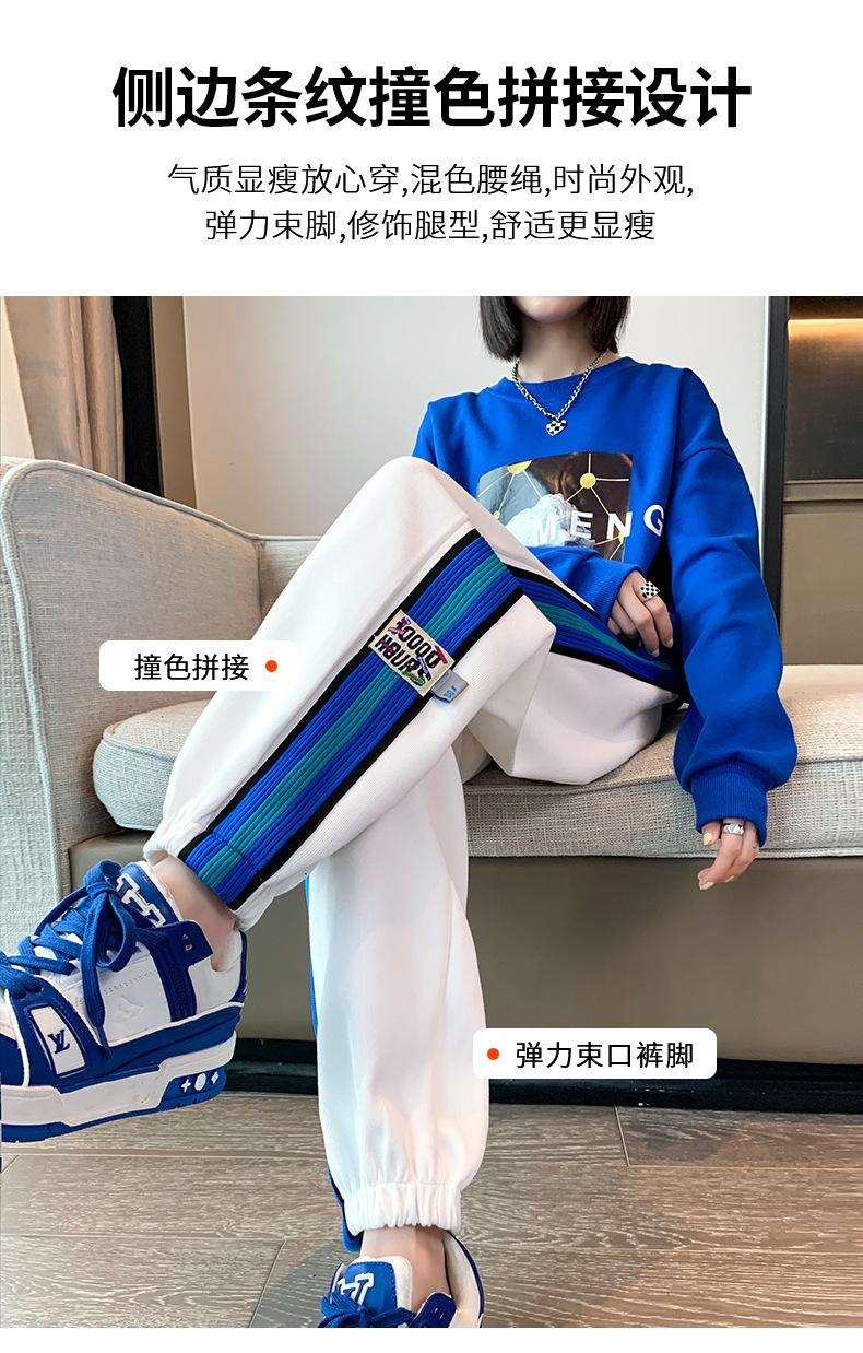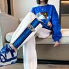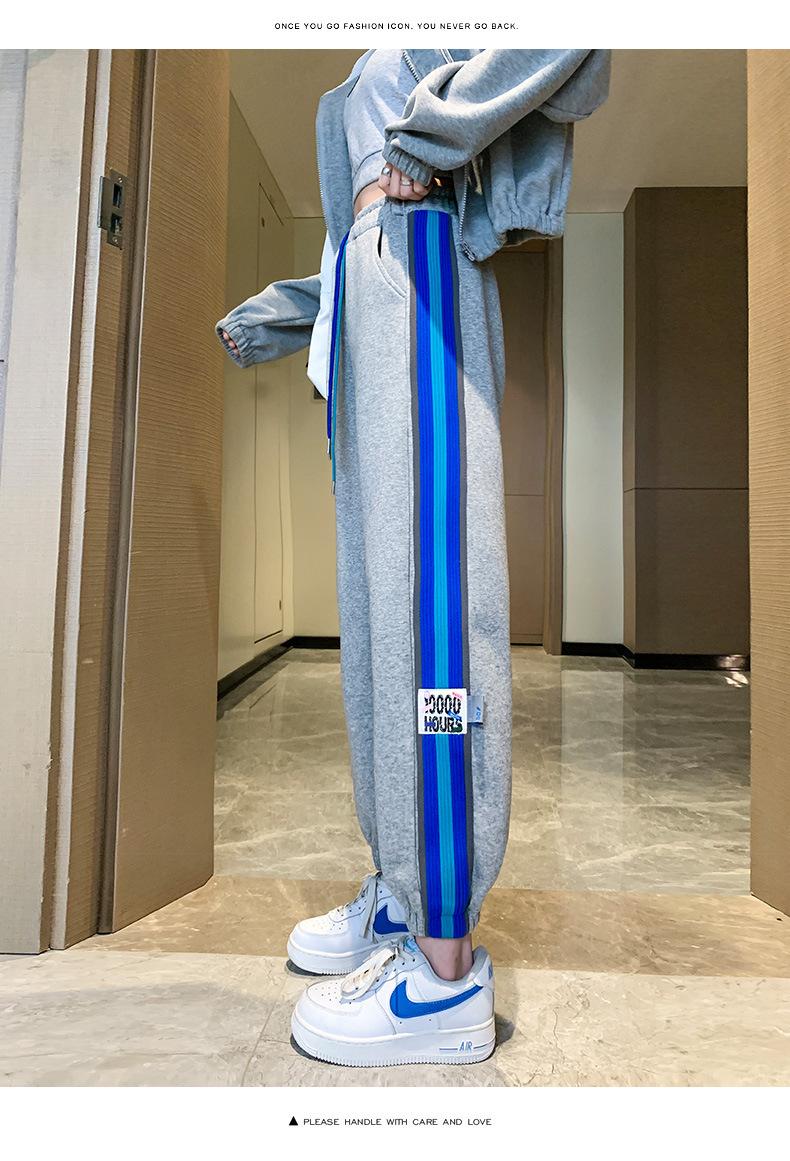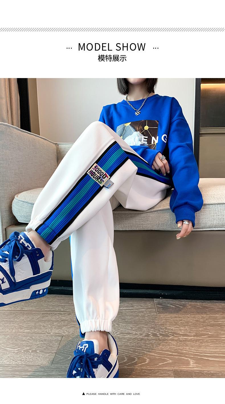 Pantalones Nuevos de Primavera y Verano Moda Pantalones Deportivos Casuales Azul Patchwork Pantalones Harlan Edición Moderna Pantalones de Pie Atado para Mujer
