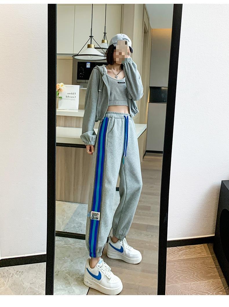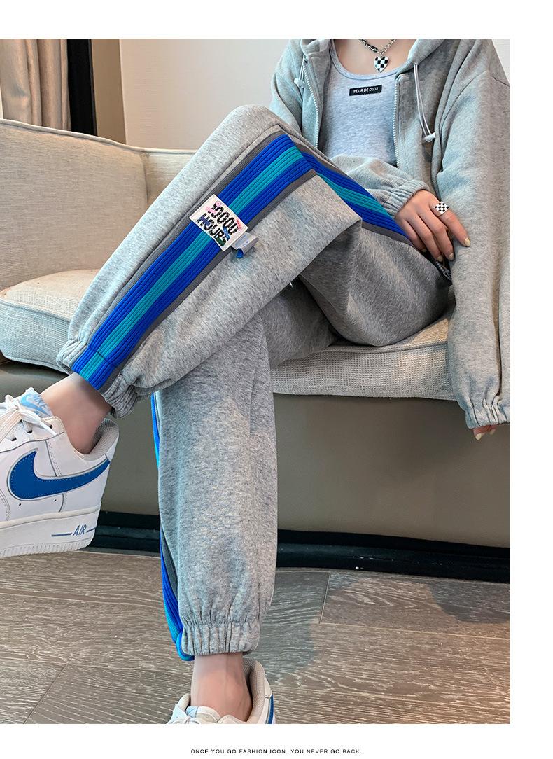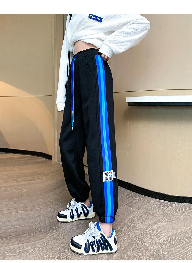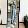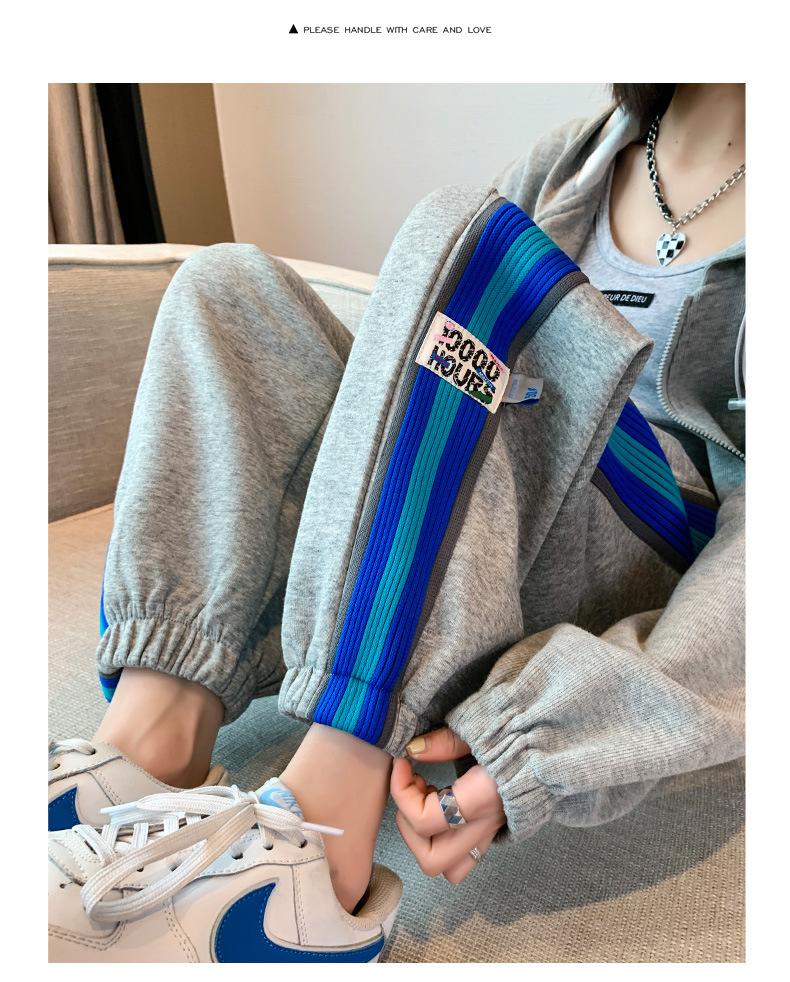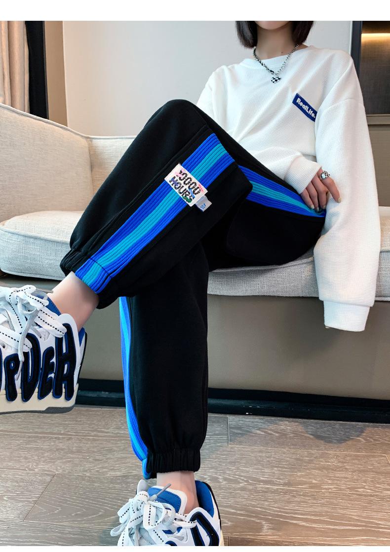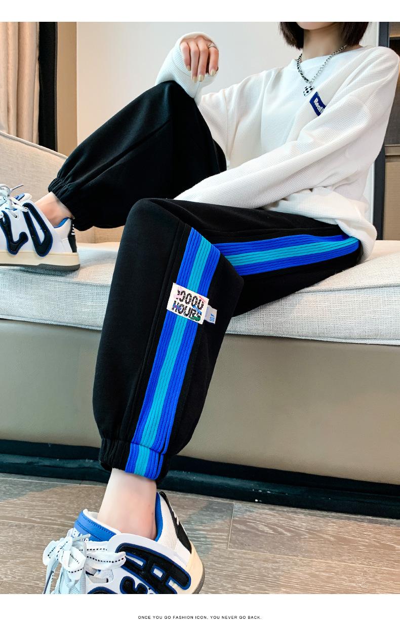Pantalones Nuevos de Primavera y Verano Moda Pantalones Deportivos Casuales Azul Patchwork Pantalones Harlan Edición Moderna Pantalones de Pie Atado para Mujer