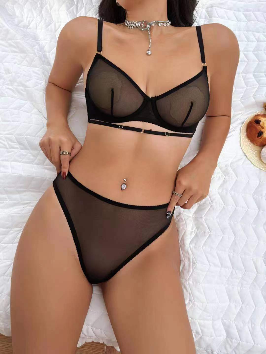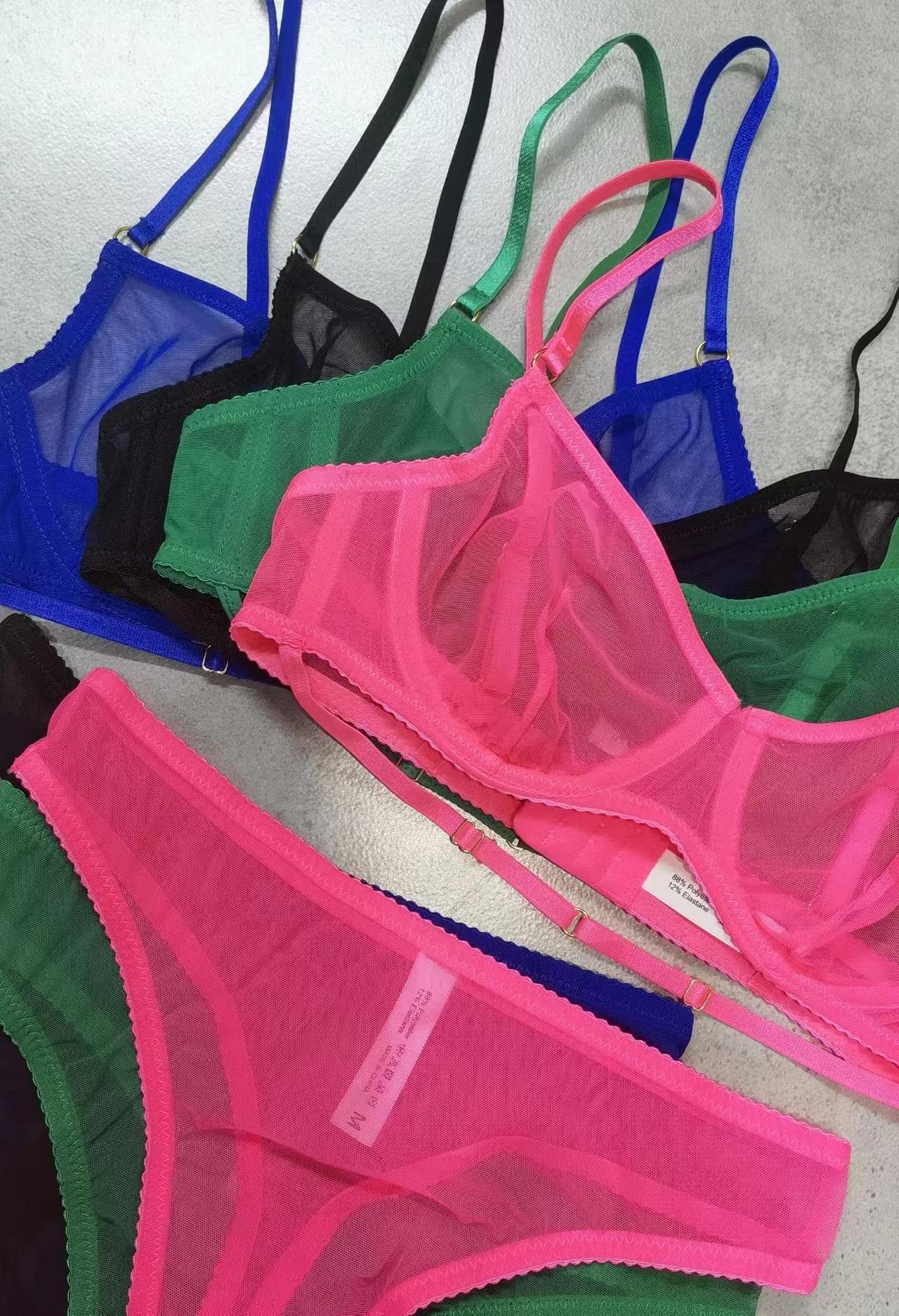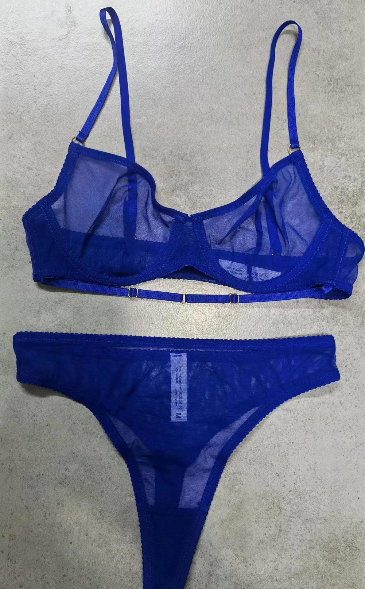 Ropa Interior Sexy de Encaje Europeo y Americano para Mujer Ultradelgada Perspectiva Tentación Soporte de Acero Anticaída Pecho Grande Set de Brasier Pequeño
