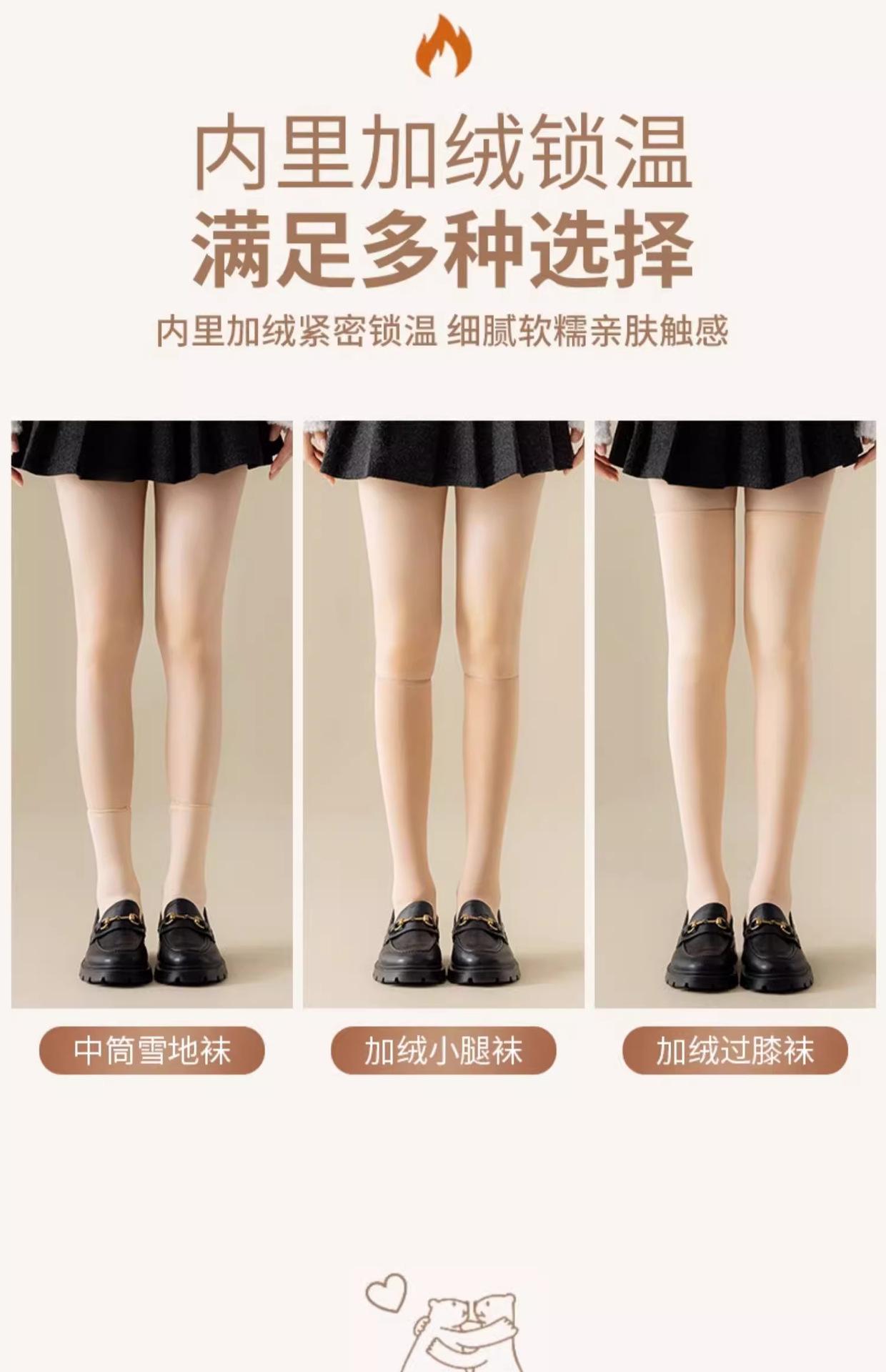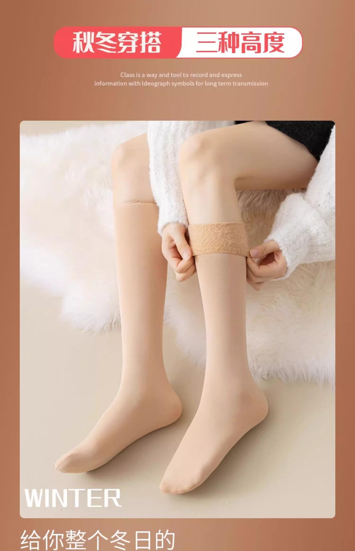 Calcetines largos hasta la rodilla para mujer otoño e invierno más terciopelo más gruesos cálidos calcetines de nieve calcetines altos hasta el muslo color negro color carne calcetines de pantorrilla