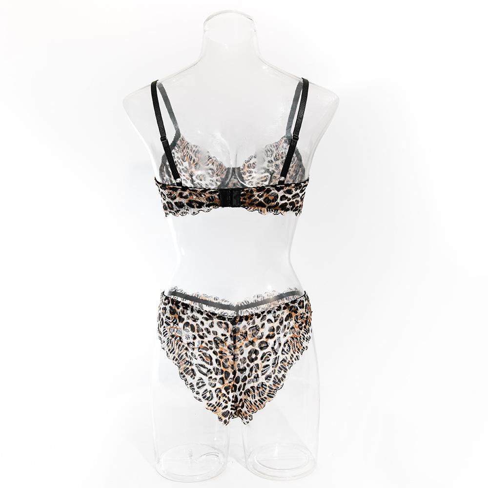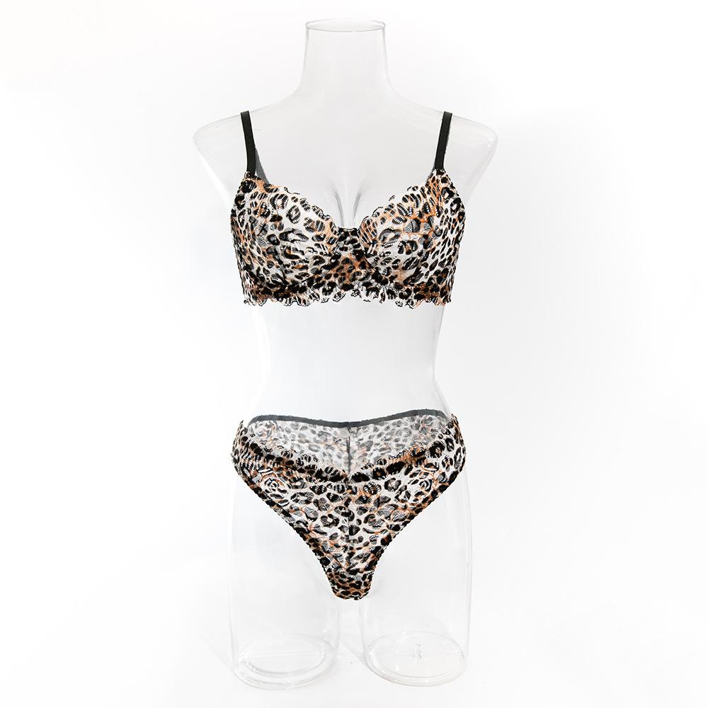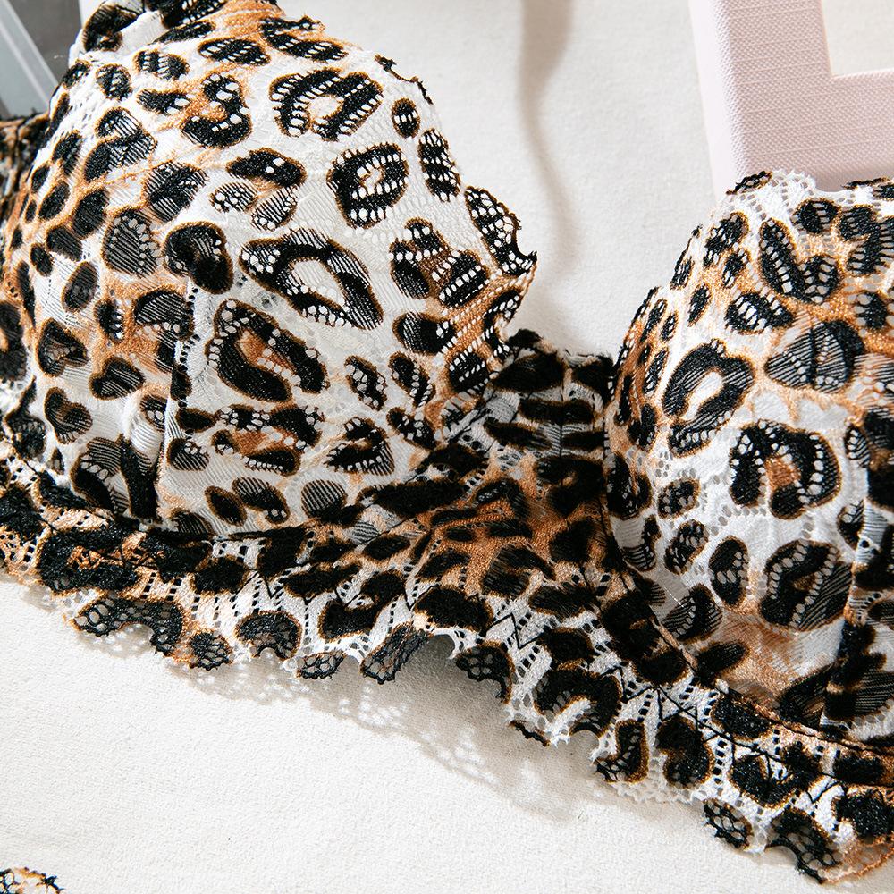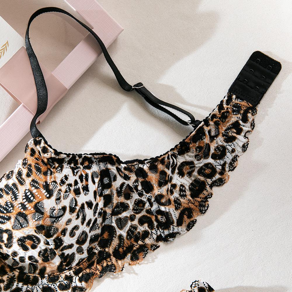 Nuevo Sujetador Transfronterizo Europeo y Americano Francés Delgado Sexy Estampado de Leopardo Pecho Grande Luce Pequeño Cómodo Transpirable Levanta Cadera Conjunto Caliente