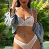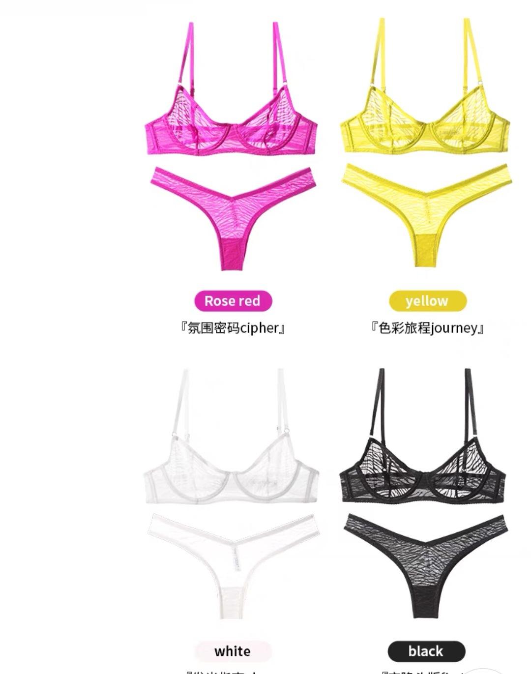 Dopamina Ropa Interior Francesa para Mujer Encaje Ultrafino Perspectiva Sexy Pecho Grande Aro de Acero Pequeño Sujetador Superior Traje Verano