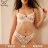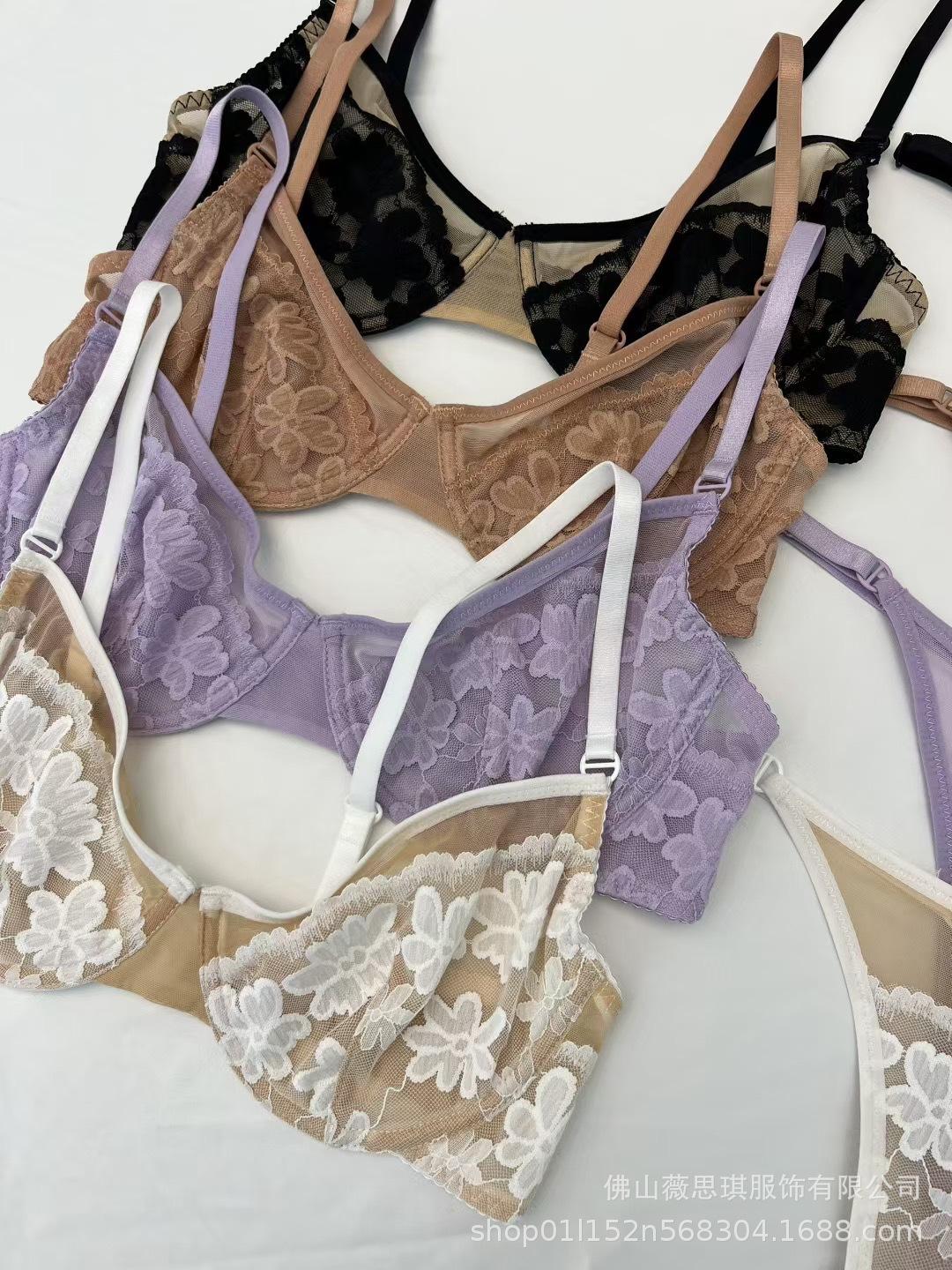 Lencería Sexy Francesa Transfronteriza para Mujer Verano Ultradelgada Encaje Bordado Brasier Pecho Grande Luce Pequeño Conjunto de Lencería Anticaída
